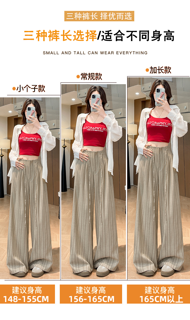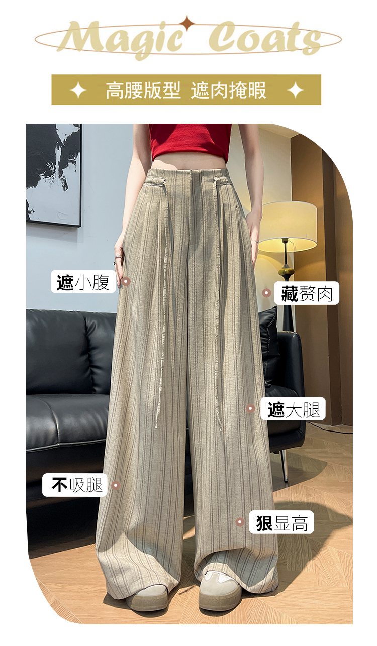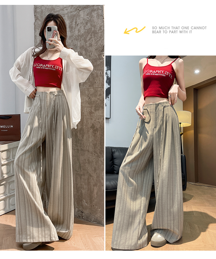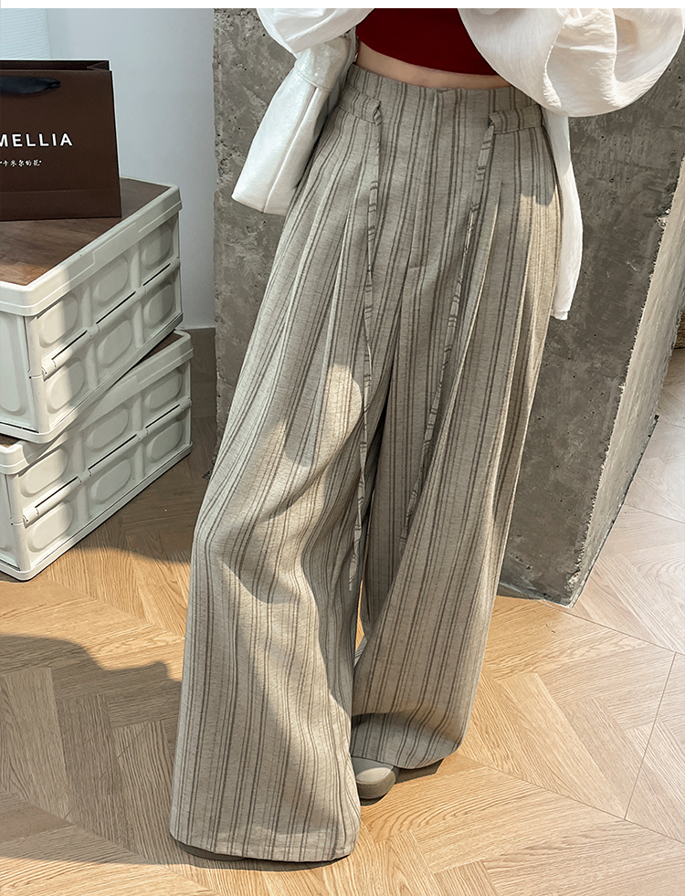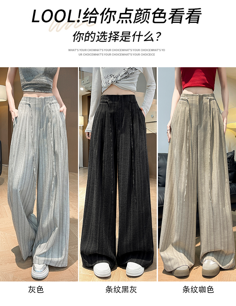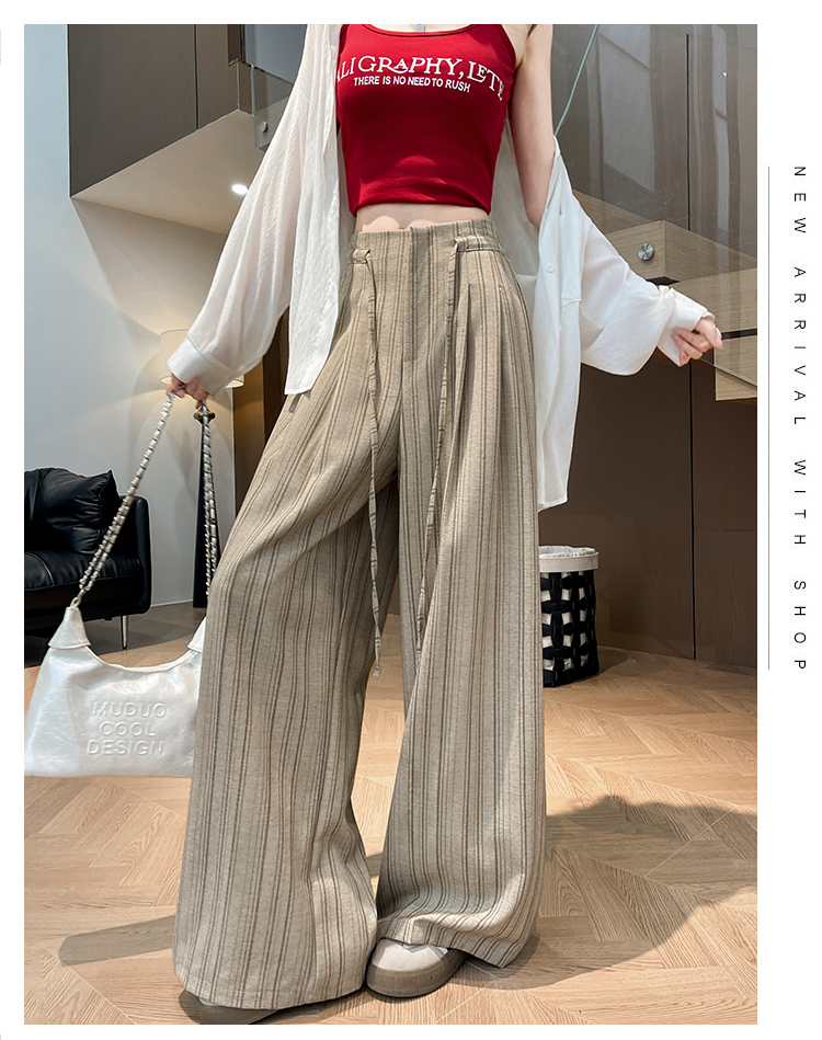 韩系复古条纹阔腿裤女2026夏季新款设计感绑带百搭老钱风西装裤子