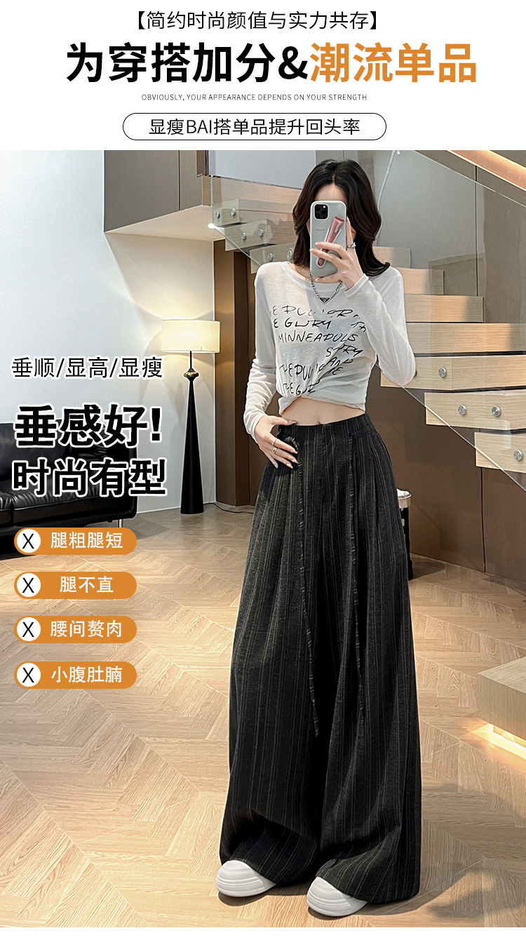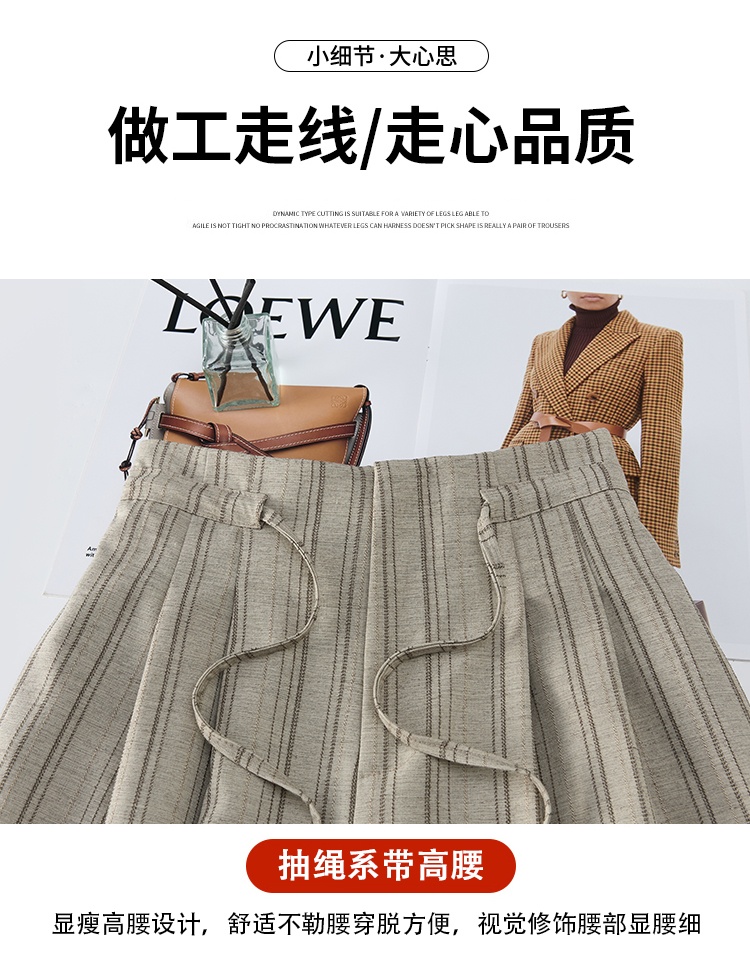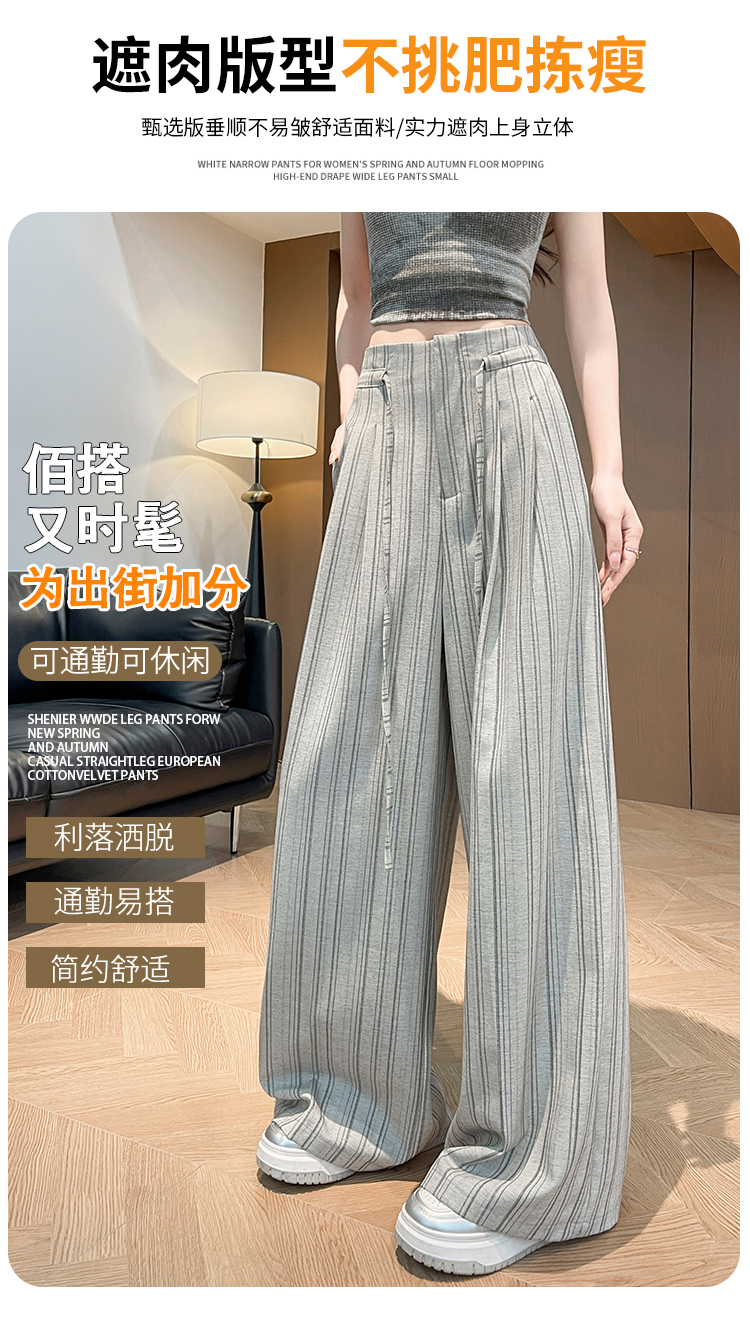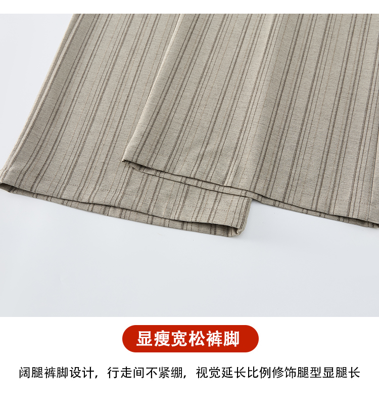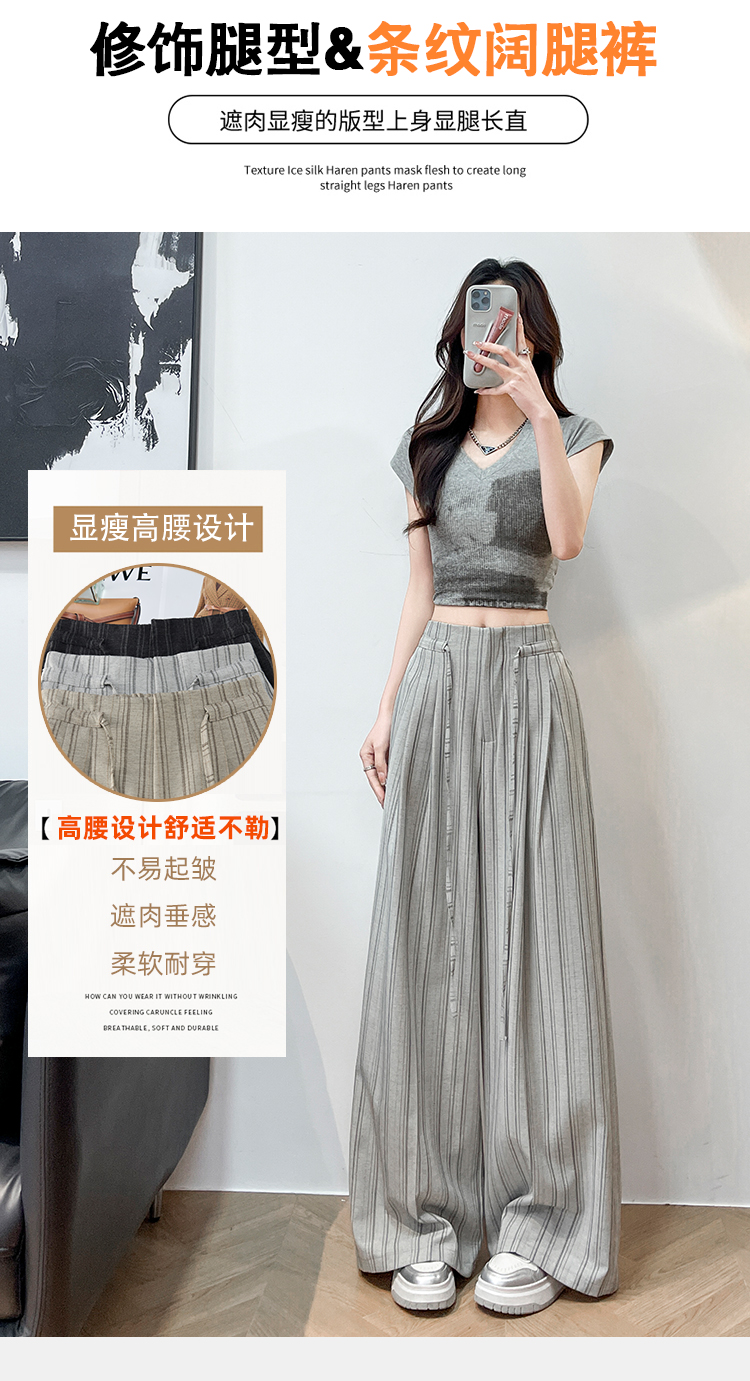 韩系复古条纹阔腿裤女2026夏季新款设计感绑带百搭老钱风西装裤子