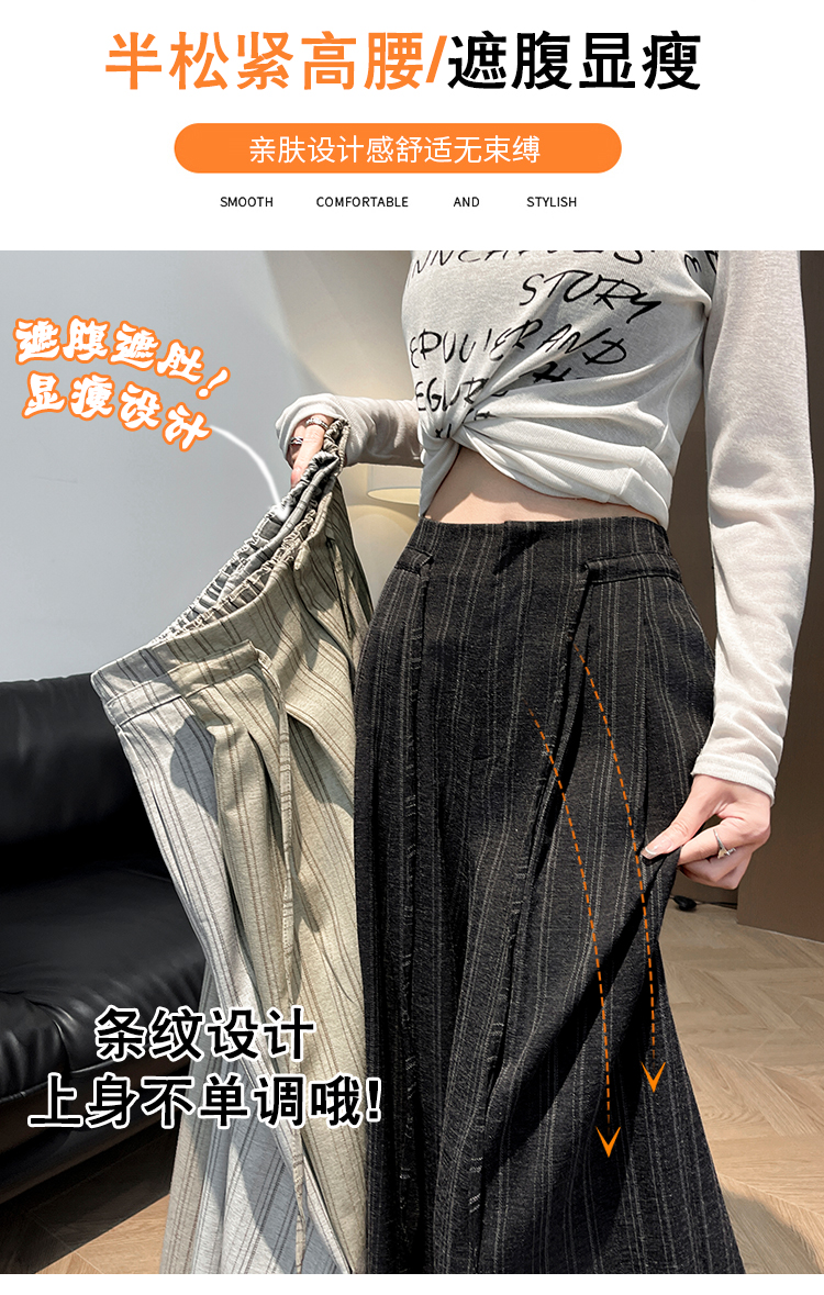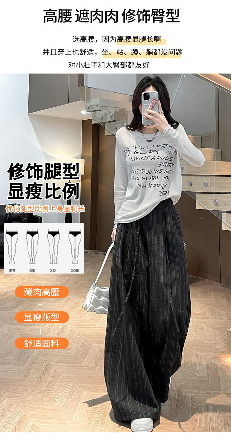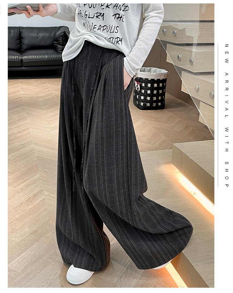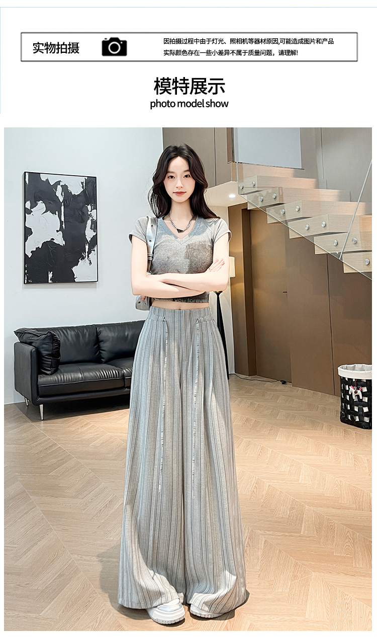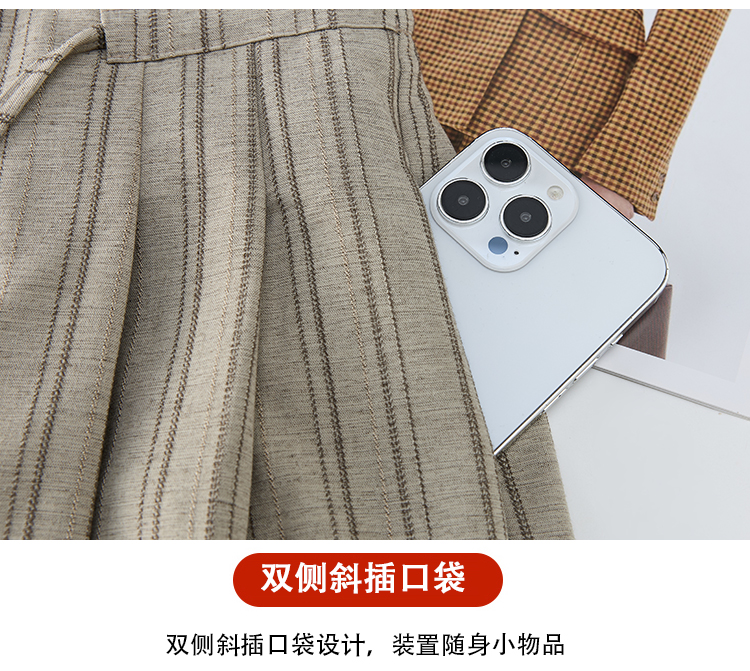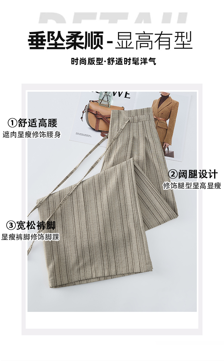 韩系复古条纹阔腿裤女2026夏季新款设计感绑带百搭老钱风西装裤子