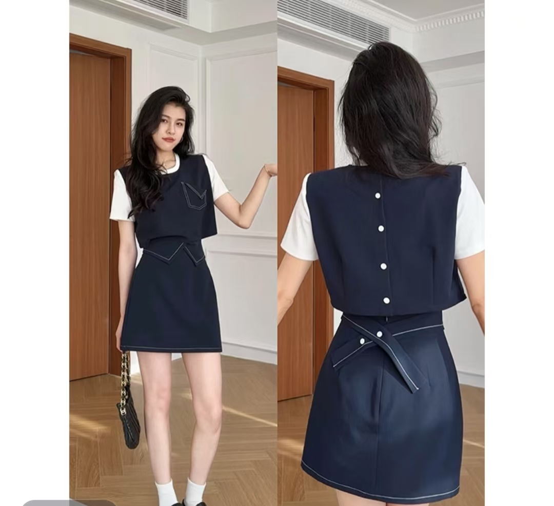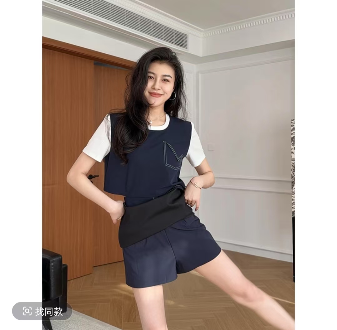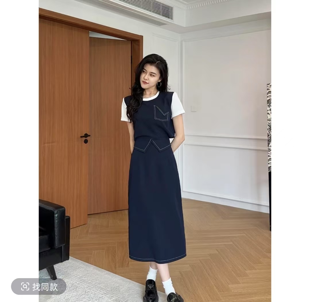 张阿星睿智老钱立体版型明线假两件T恤+显瘦裙裤