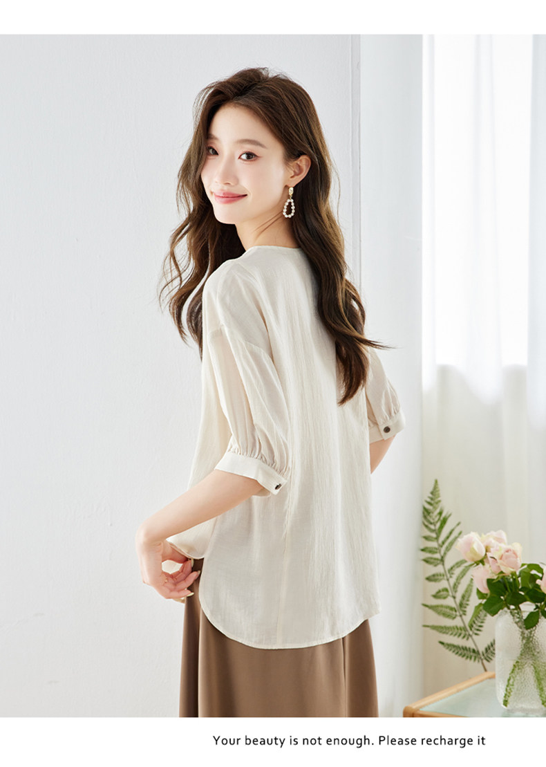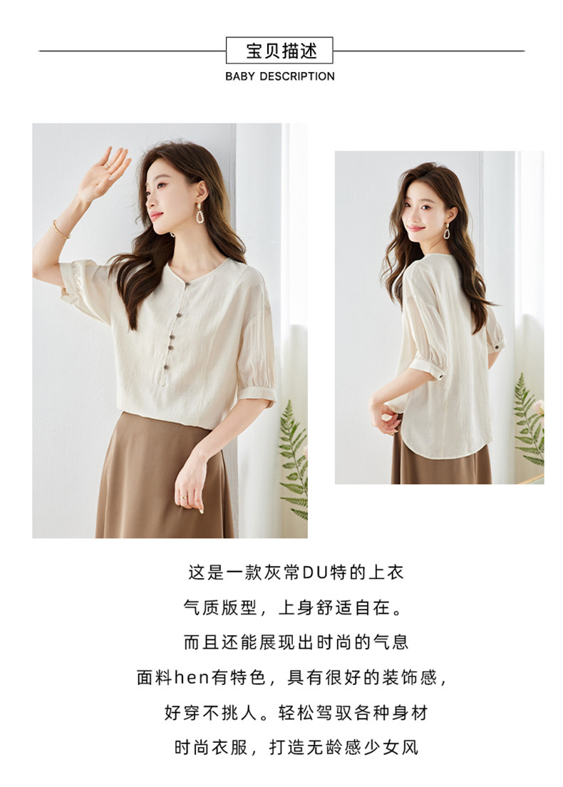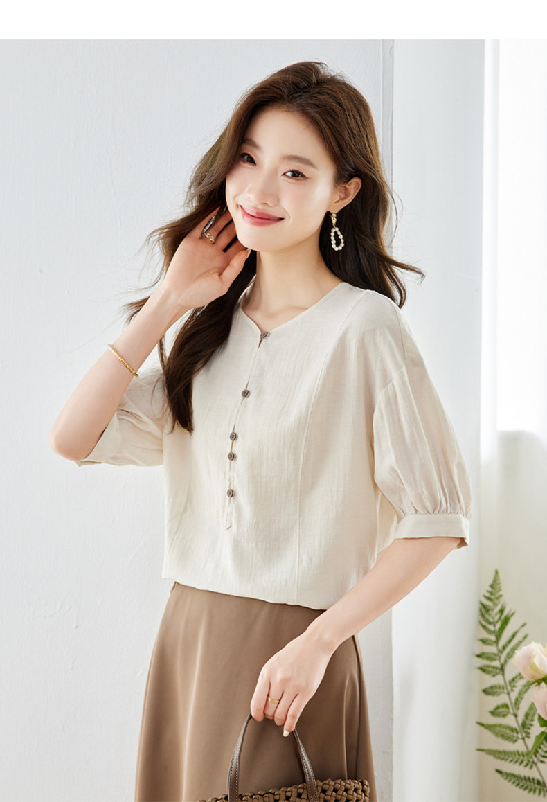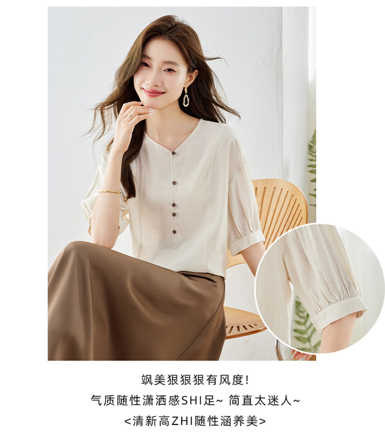 2026中式国风V领雪纺衬衫女小众气质上衣夏季新款短袖气质衬衣