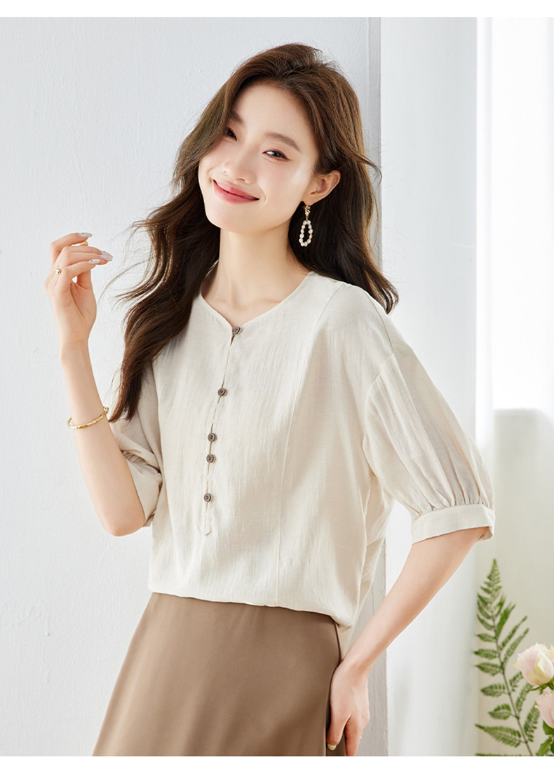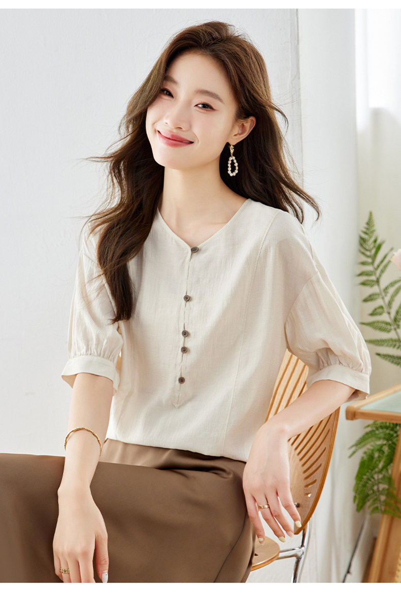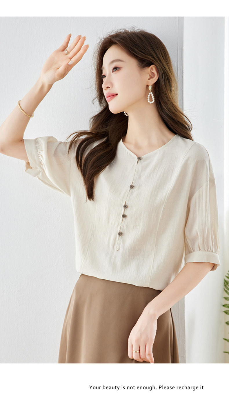 2026中式国风V领雪纺衬衫女小众气质上衣夏季新款短袖气质衬衣
