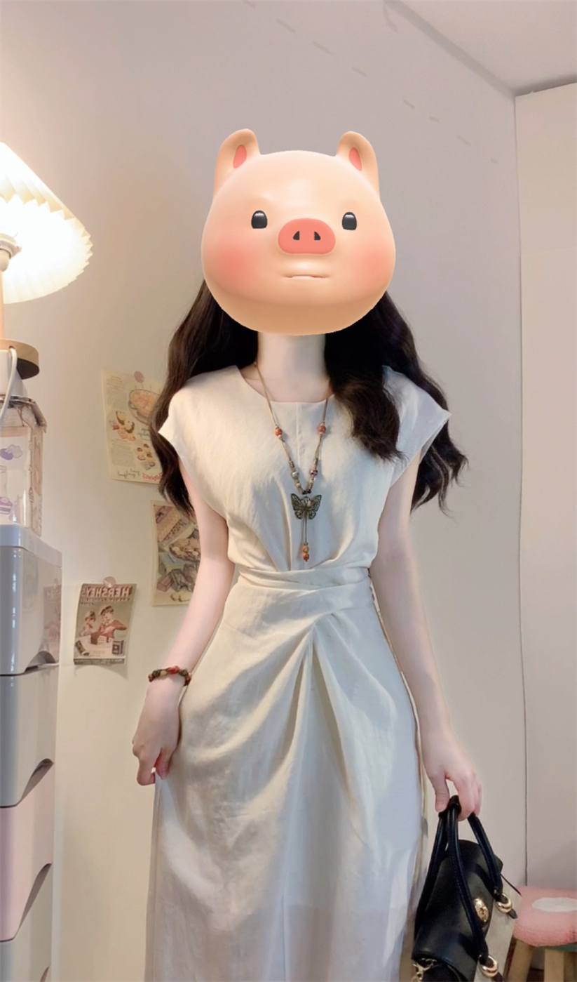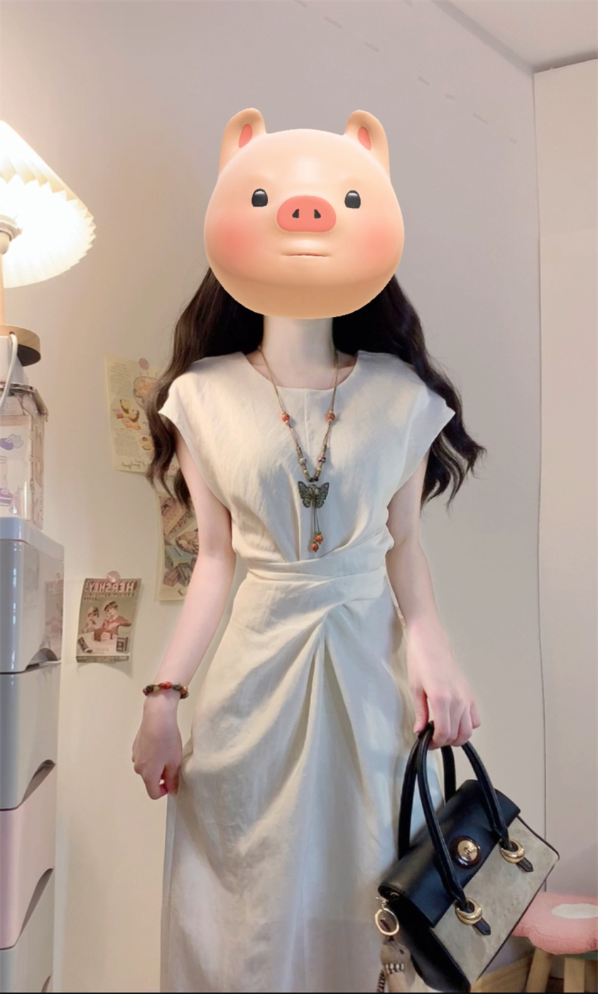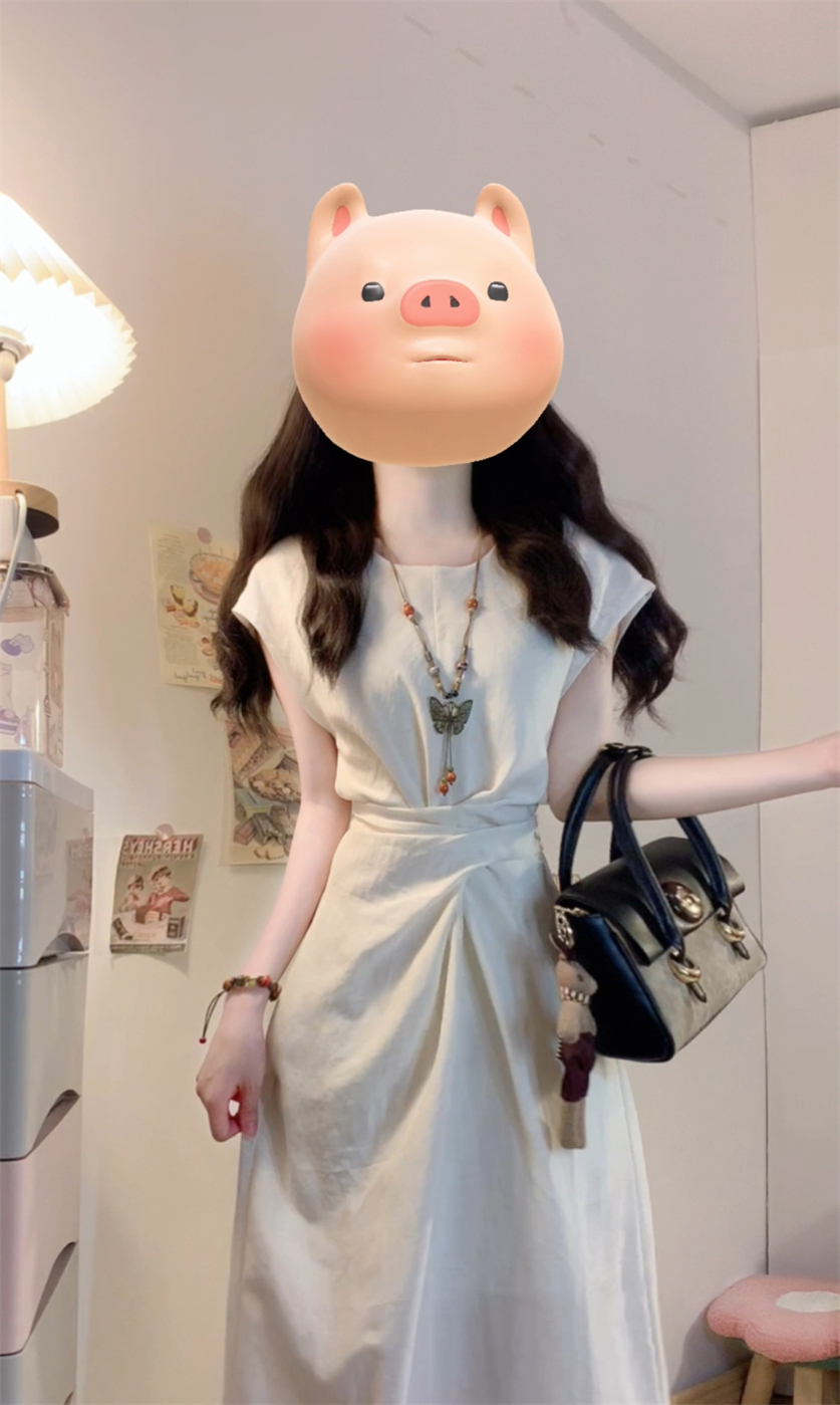 实拍~浅夏栀子极简风法式气质连衣裙夏季新款设计感独特收腰裙子