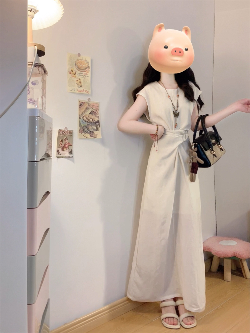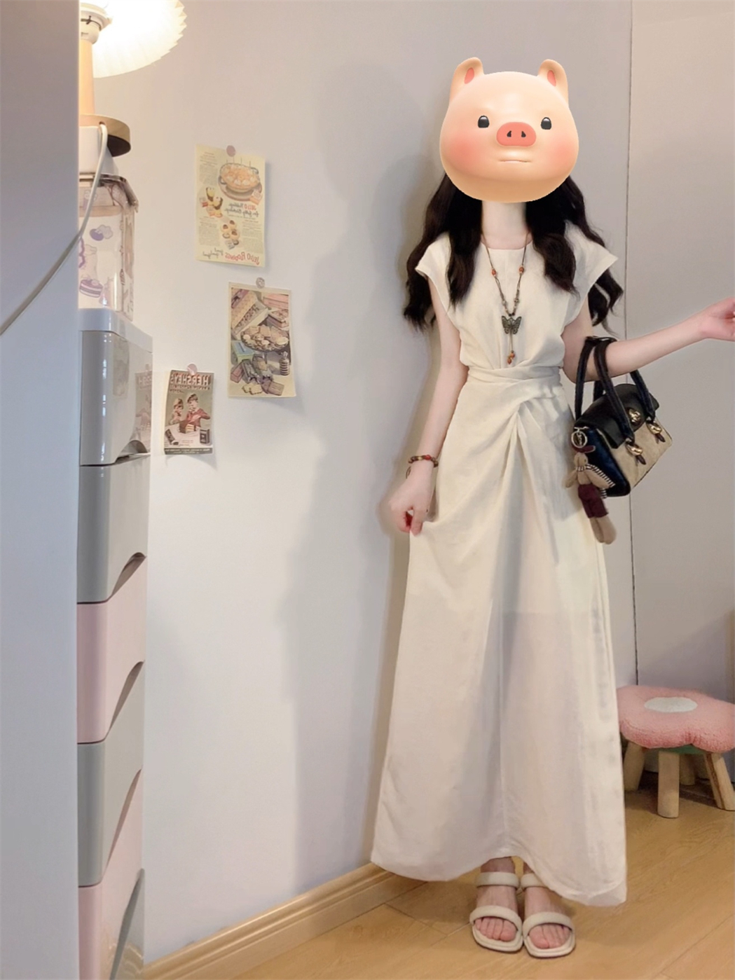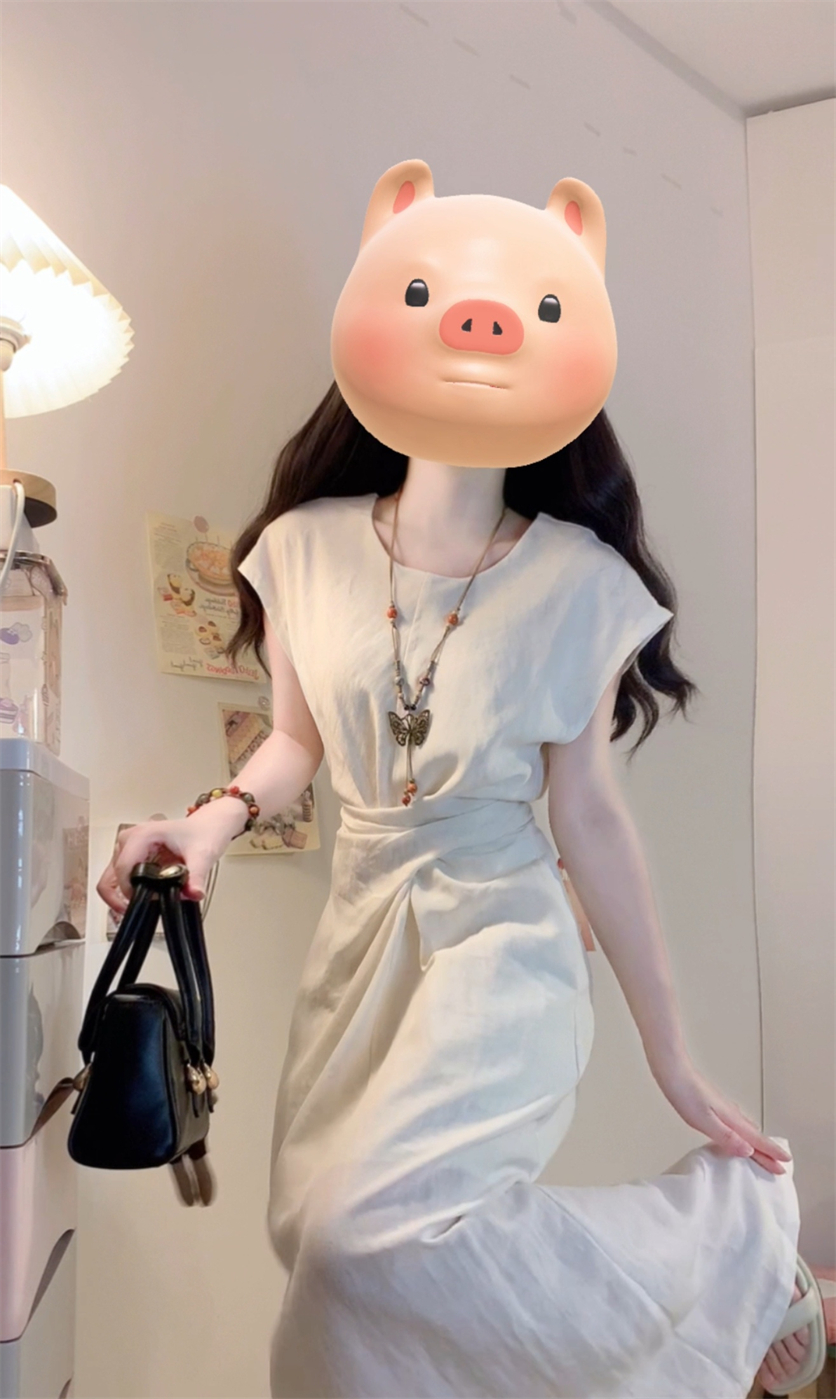 实拍~浅夏栀子极简风法式气质连衣裙夏季新款设计感独特收腰裙子