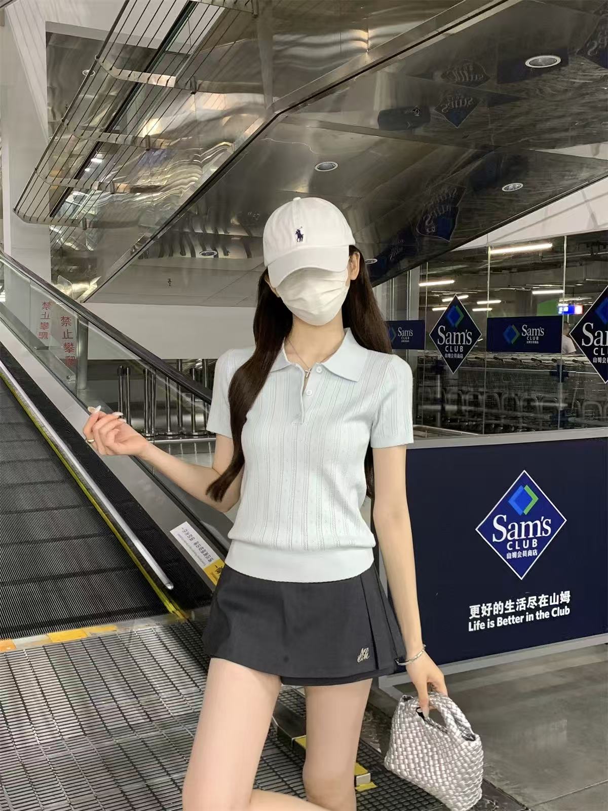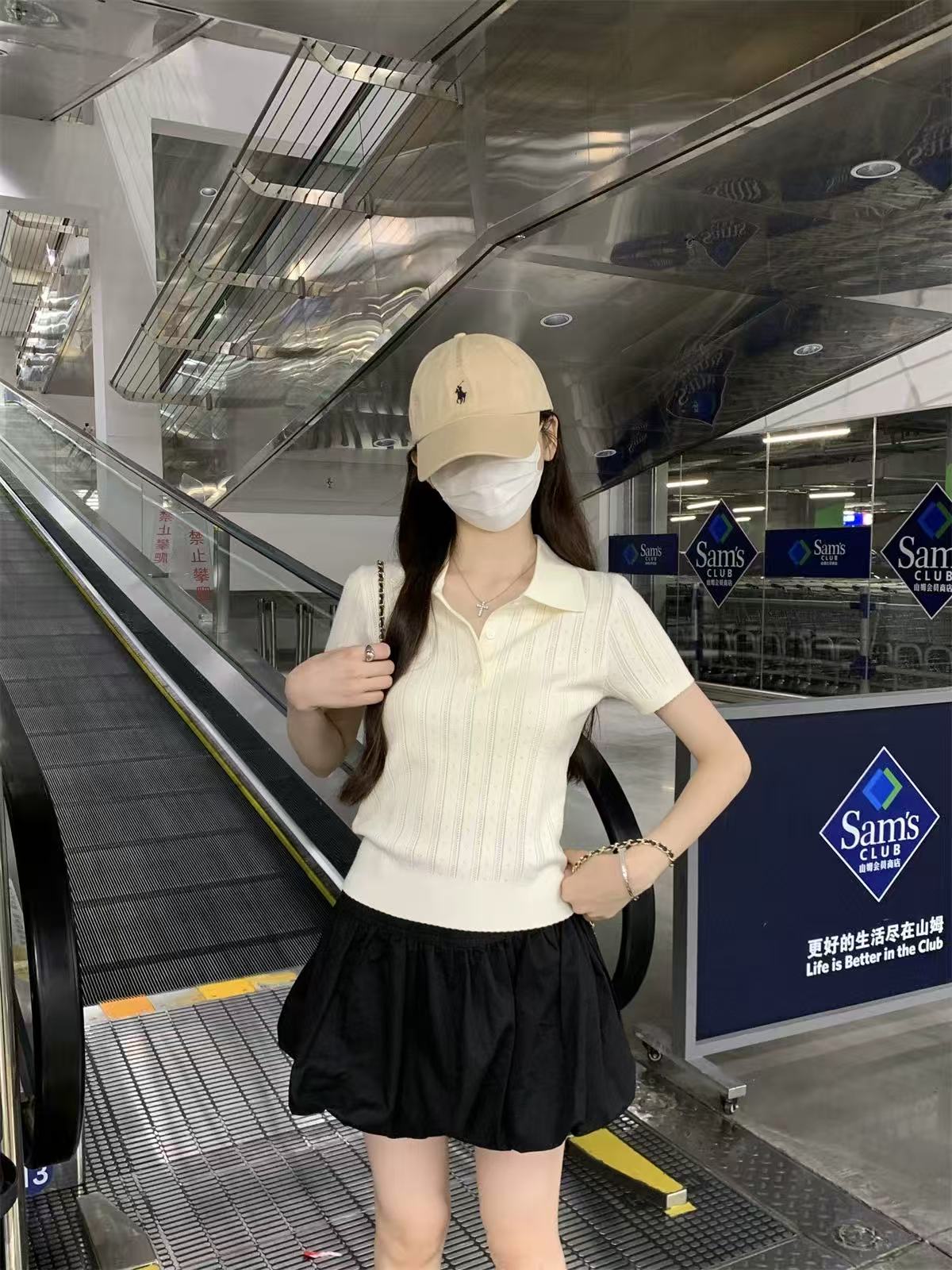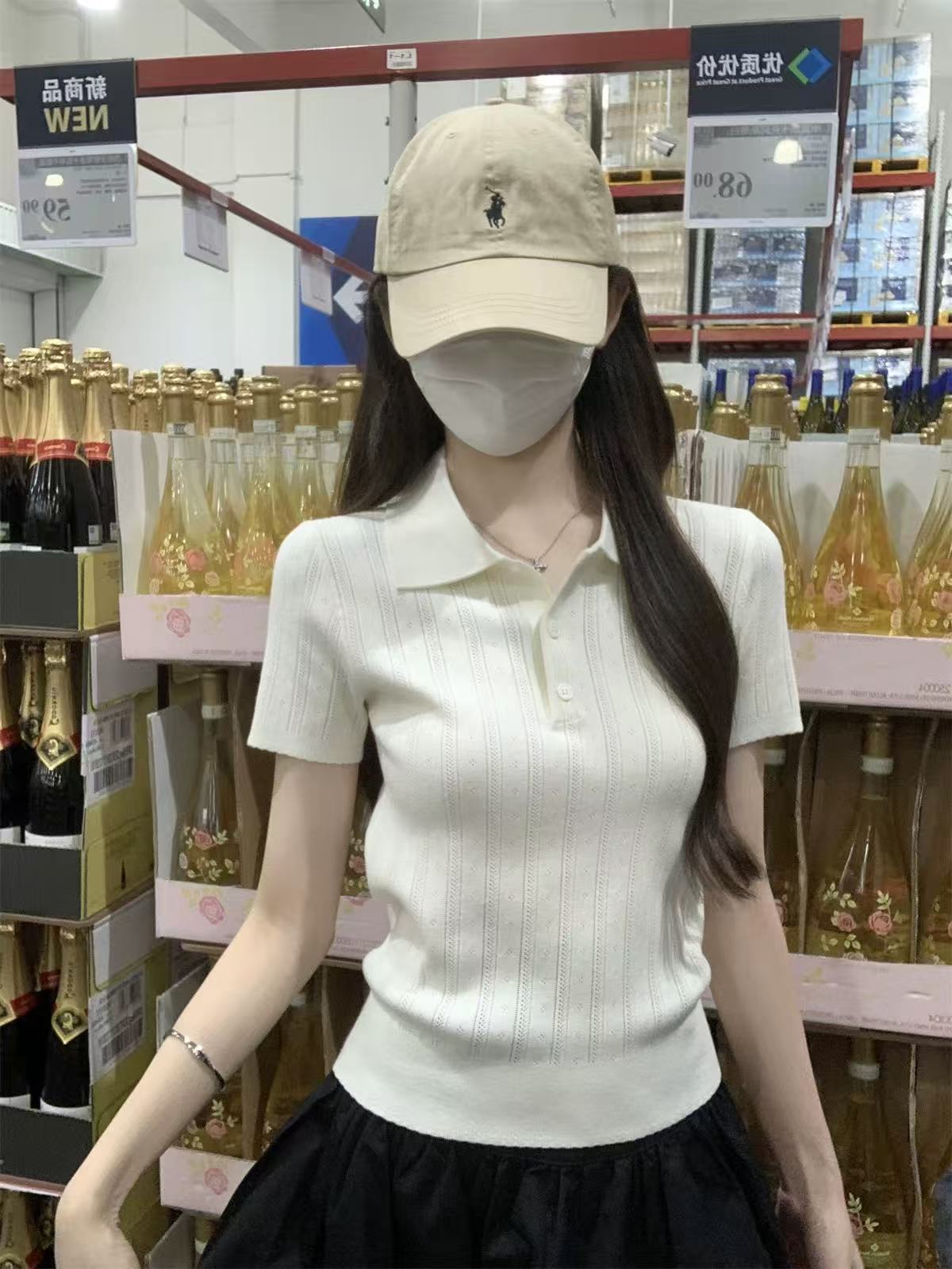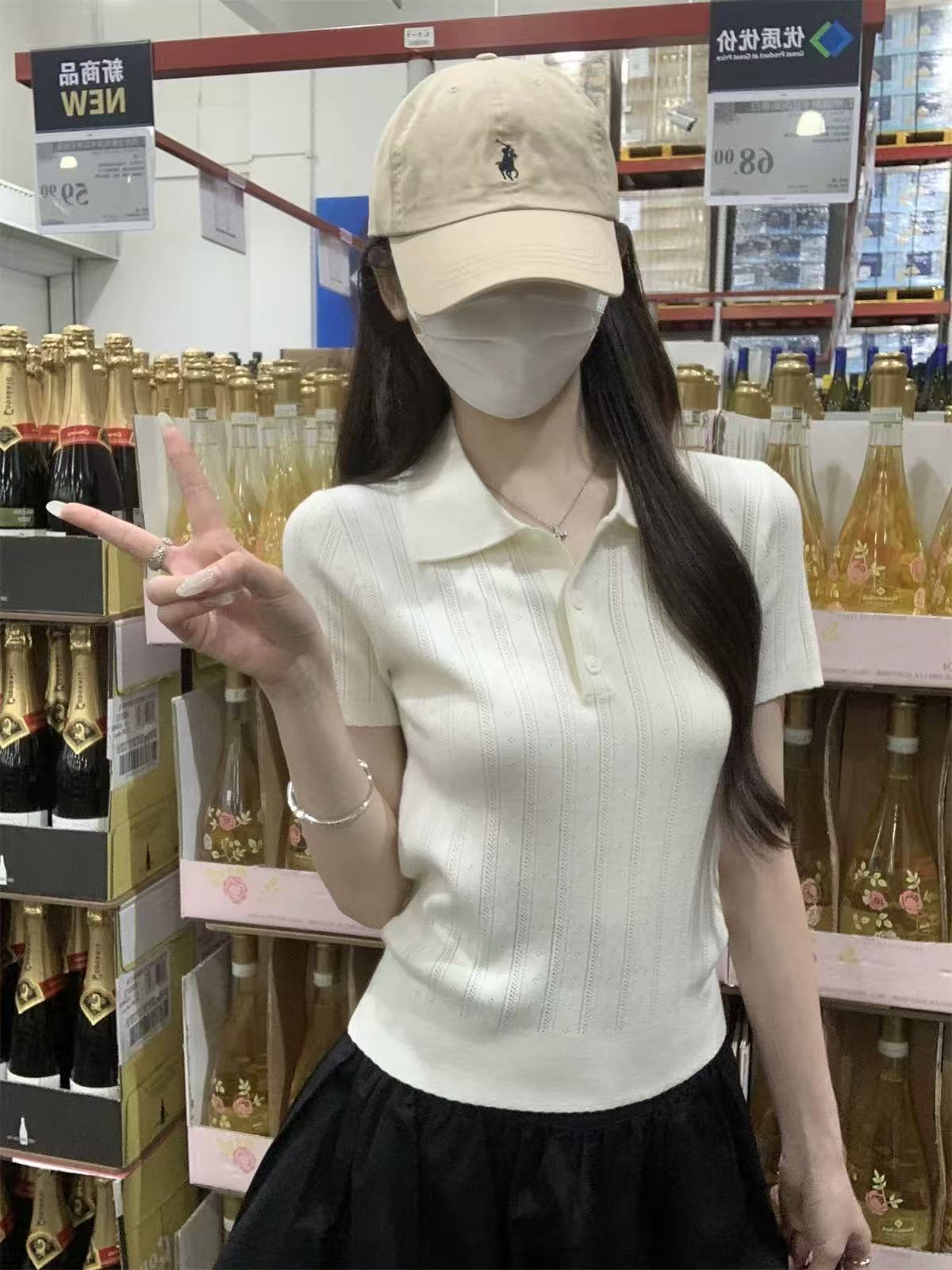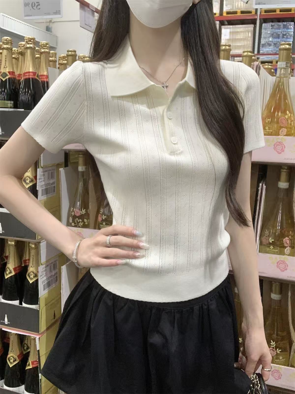 夏天巨好看的凉感polo领冰丝针织短袖t恤女韩系chic别致小衫上衣
