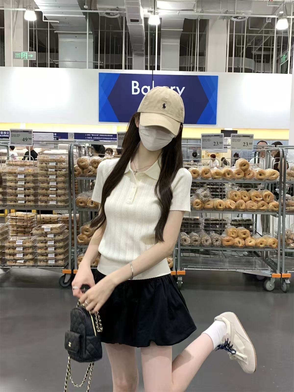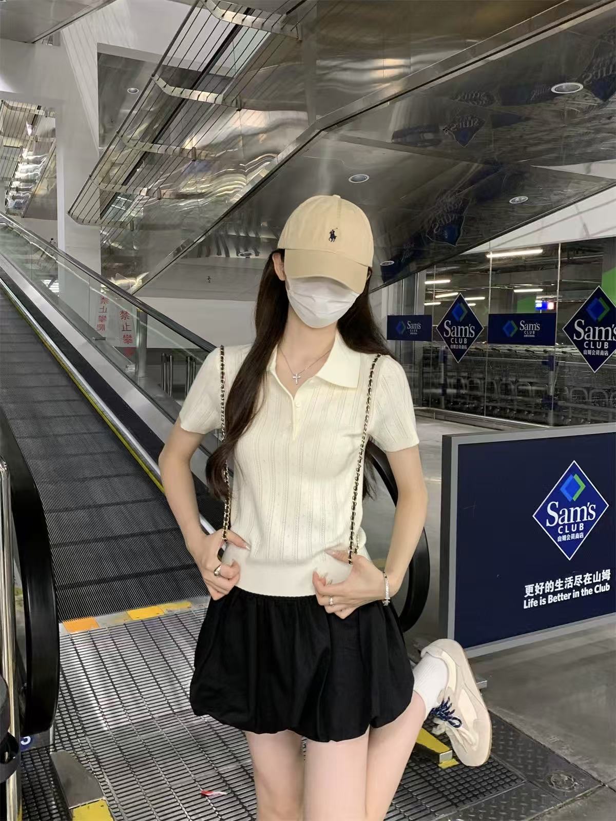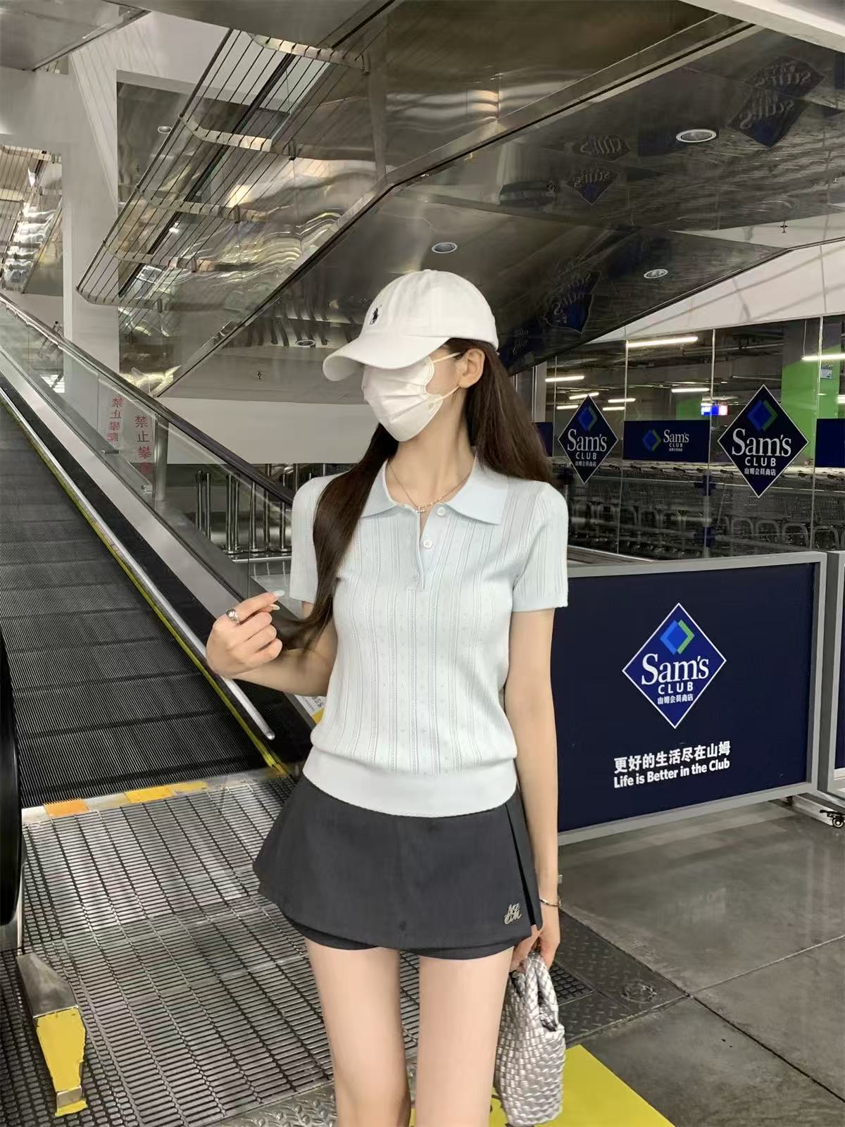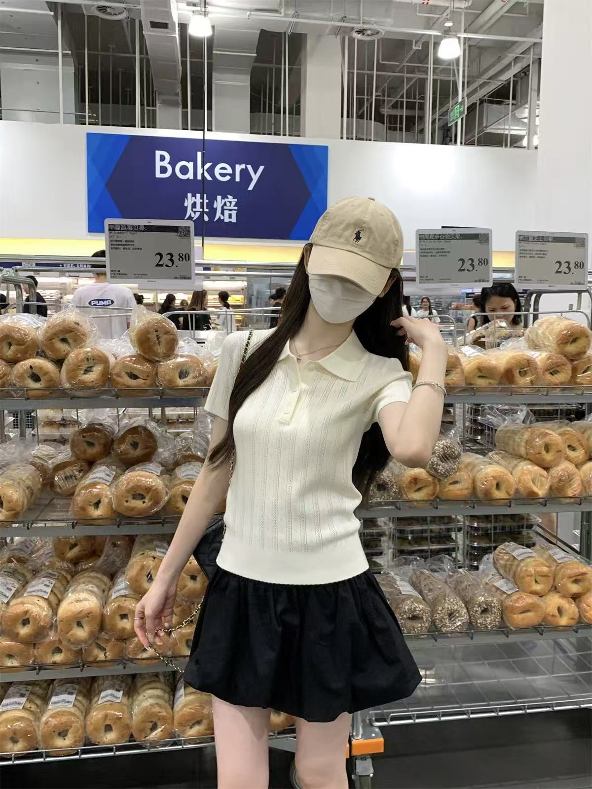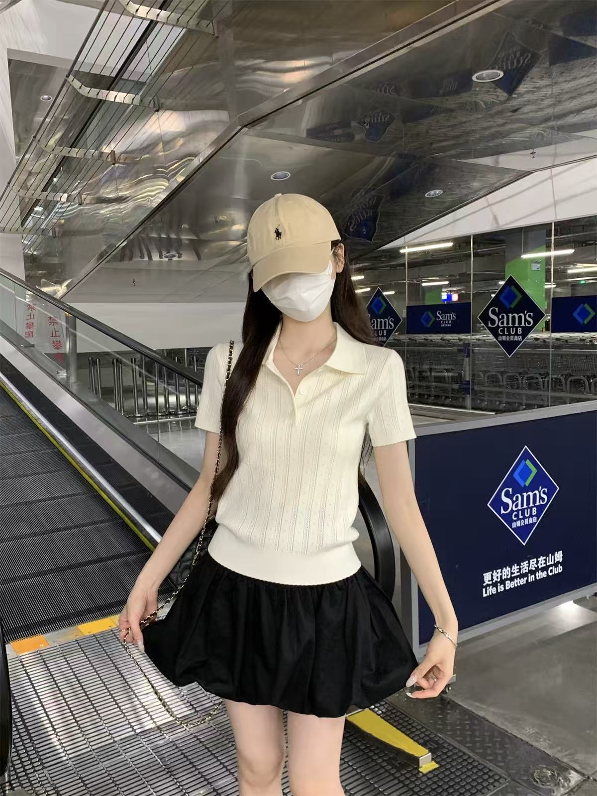 夏天巨好看的凉感polo领冰丝针织短袖t恤女韩系chic别致小衫上衣
