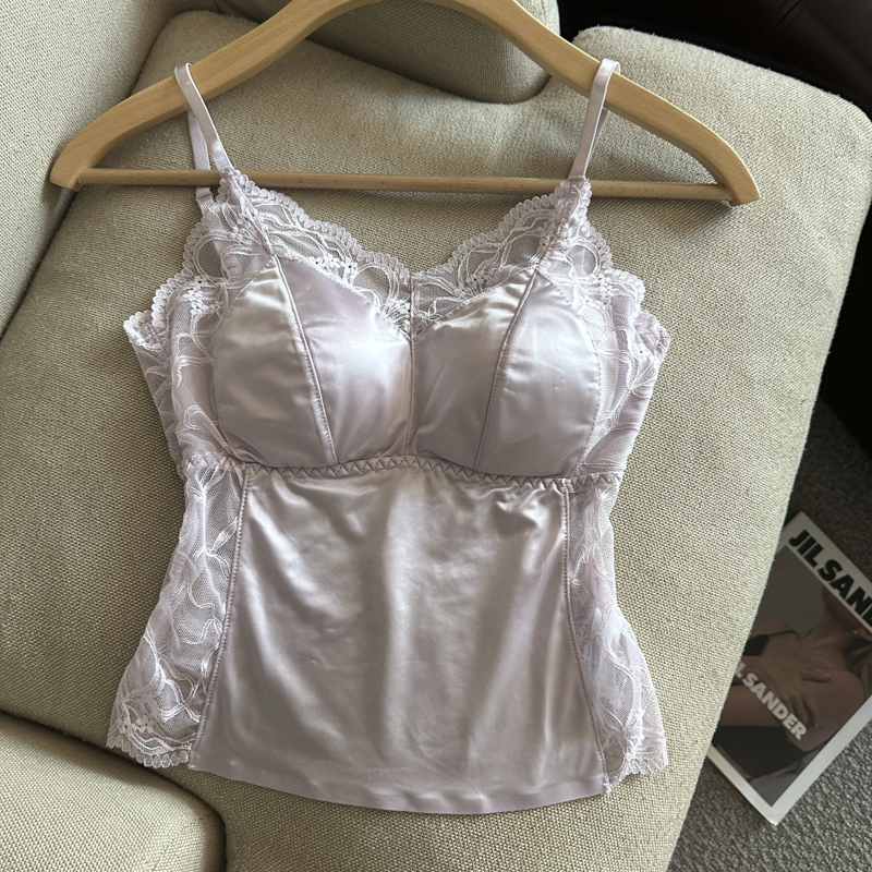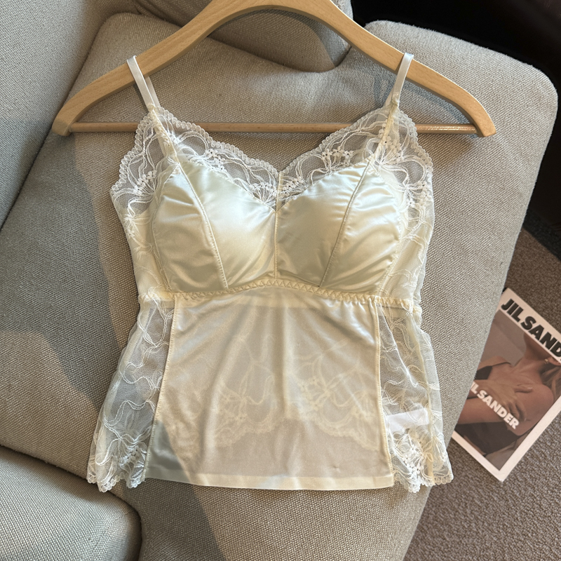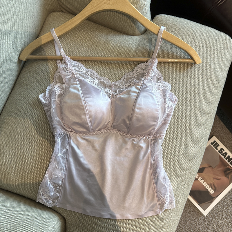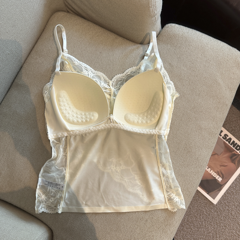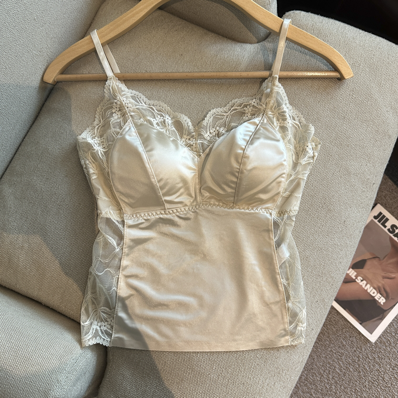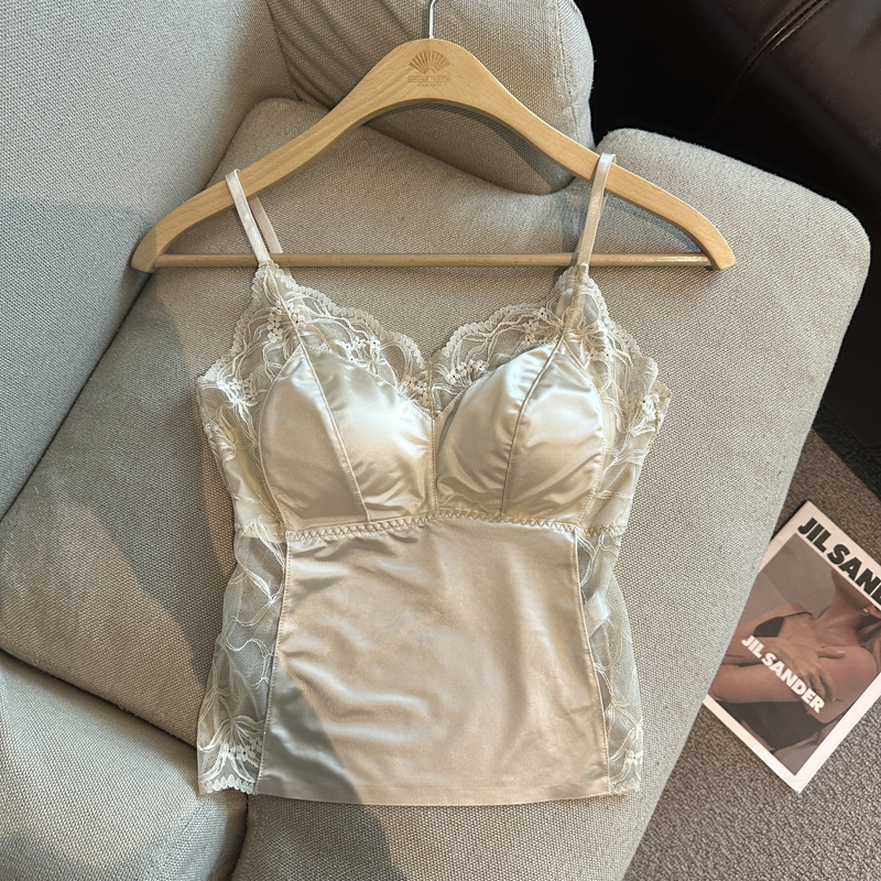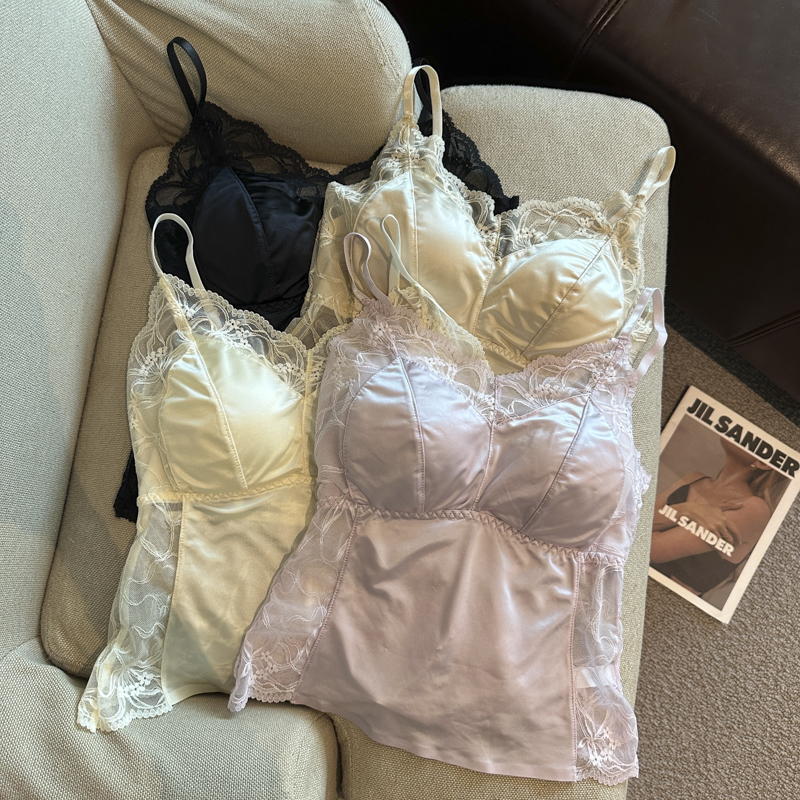 实拍 性感缎面蕾丝吊带背心女带胸垫内搭修身打底衫2026夏季新款