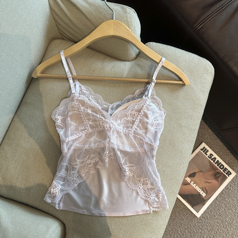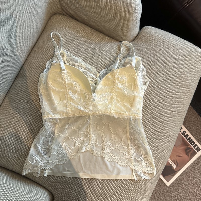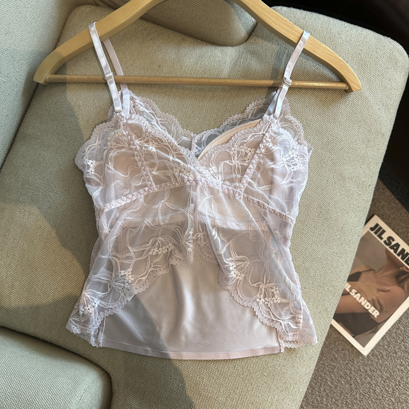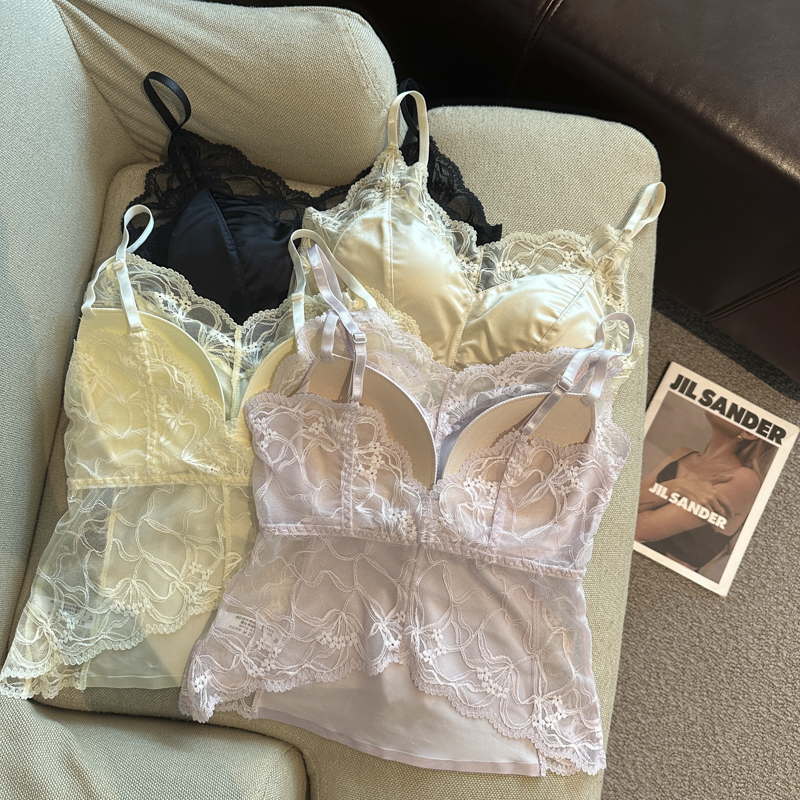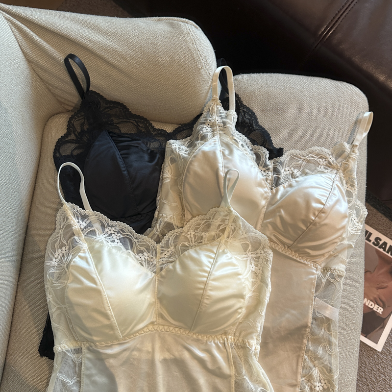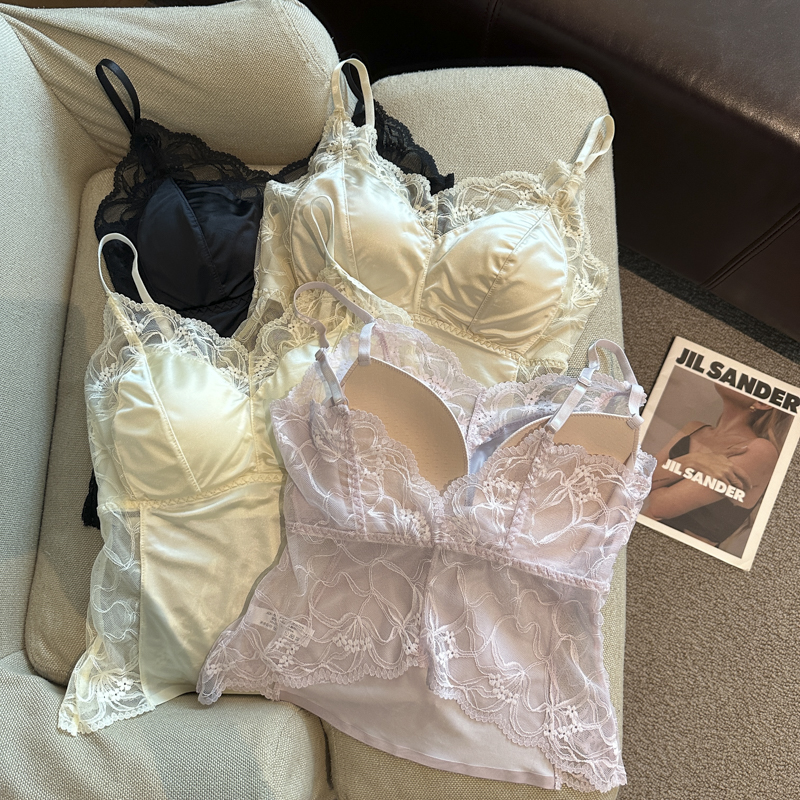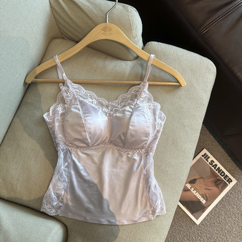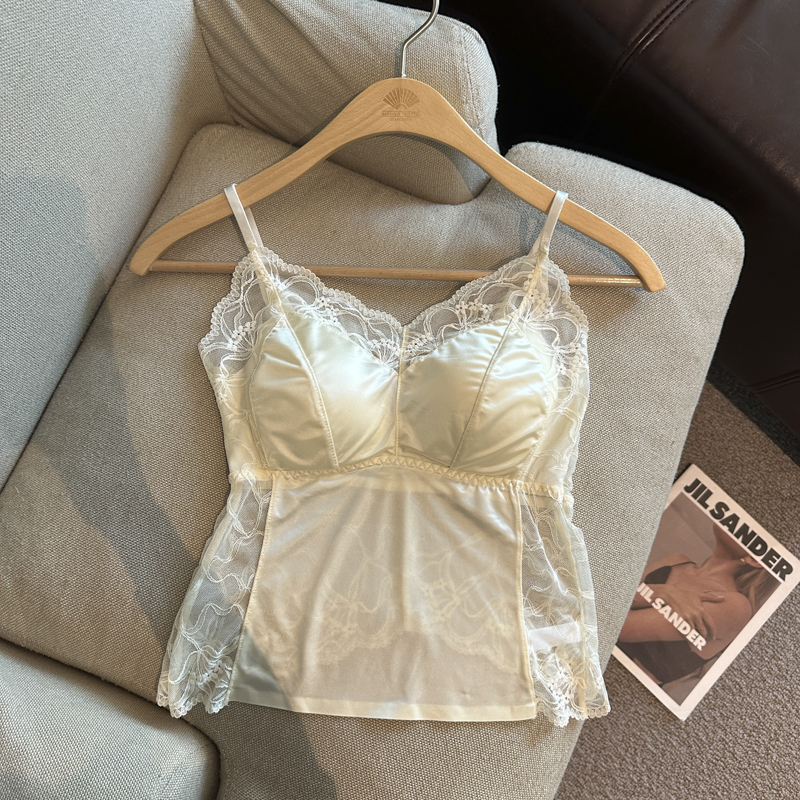 实拍 性感缎面蕾丝吊带背心女带胸垫内搭修身打底衫2026夏季新款