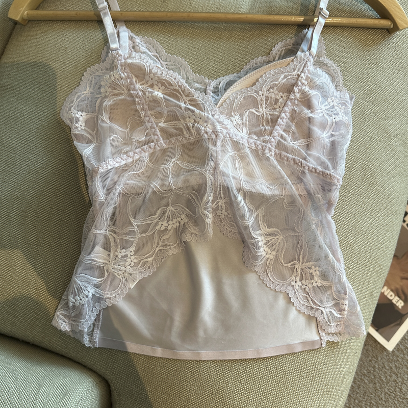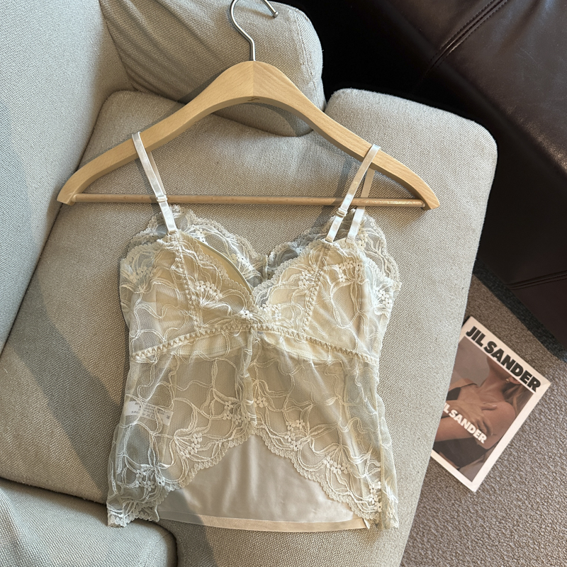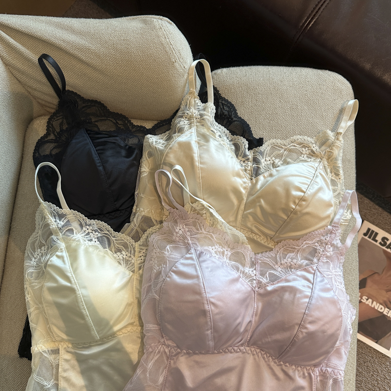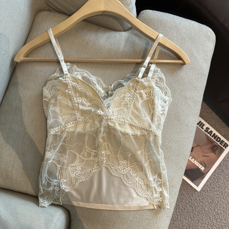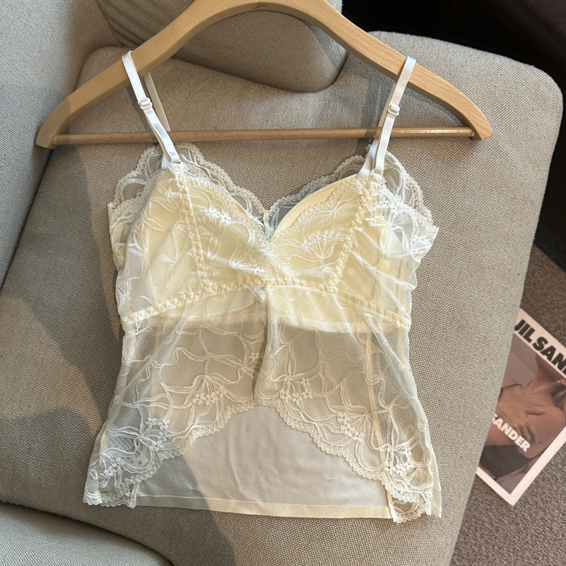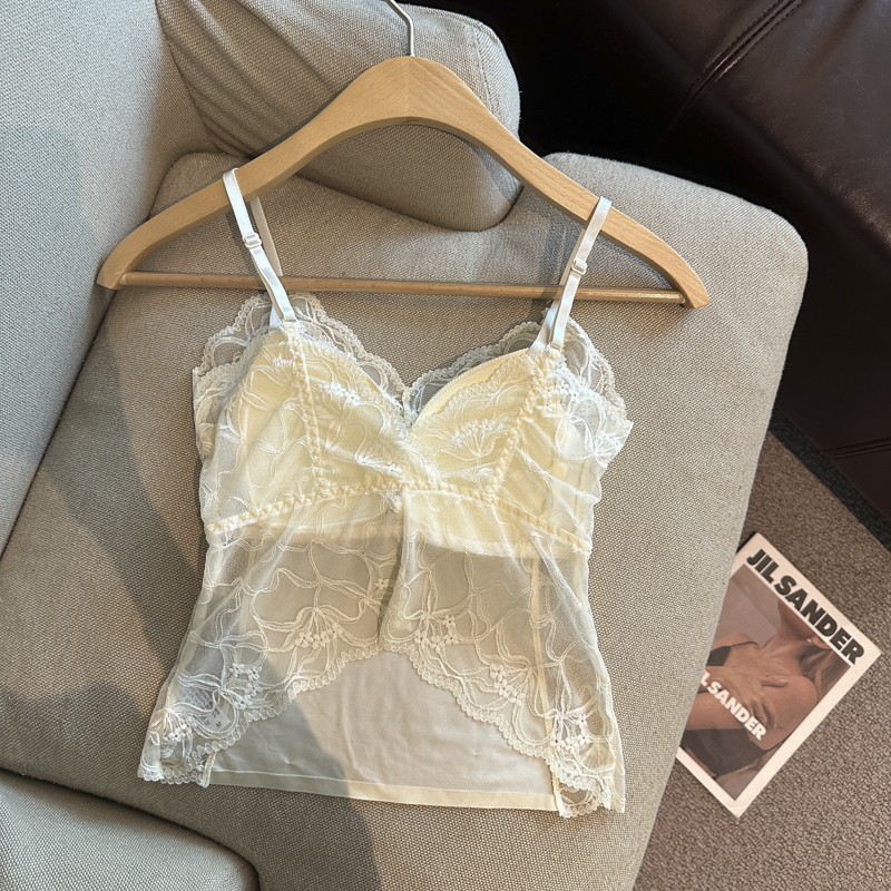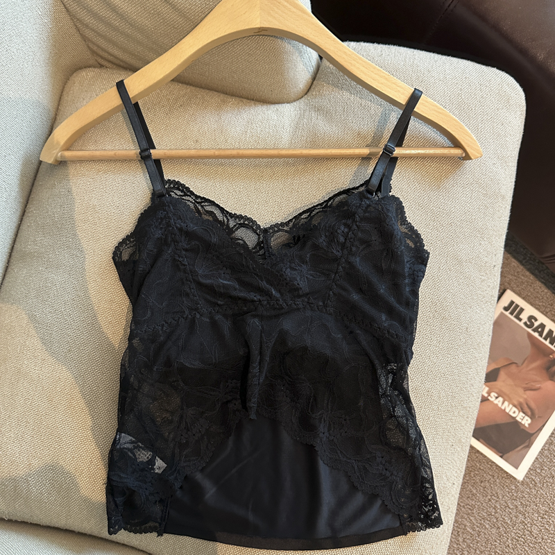 实拍 性感缎面蕾丝吊带背心女带胸垫内搭修身打底衫2026夏季新款