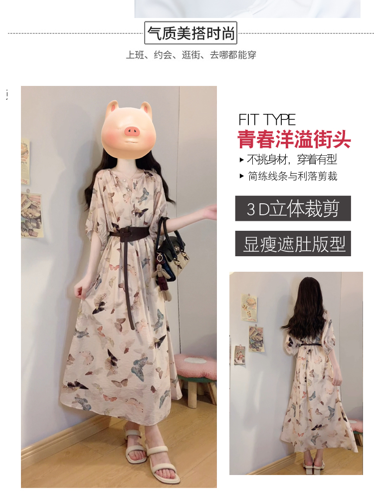 实拍~大码夏季新款度假风连衣裙女宽松显瘦a字裙洋气长裙三件套
