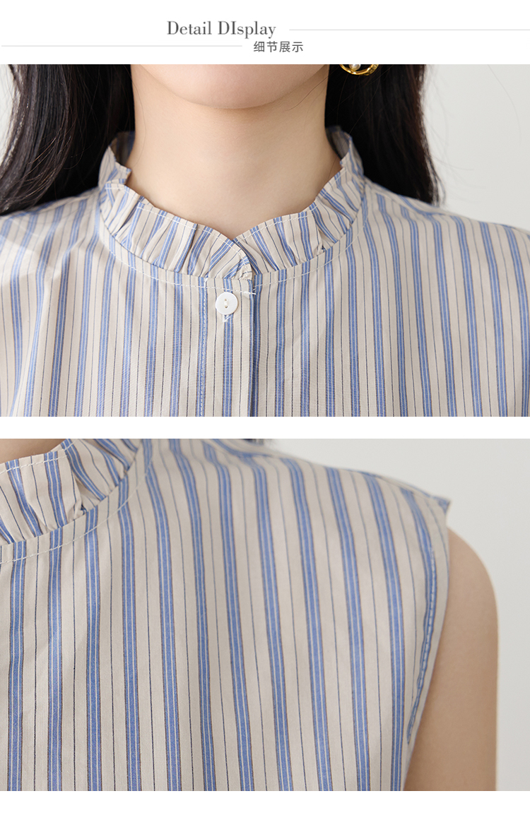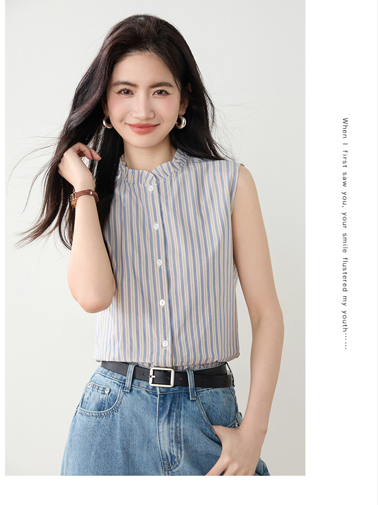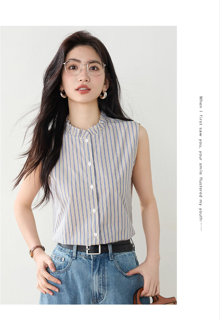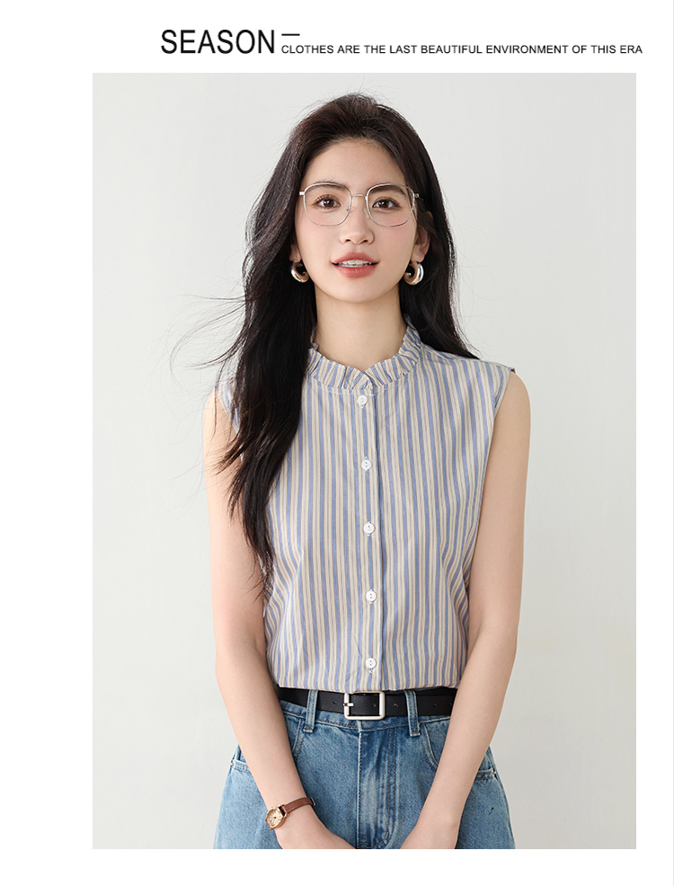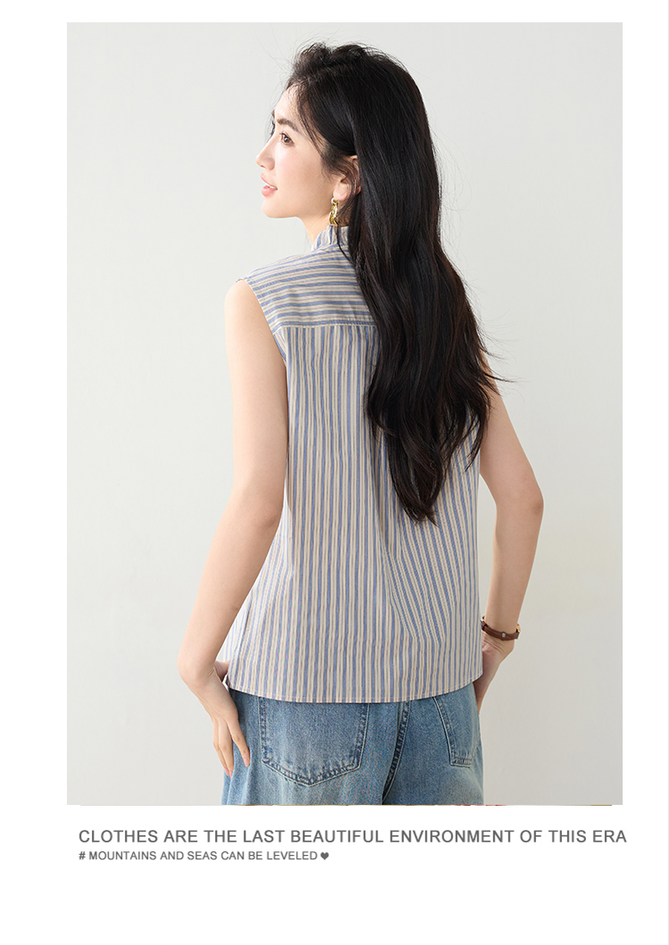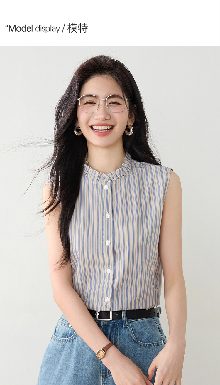 实拍2026年夏季韩系百搭条纹无袖衬衫气质上衣女