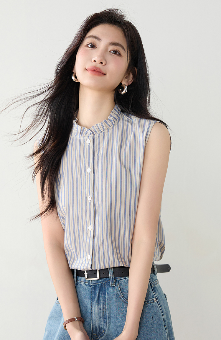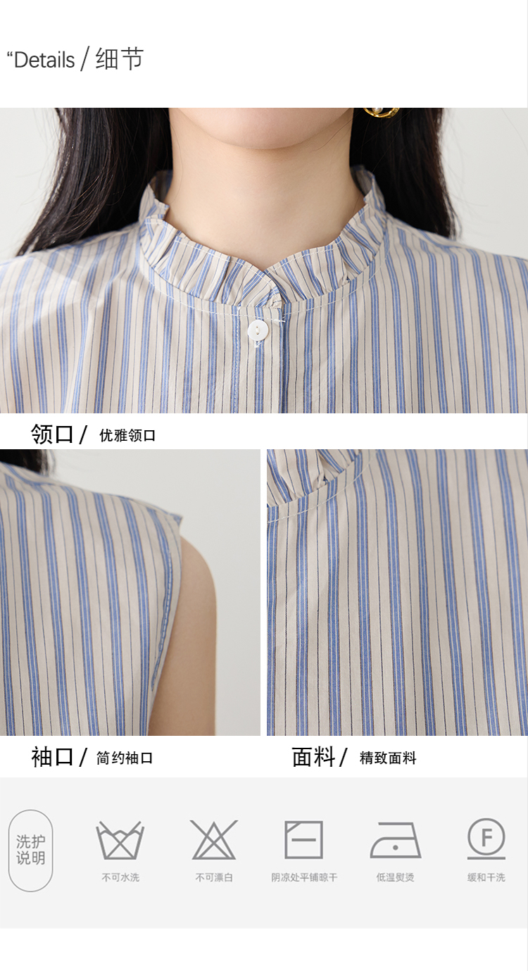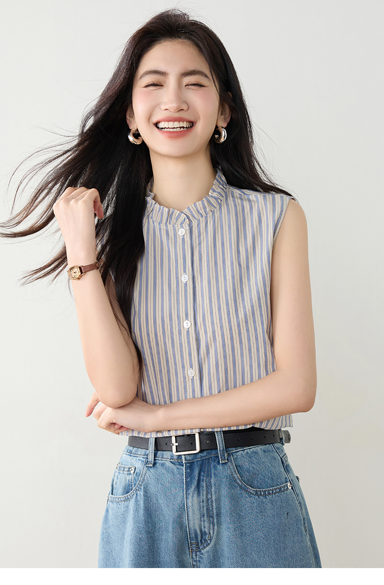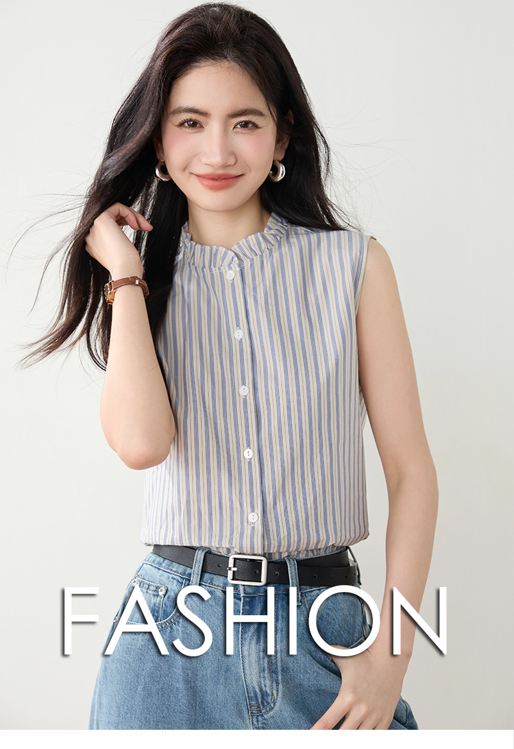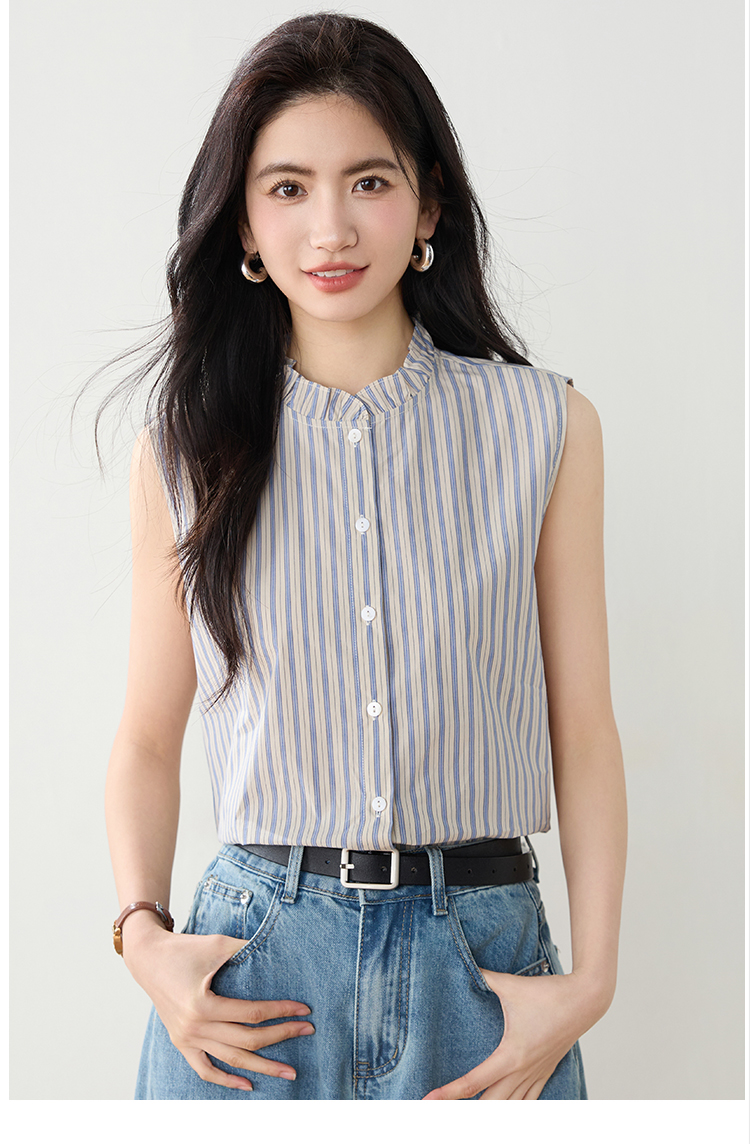 实拍2026年夏季韩系百搭条纹无袖衬衫气质上衣女