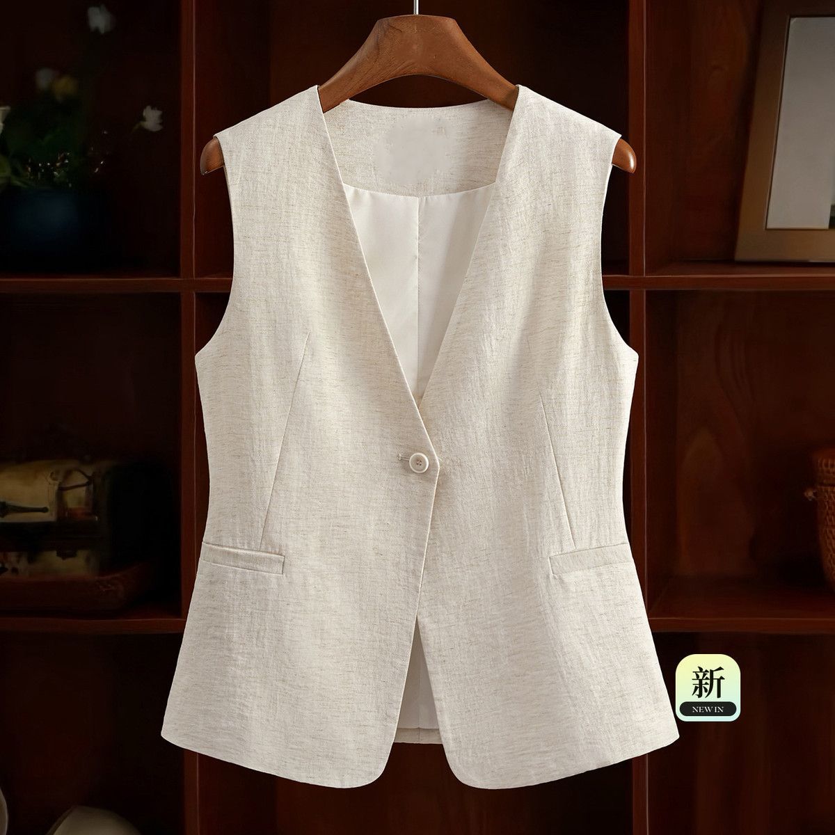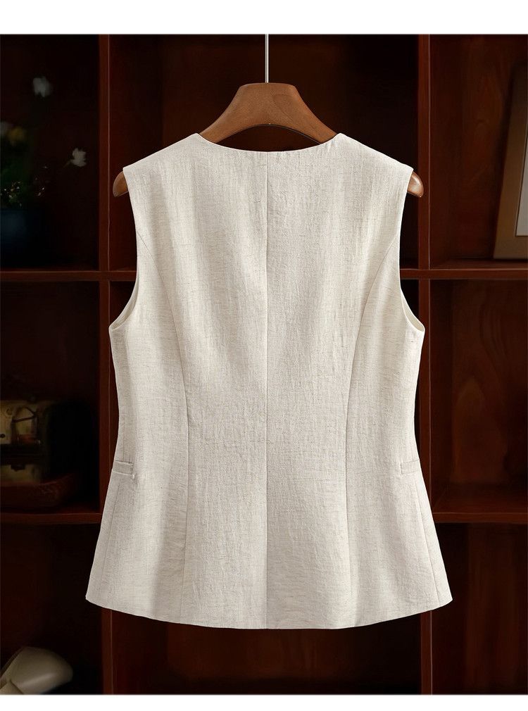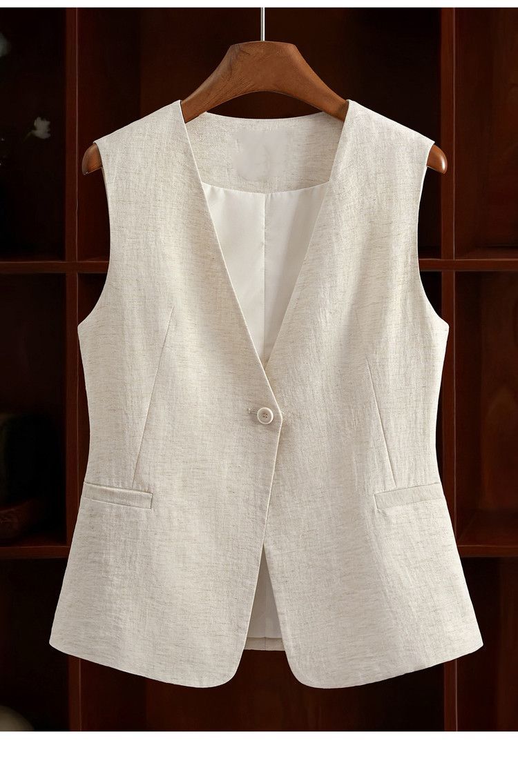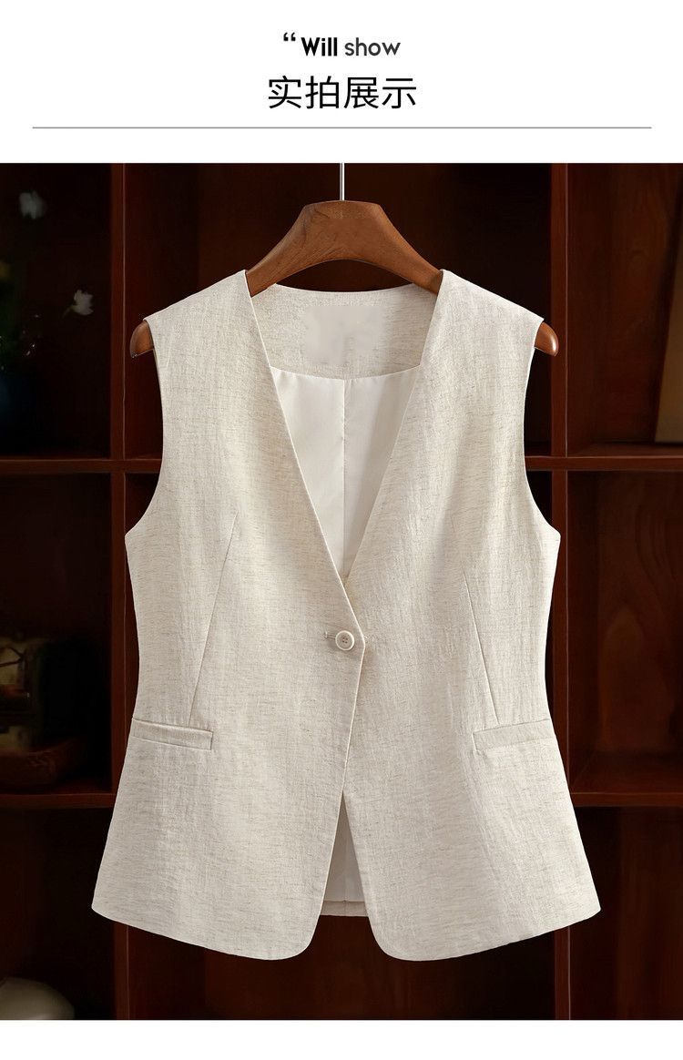 米白色西装马甲2026春装新款显瘦百搭女士纯色V领一粒扣马夹坎肩