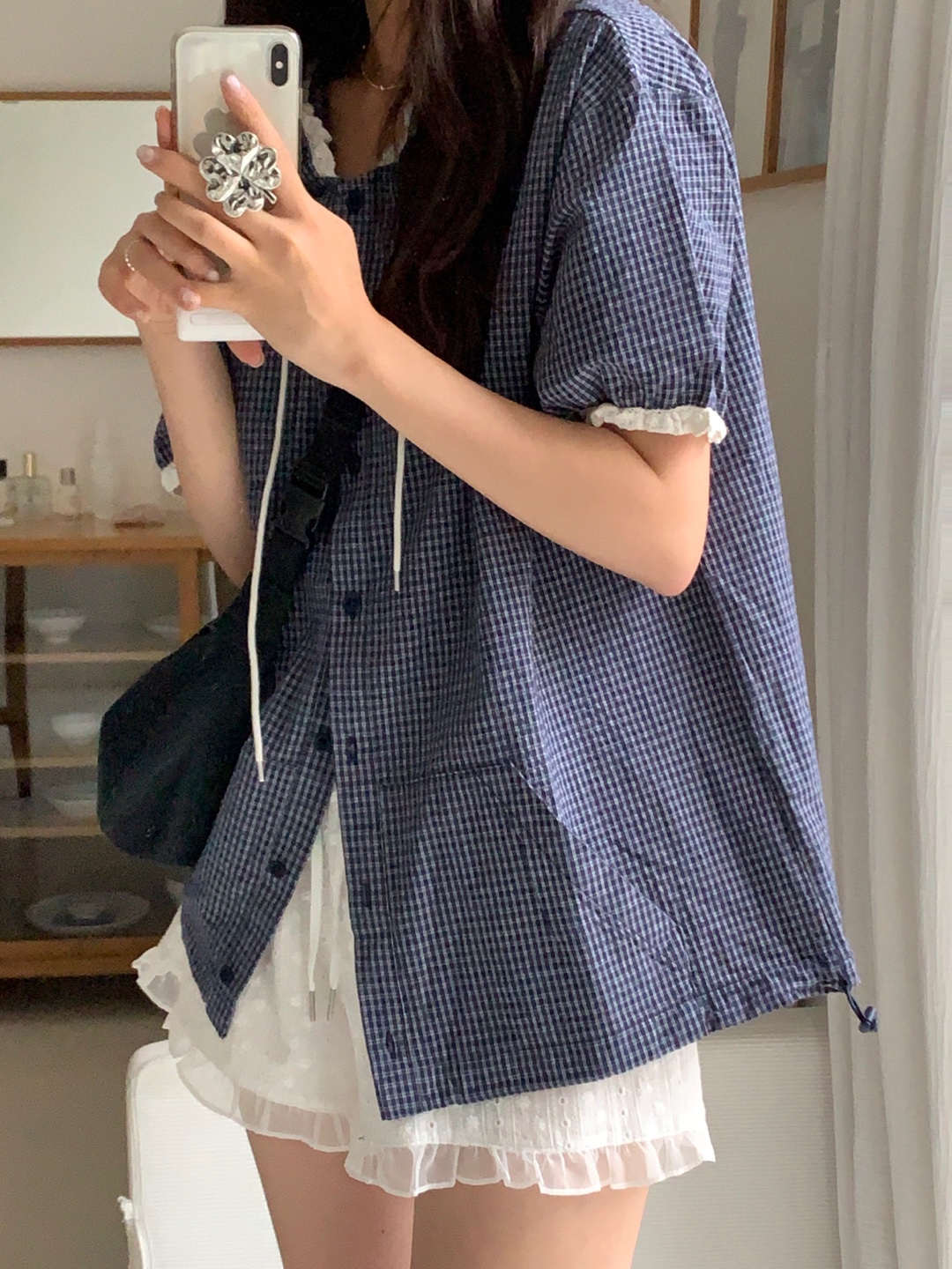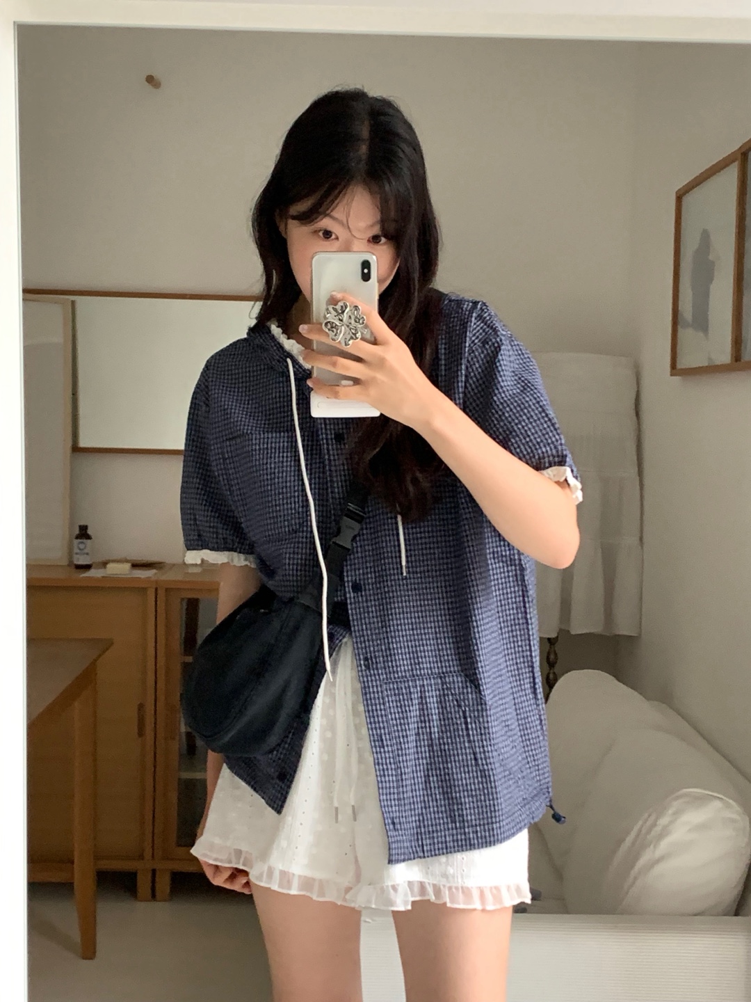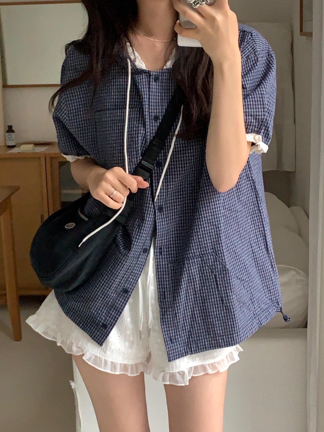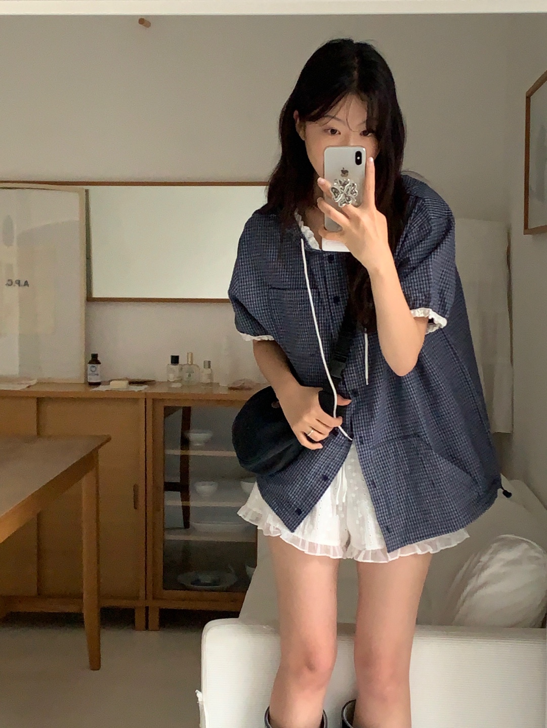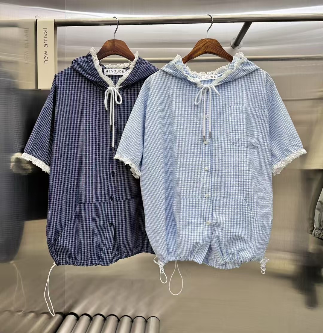 现huo~chic百搭格纹减龄连帽单排扣短款外套