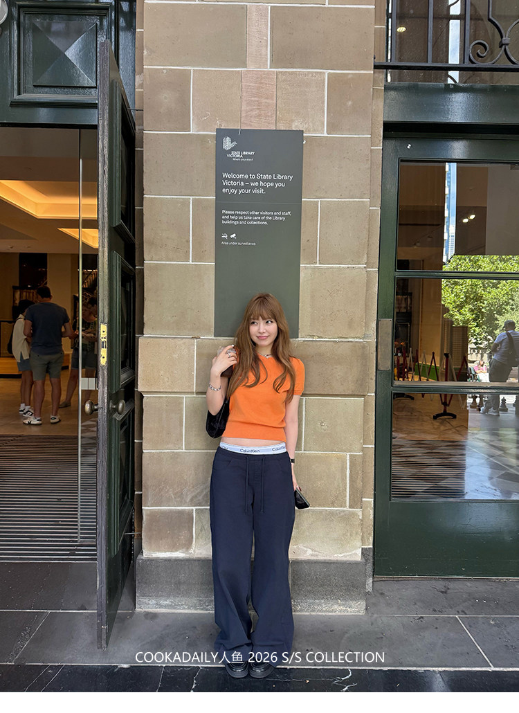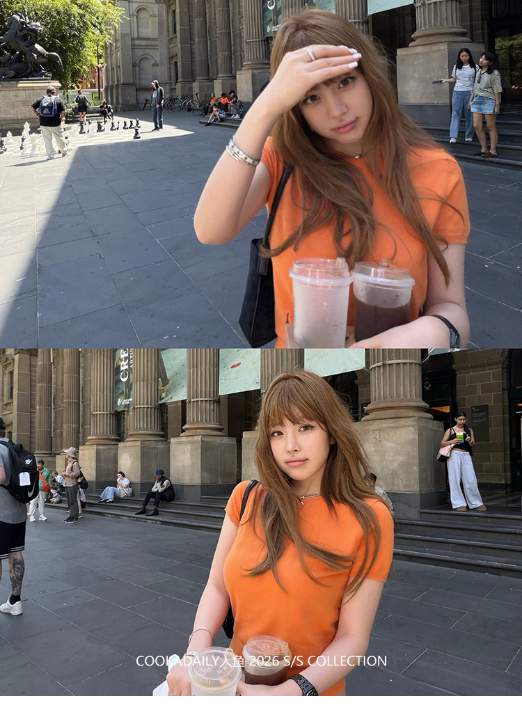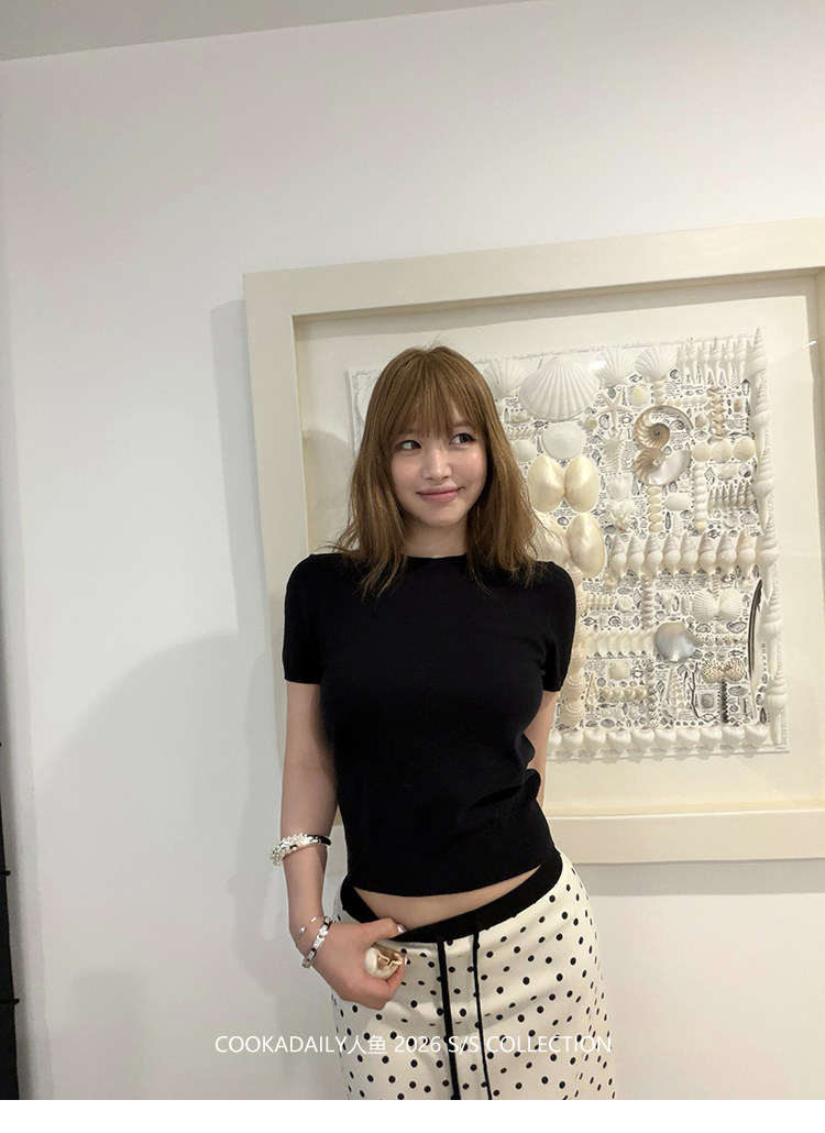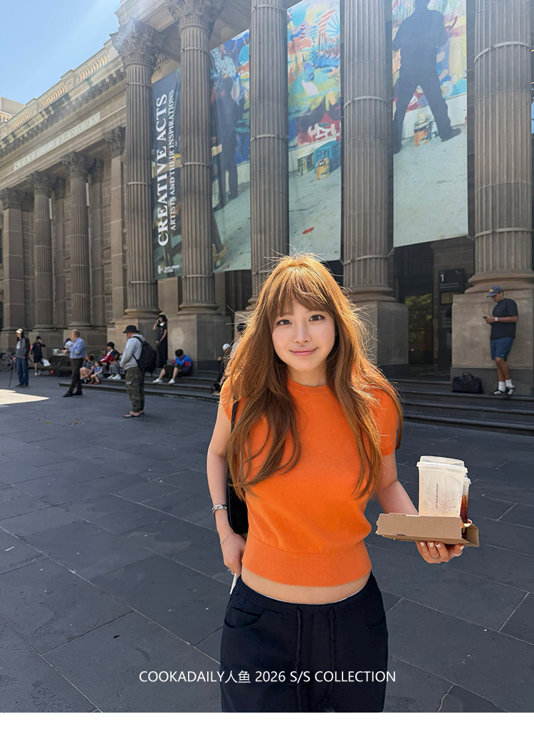 COOKADAILY人鱼 日常也好看橘子汽水贴肤针织短袖上衣简约休闲
