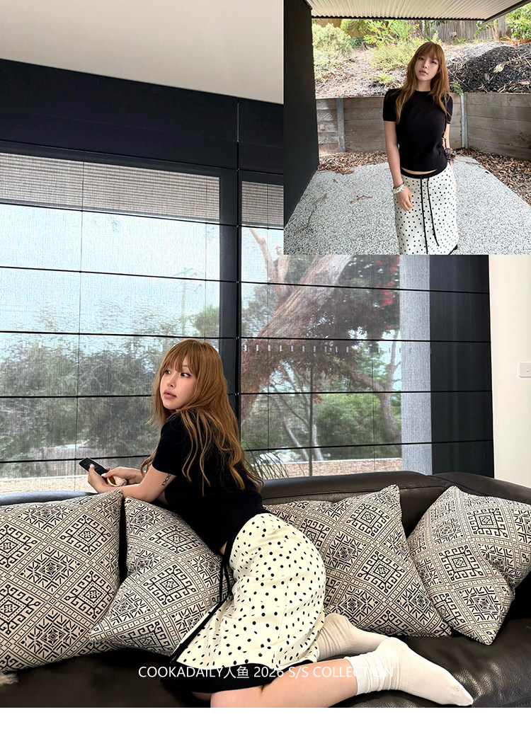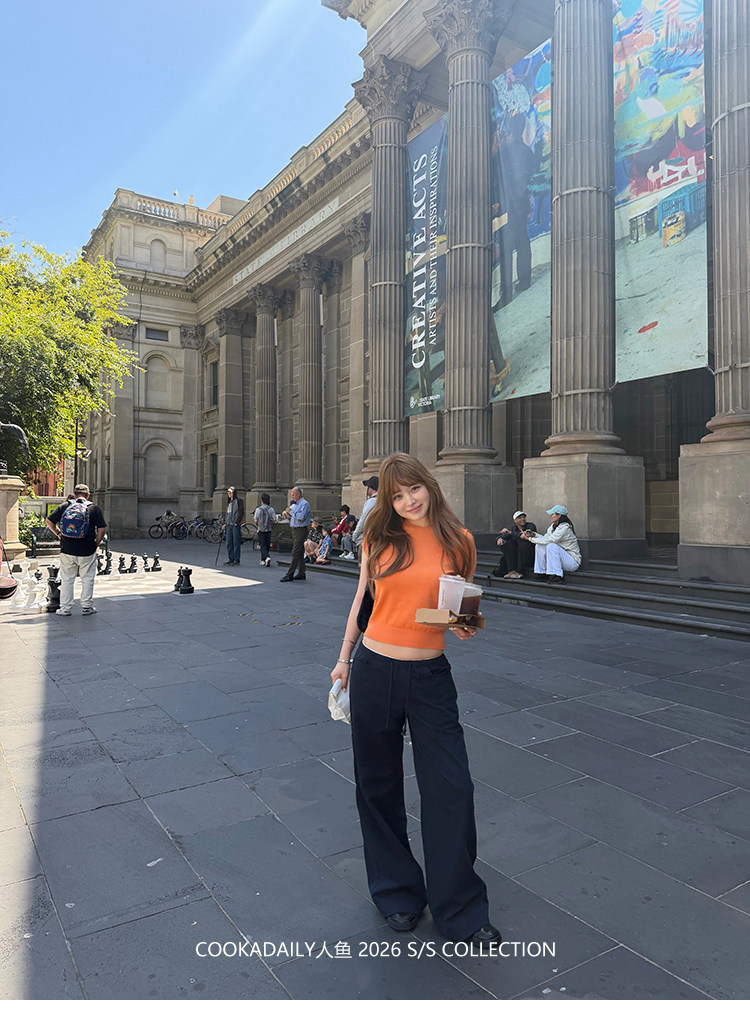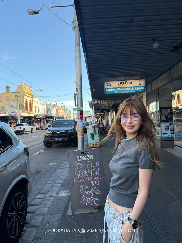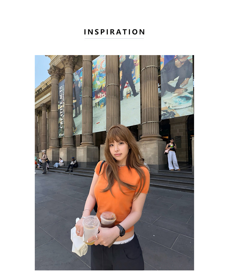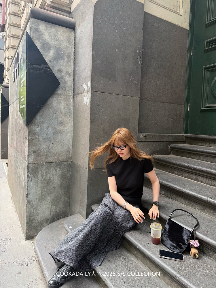 COOKADAILY人鱼 日常也好看橘子汽水贴肤针织短袖上衣简约休闲