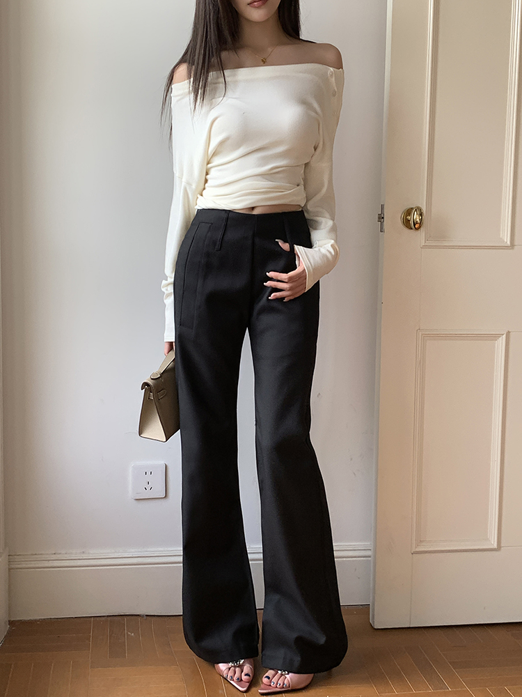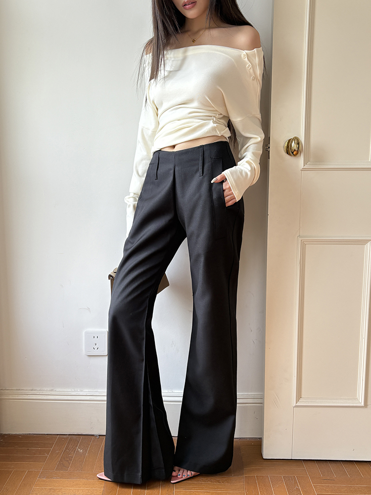 实拍2026春装新款设计帅气好穿黑色显瘦拖地直筒微喇西裤长裤女潮