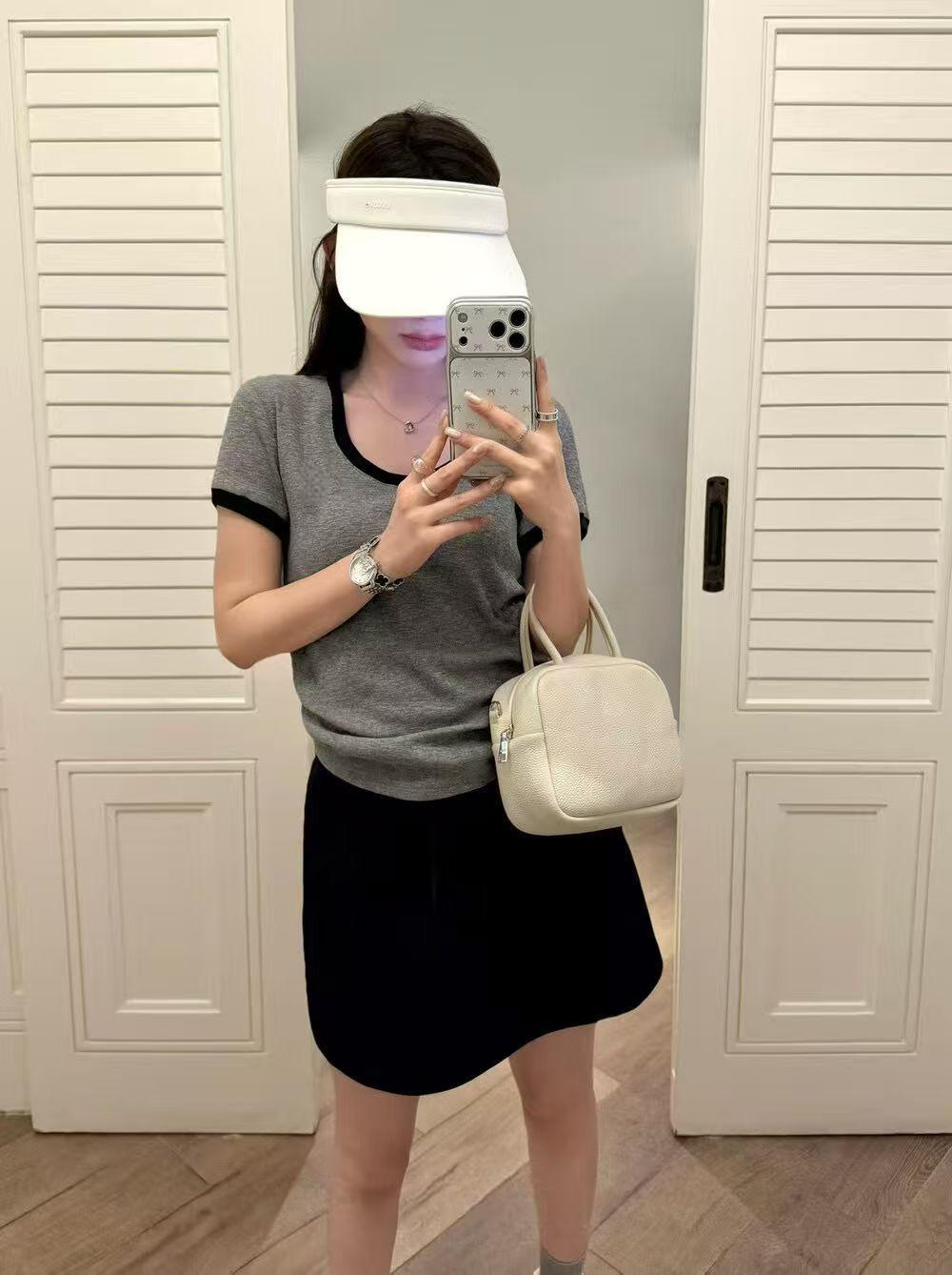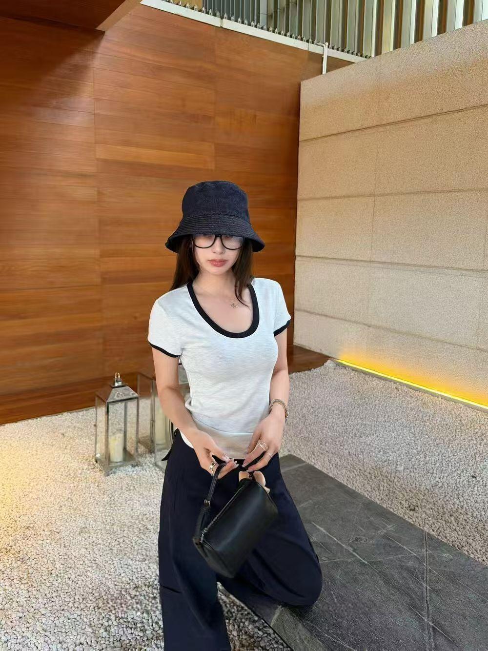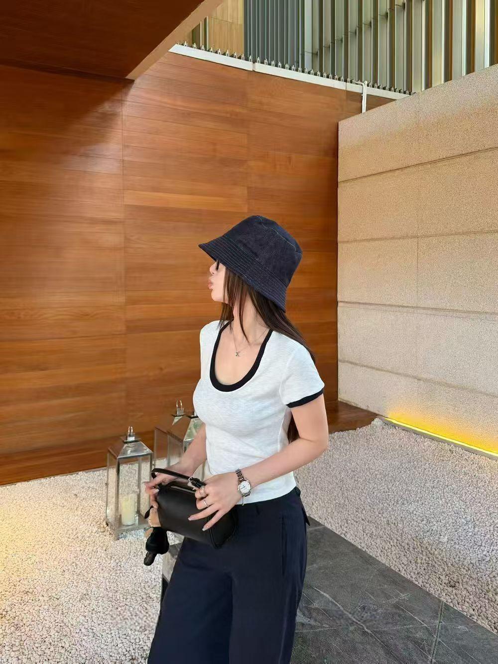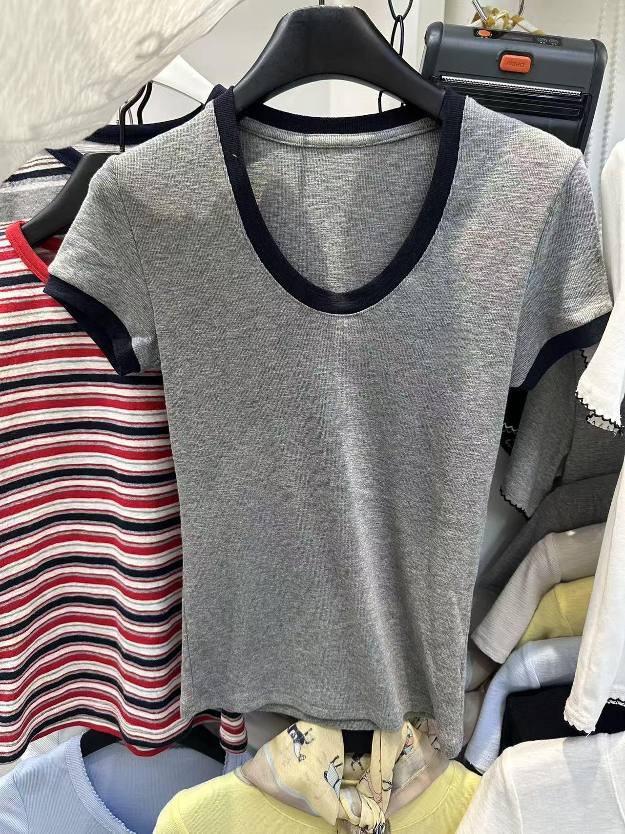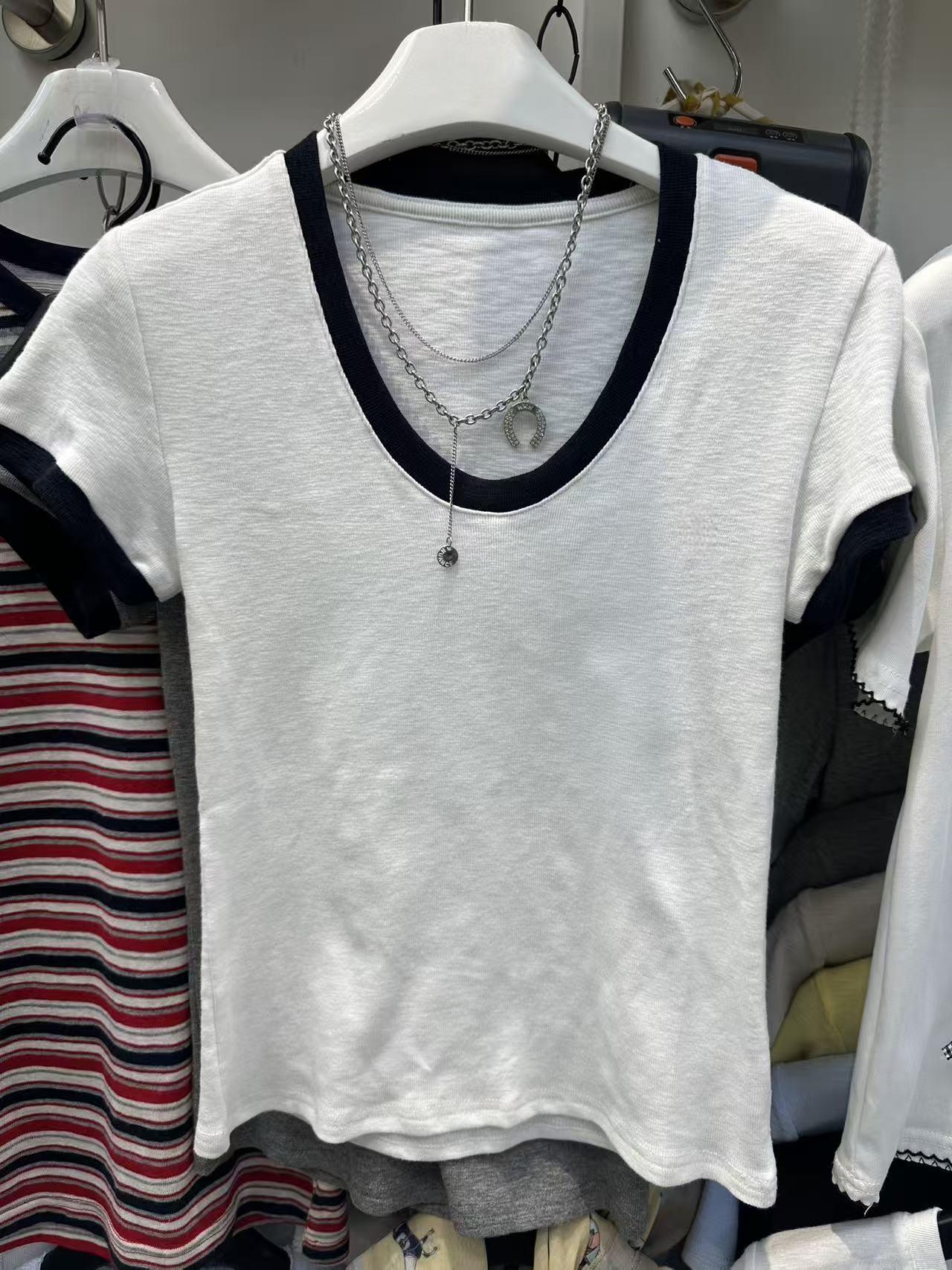 实体档口2026春夏新款撞色U领短袖T恤女白色修身时尚显瘦百搭上衣