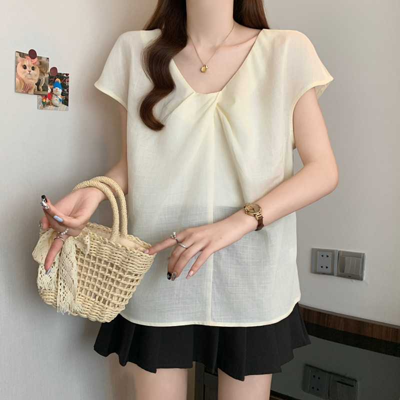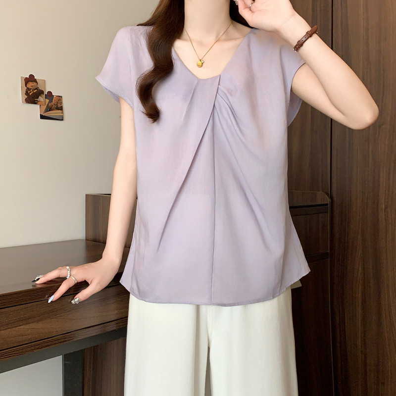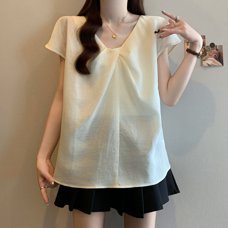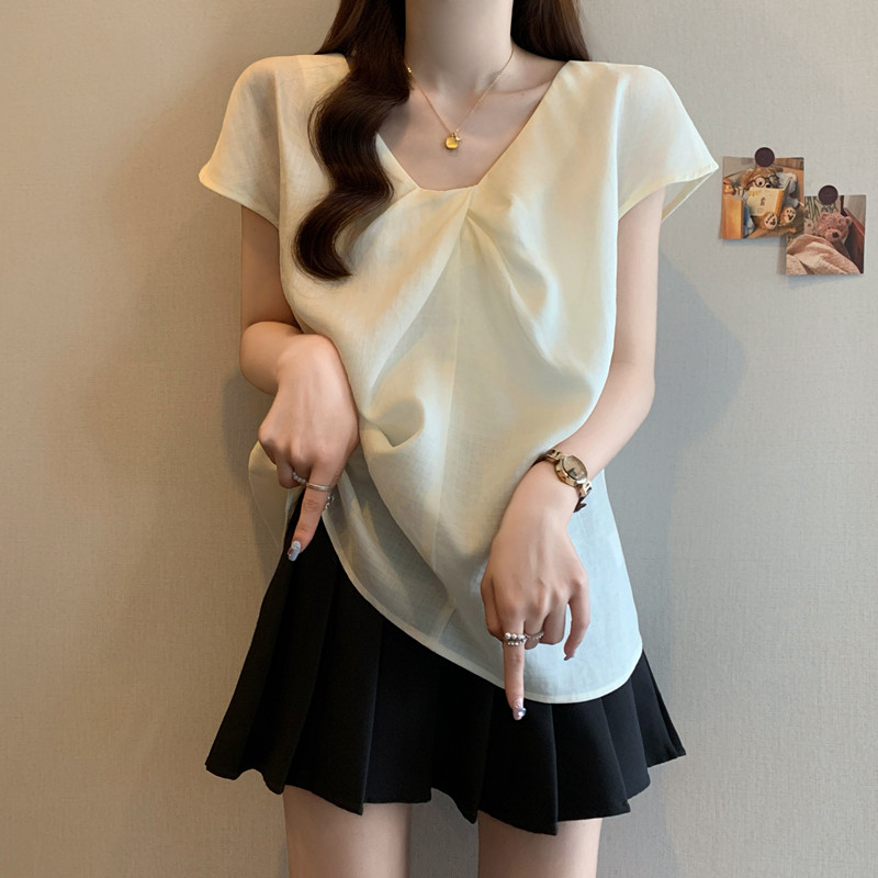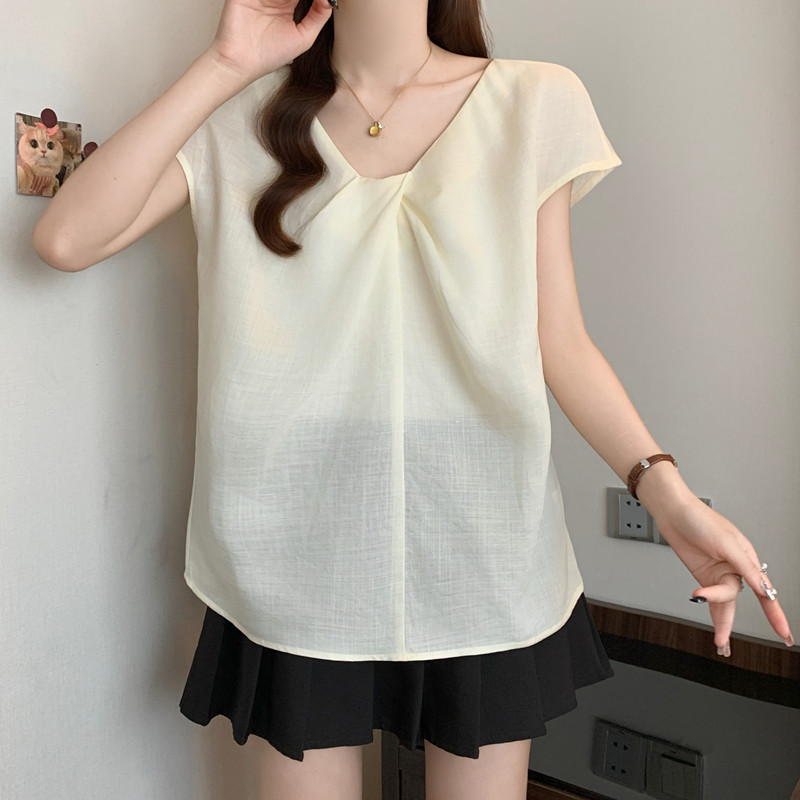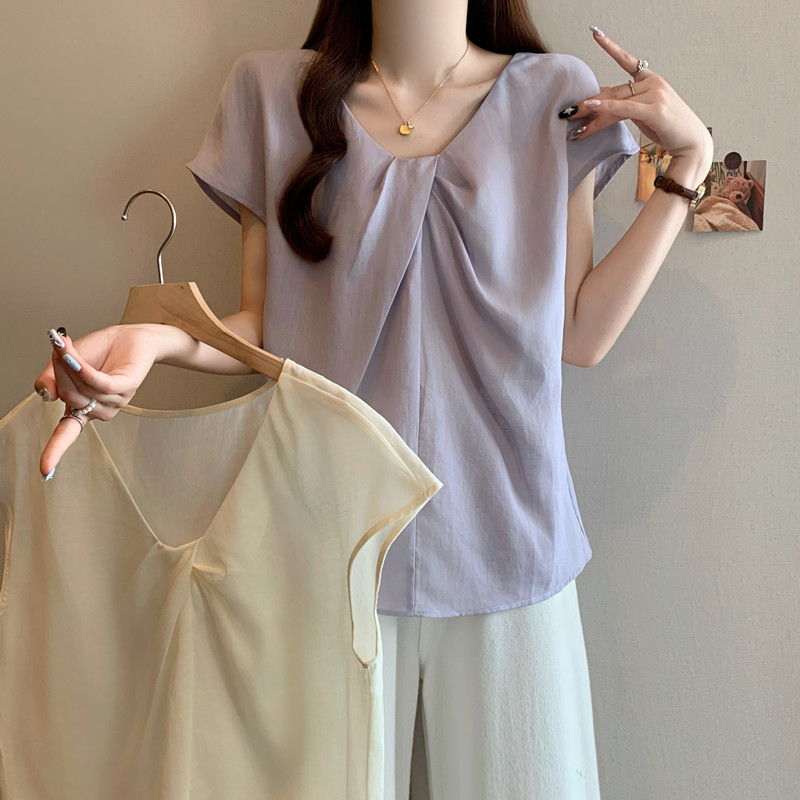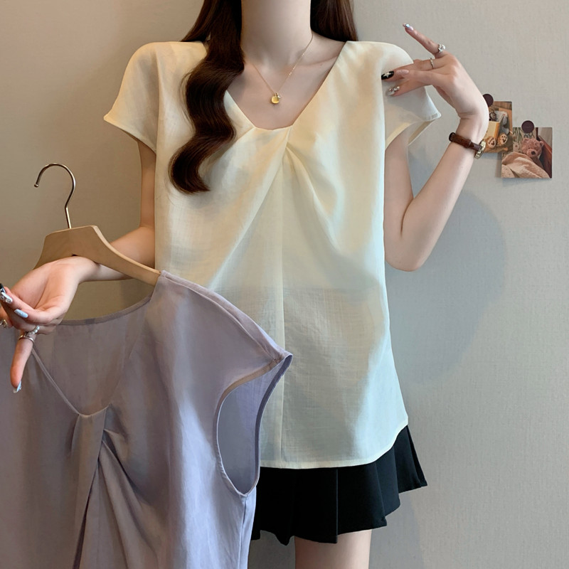 实拍大码女装胖MM夏季设计感V领扭结衬衫高级感百搭显瘦上衣小衫