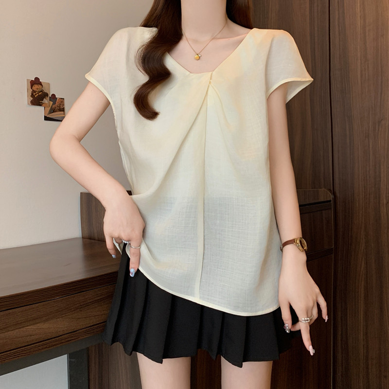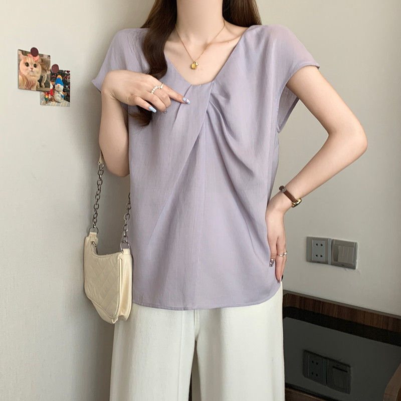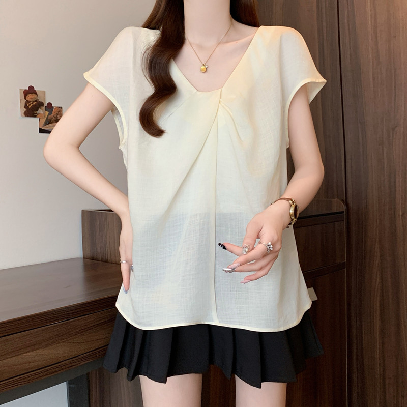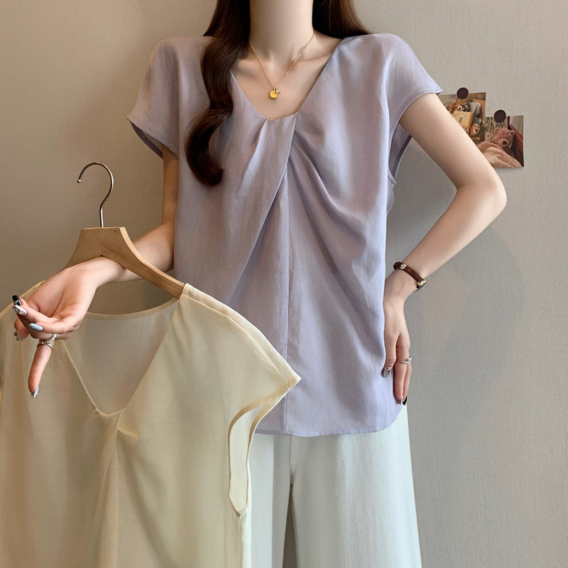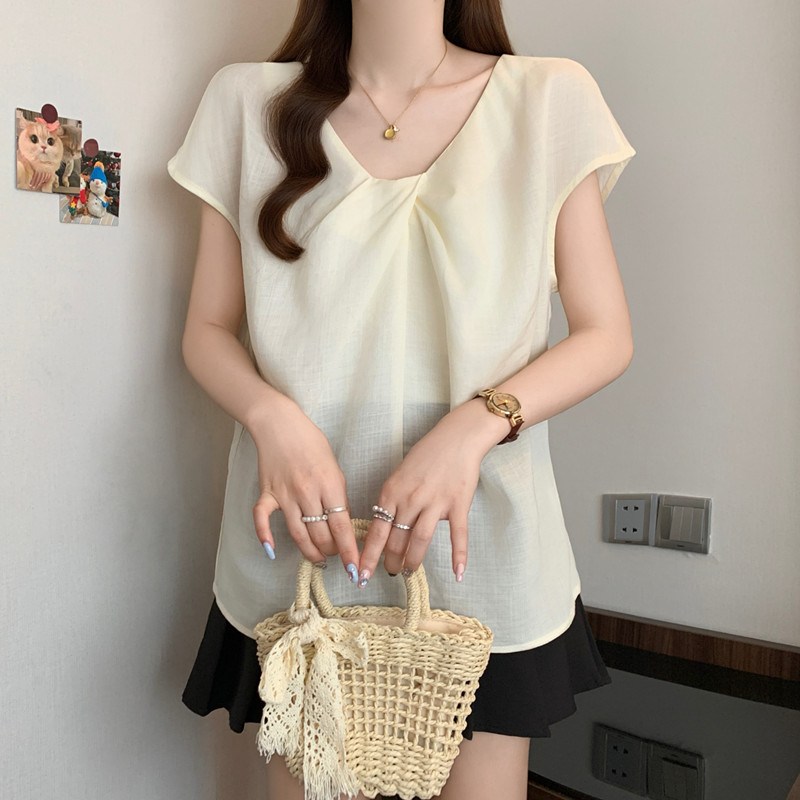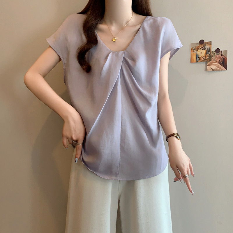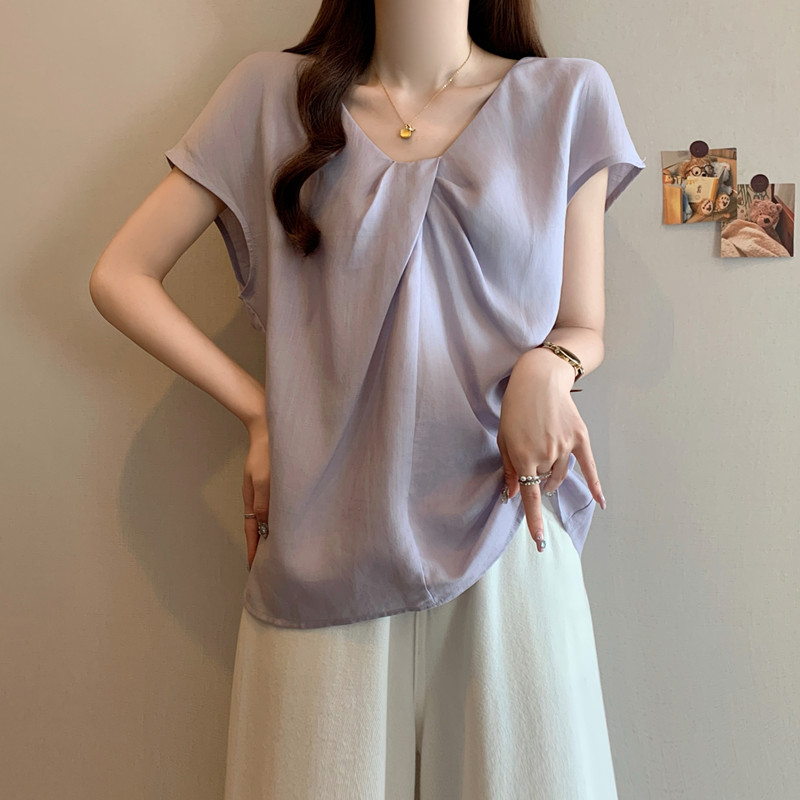 实拍大码女装胖MM夏季设计感V领扭结衬衫高级感百搭显瘦上衣小衫