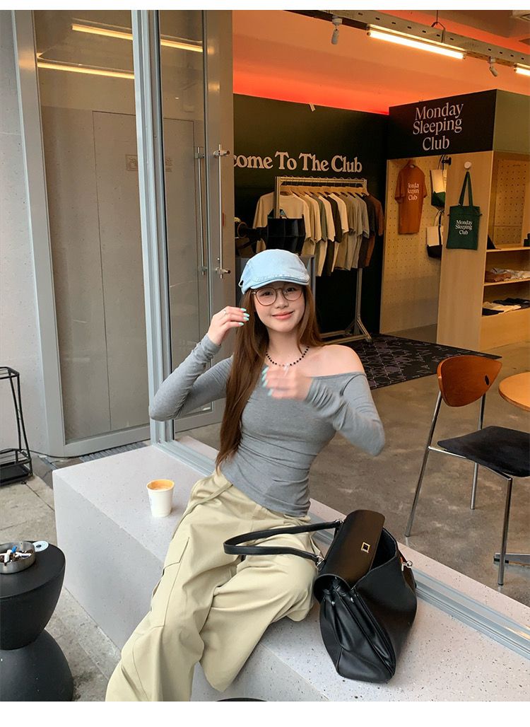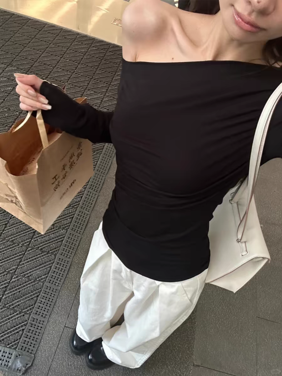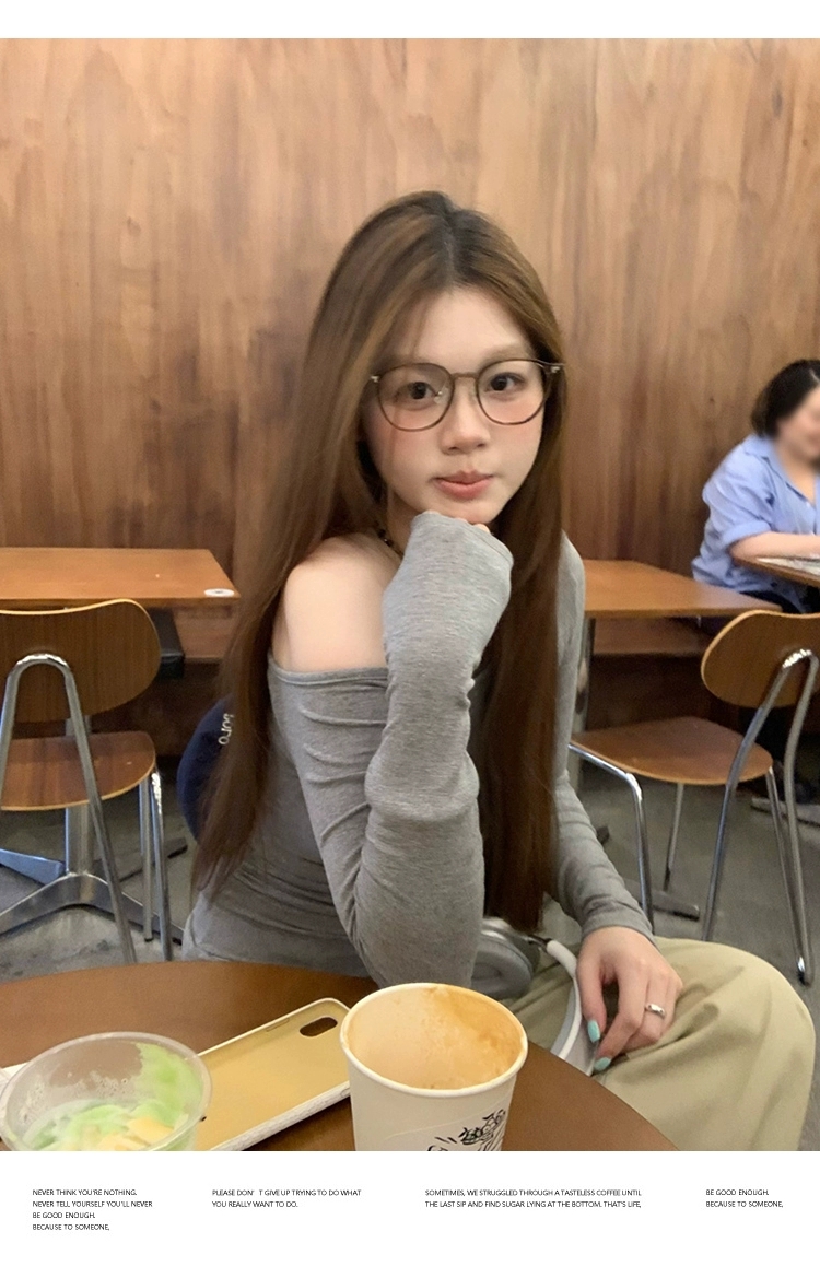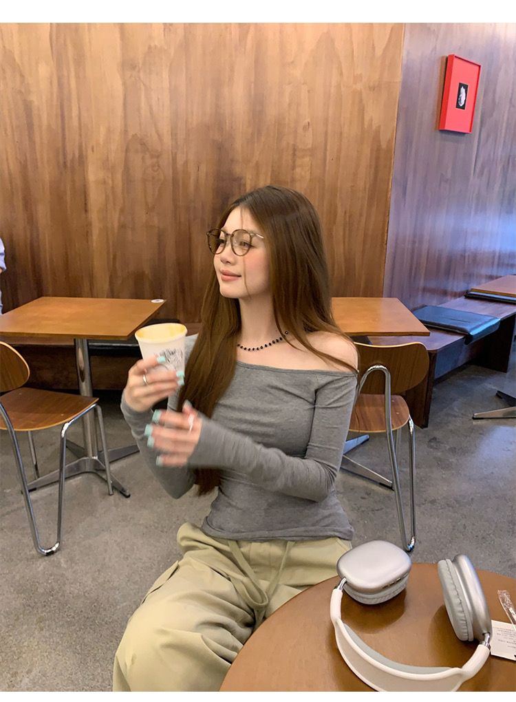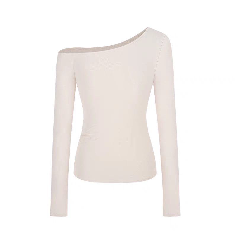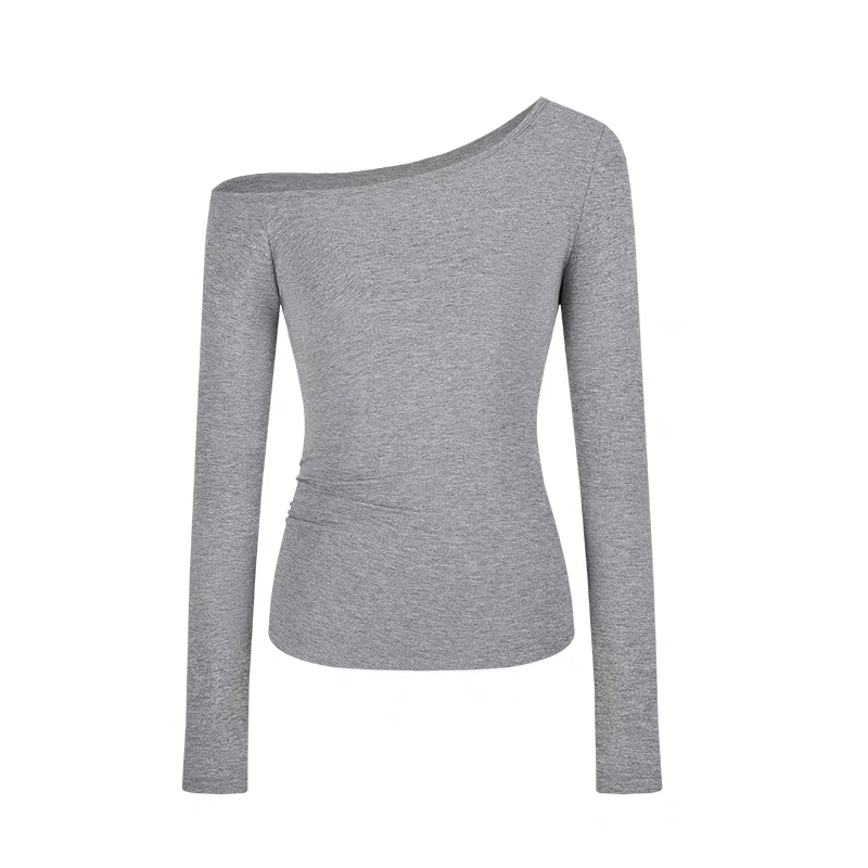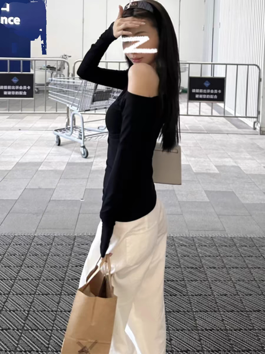 莫代尔92人棉8氨纶260克露肩长袖T恤女装早秋百搭打底衫上衣