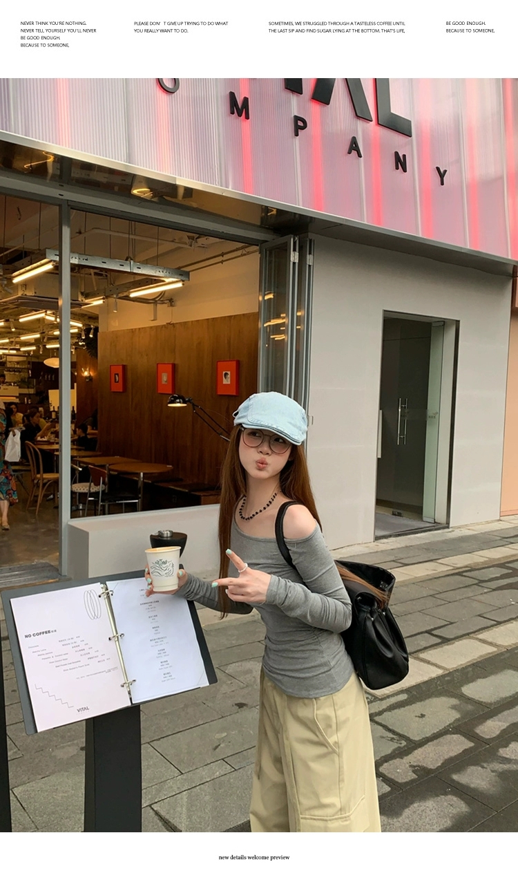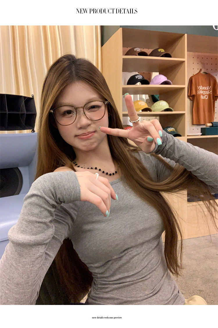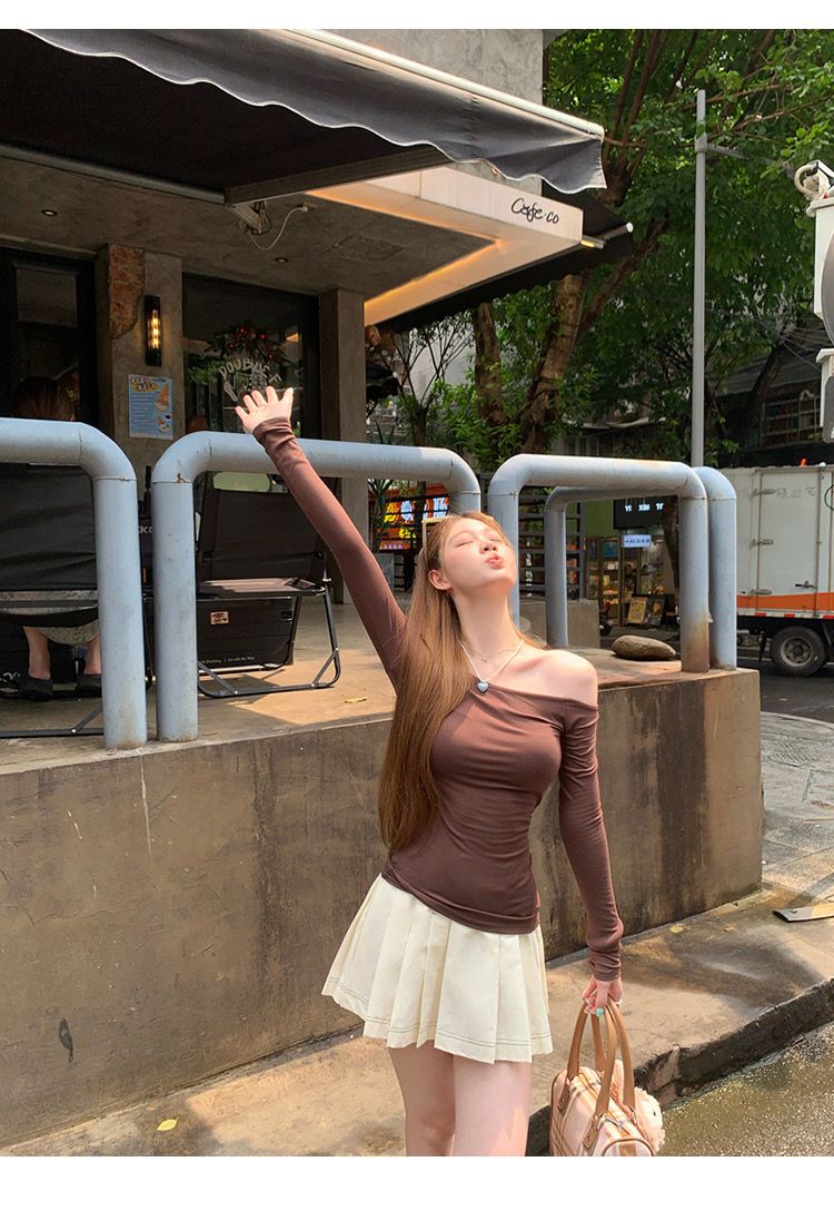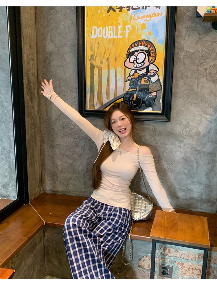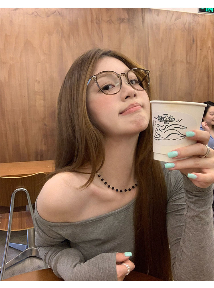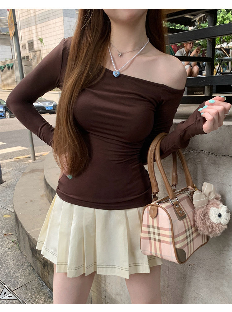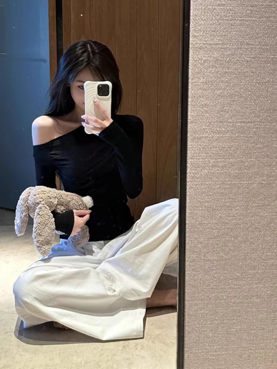 莫代尔92人棉8氨纶260克露肩长袖T恤女装早秋百搭打底衫上衣