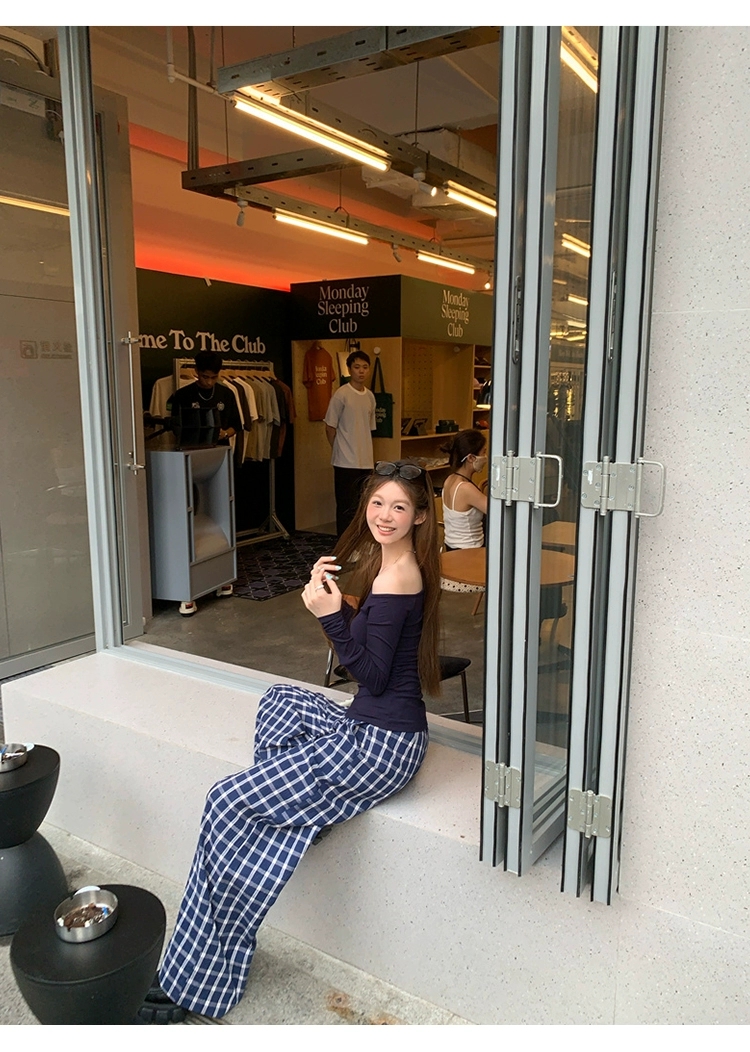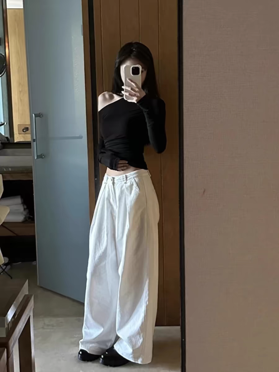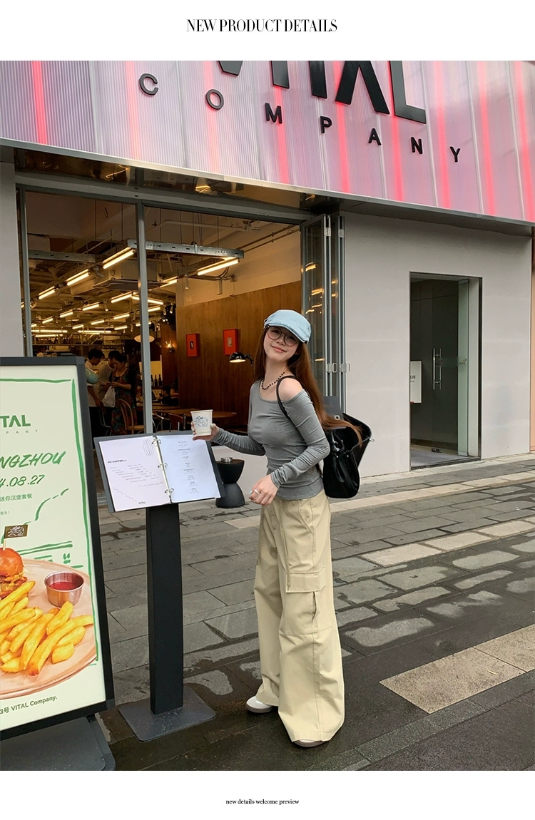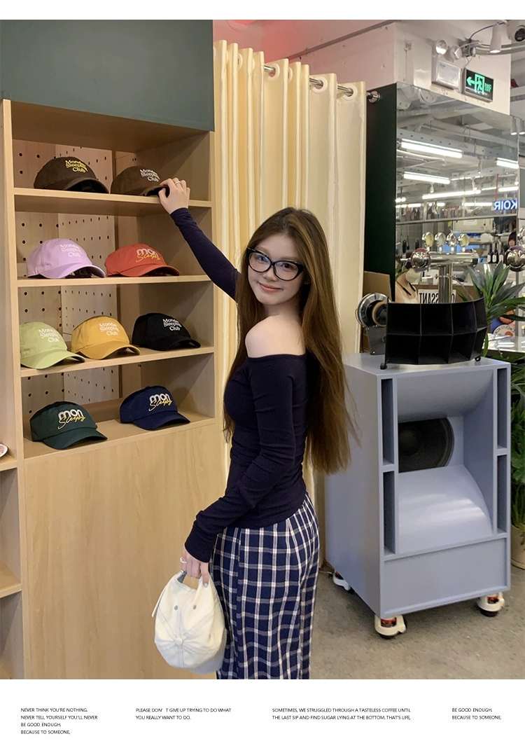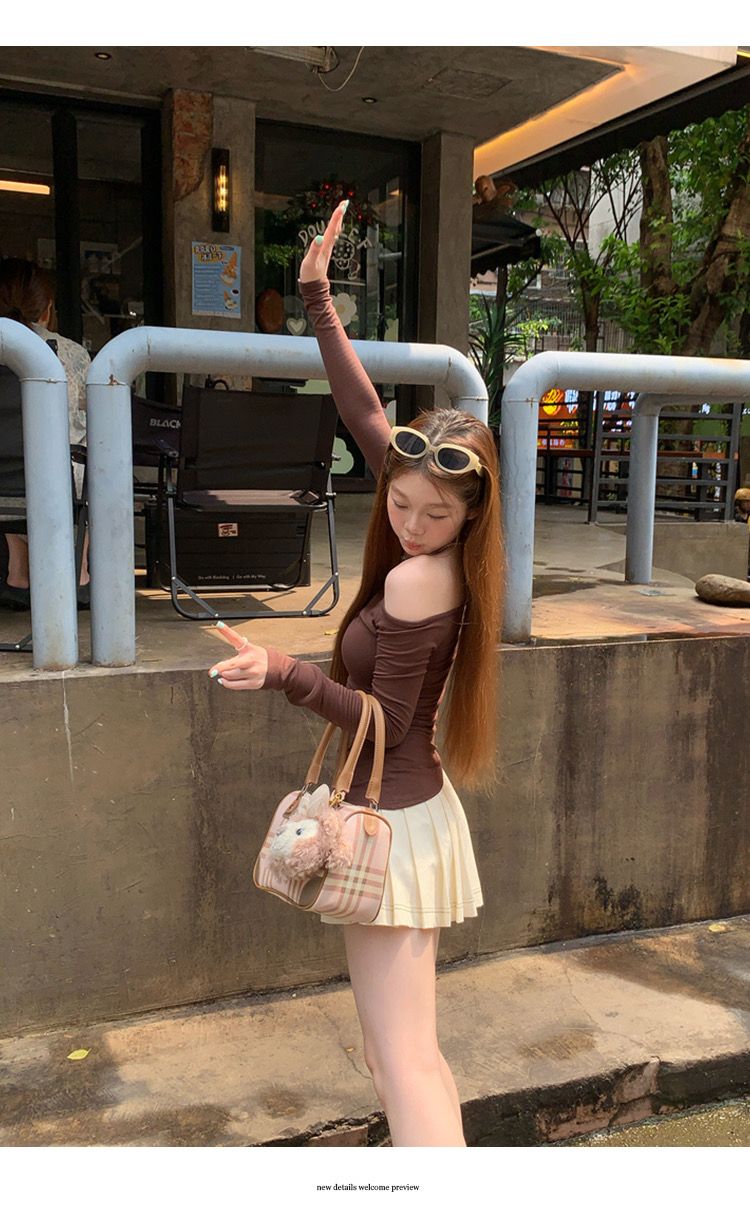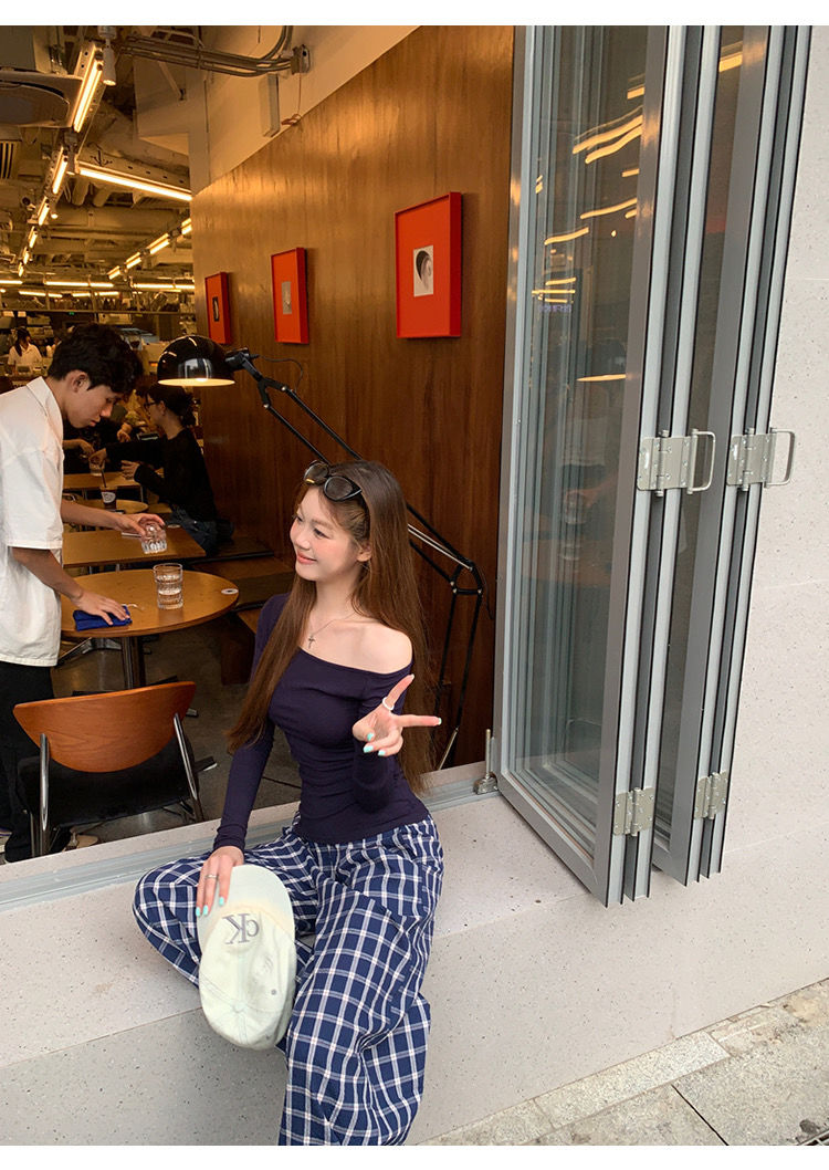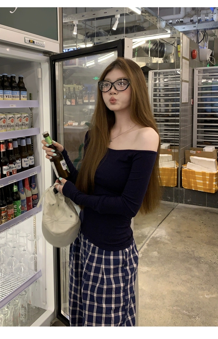 莫代尔92人棉8氨纶260克露肩长袖T恤女装早秋百搭打底衫上衣