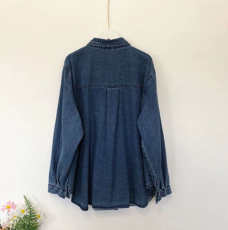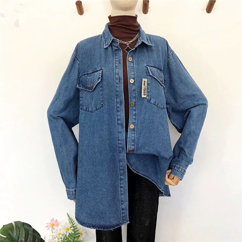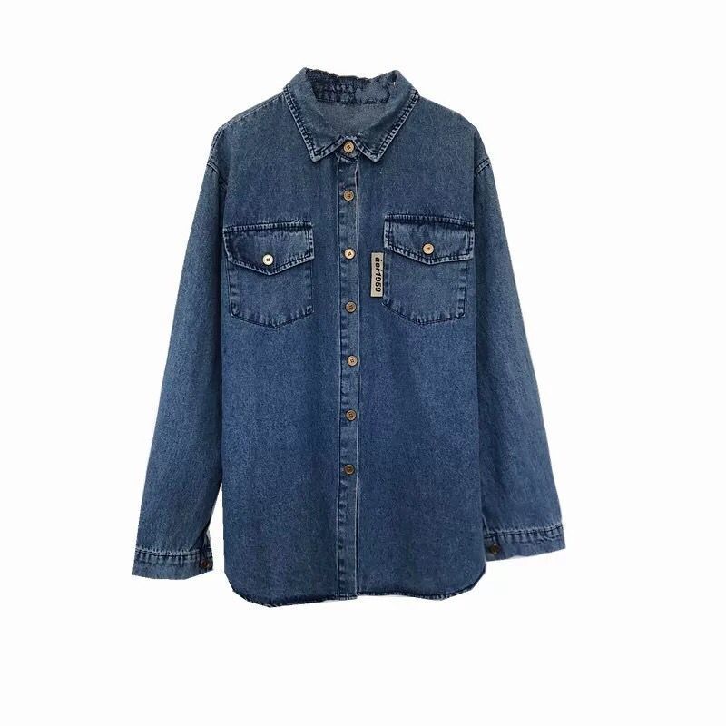 2021早春女衬衣韩版宽松中长款打底复古长袖内搭叠穿牛仔衬衫外套