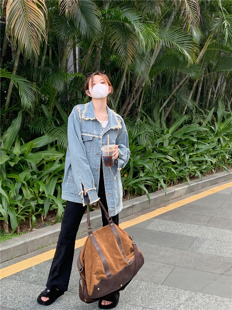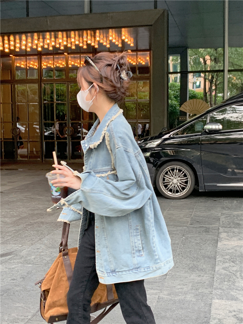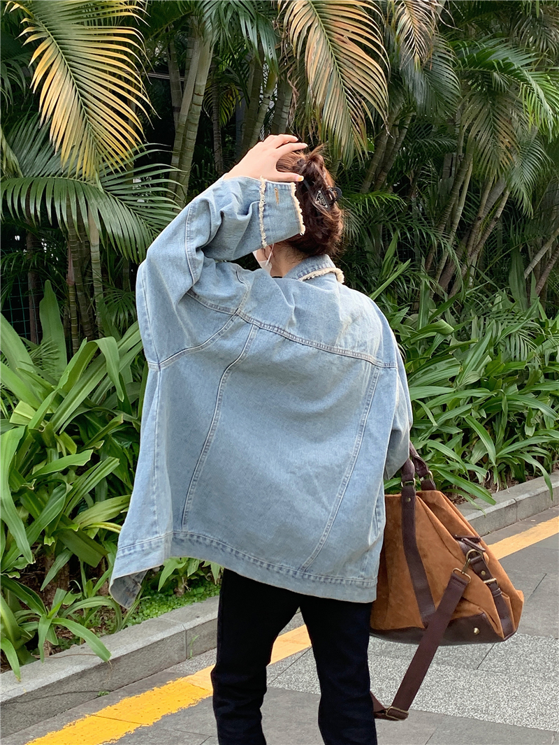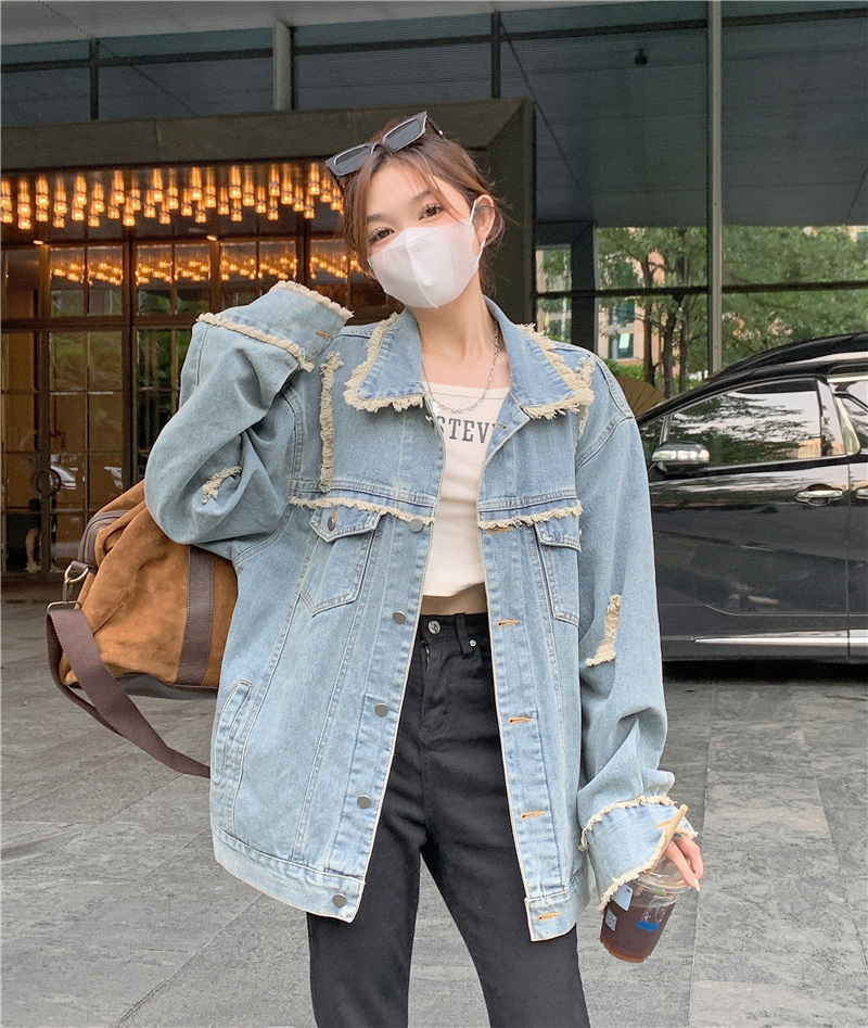 实拍实价 做旧炸街宽松休闲设计感流苏破洞牛仔外套