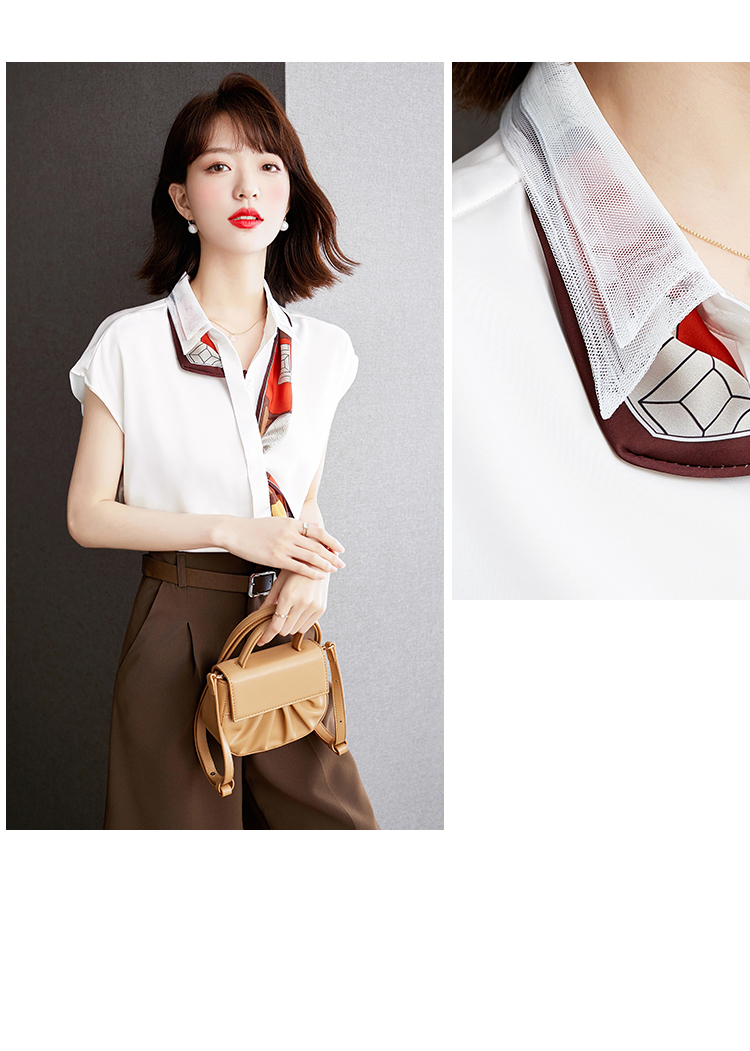 실제 사진 ◆ 구매 가능 ◆ 2023년 여름 신상 화이트 셔츠 레트로 시폰 디자인 니치 반팔 우아한 탑