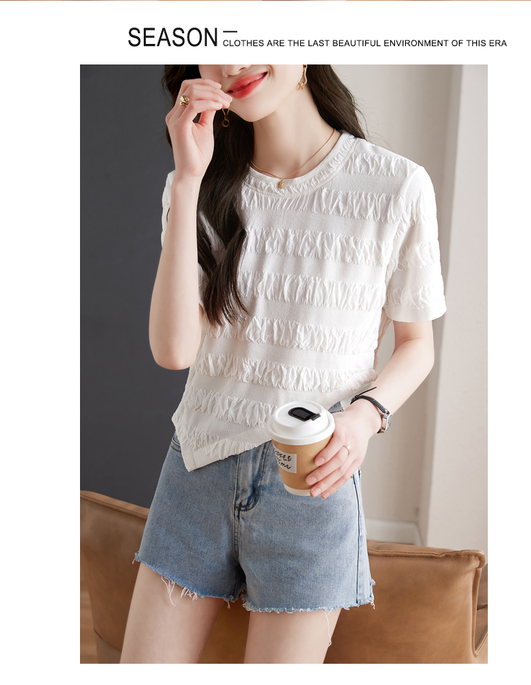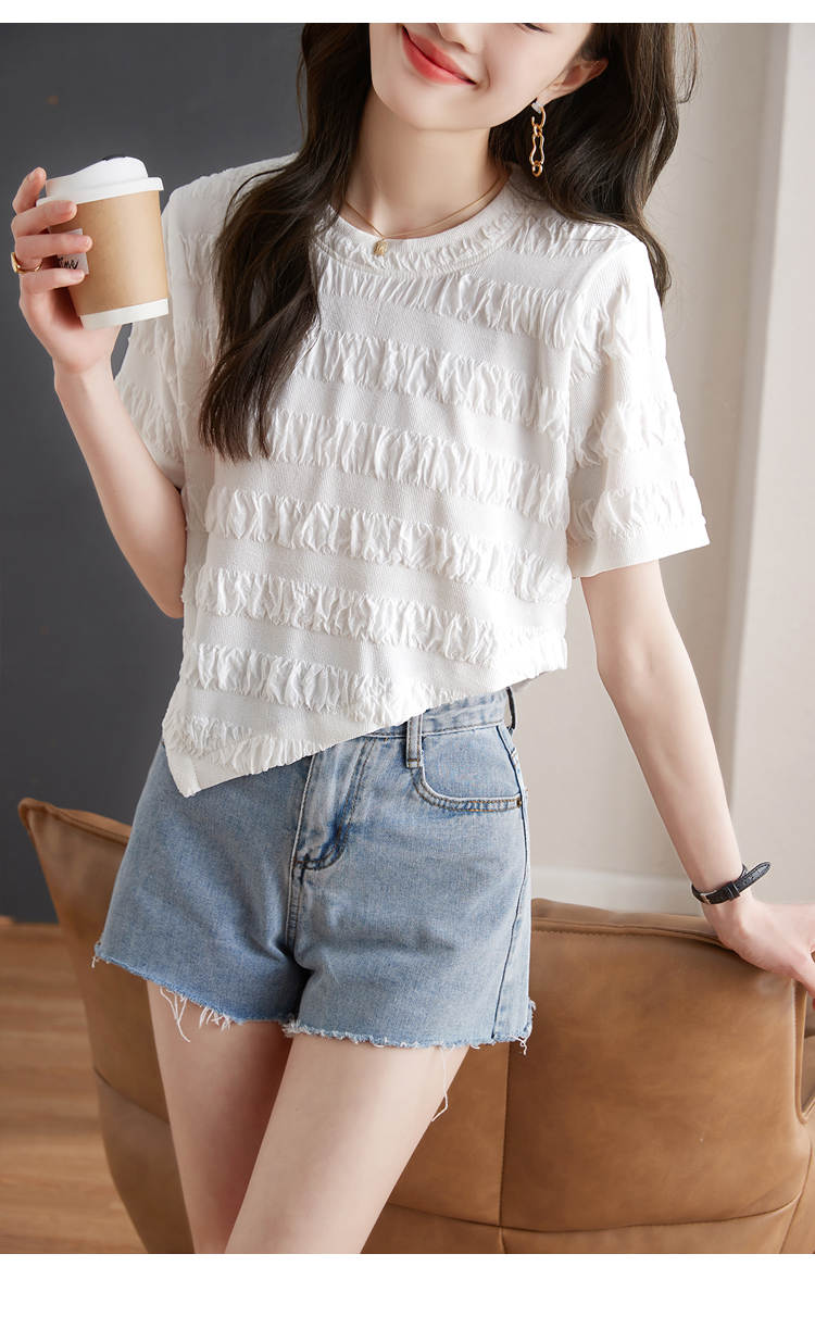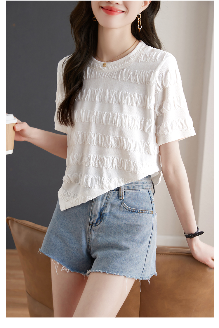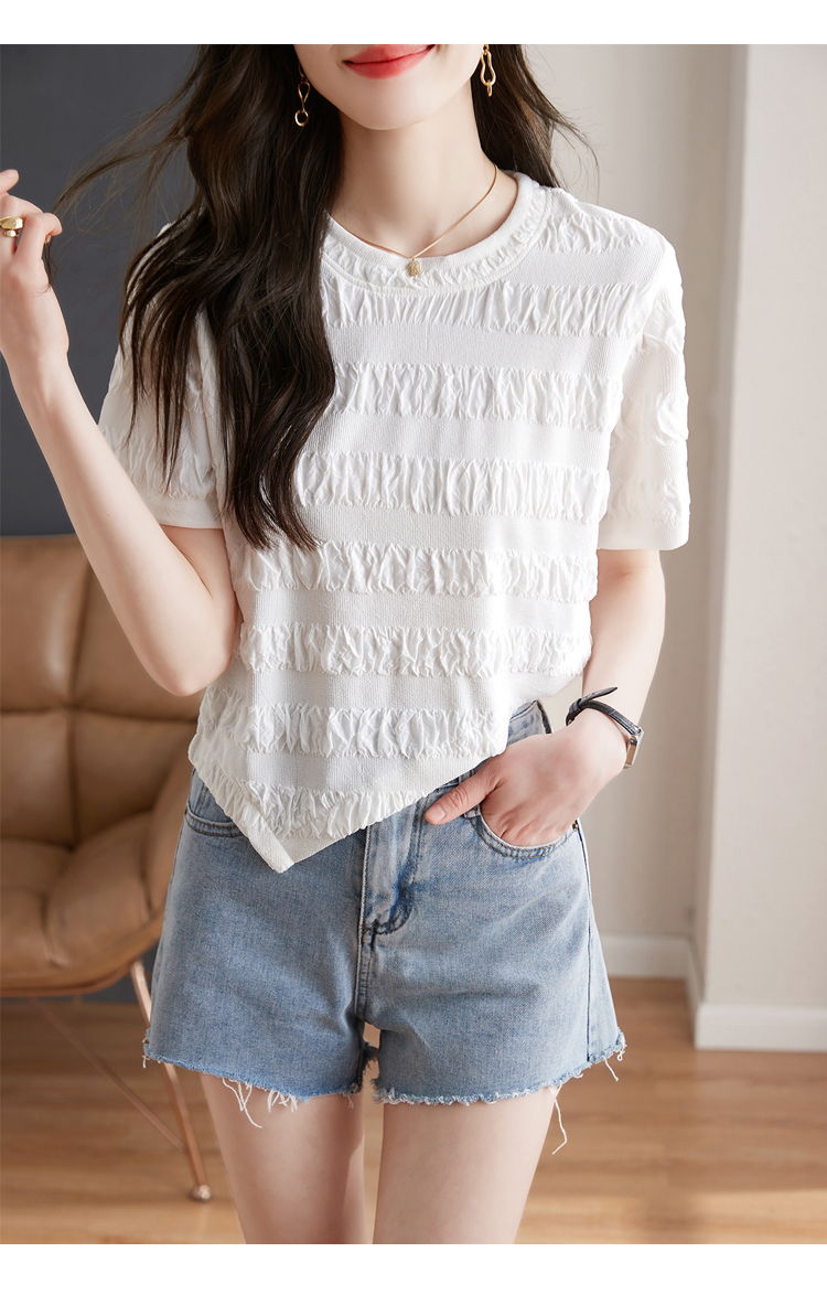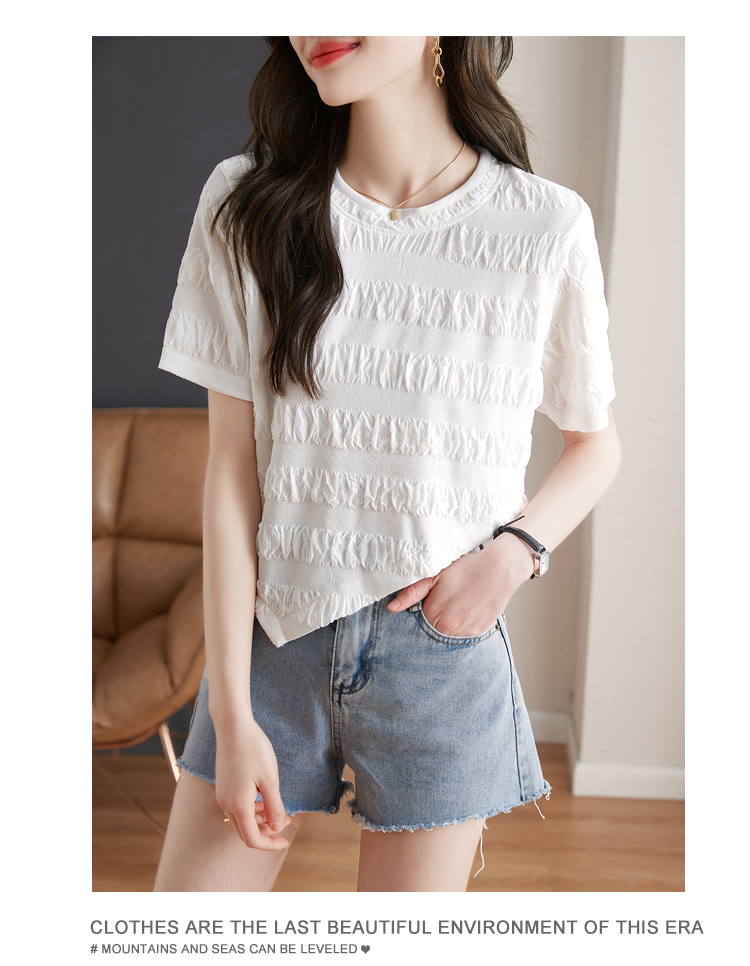 实拍◆◆2023不规则短袖t恤女2夏季新款设计感小众褶皱上衣