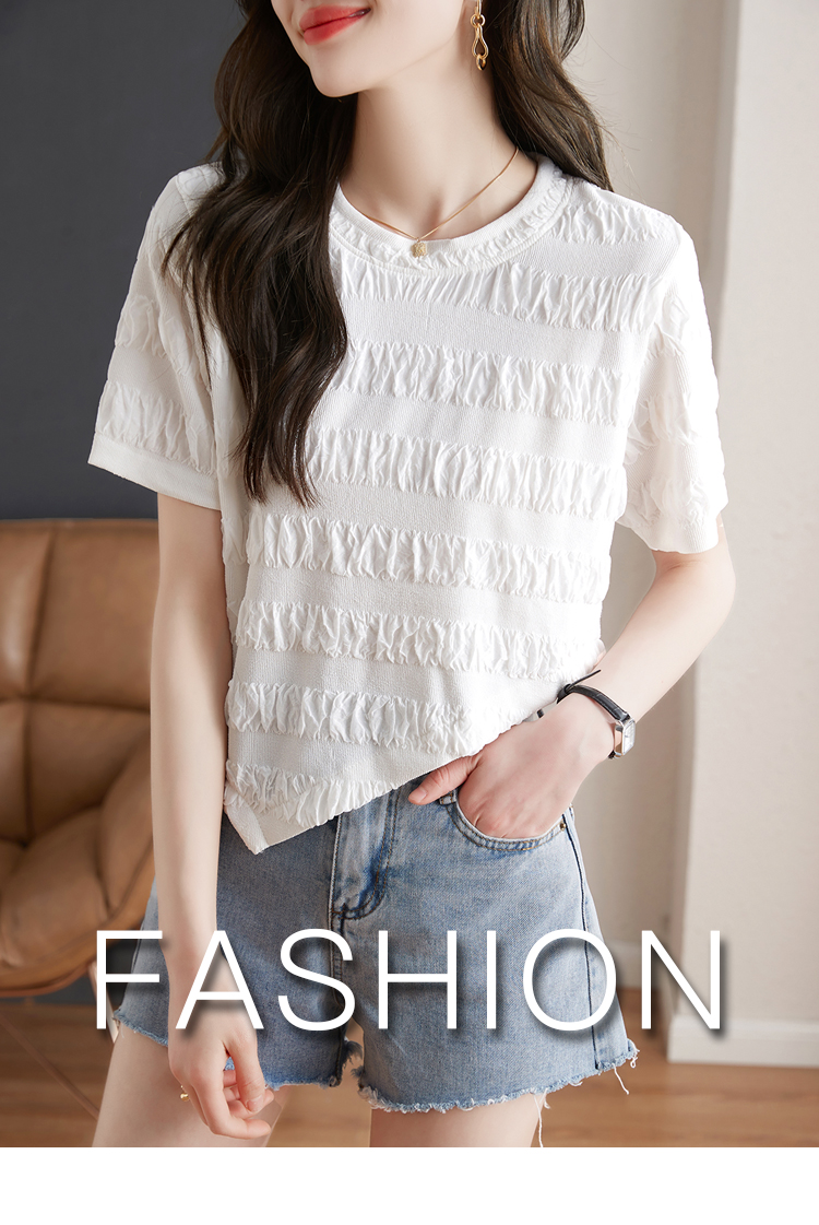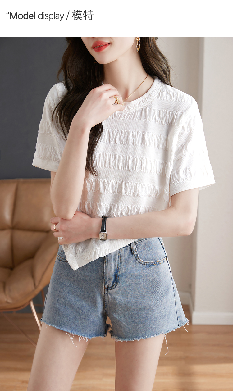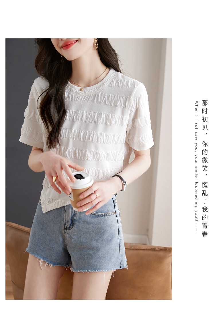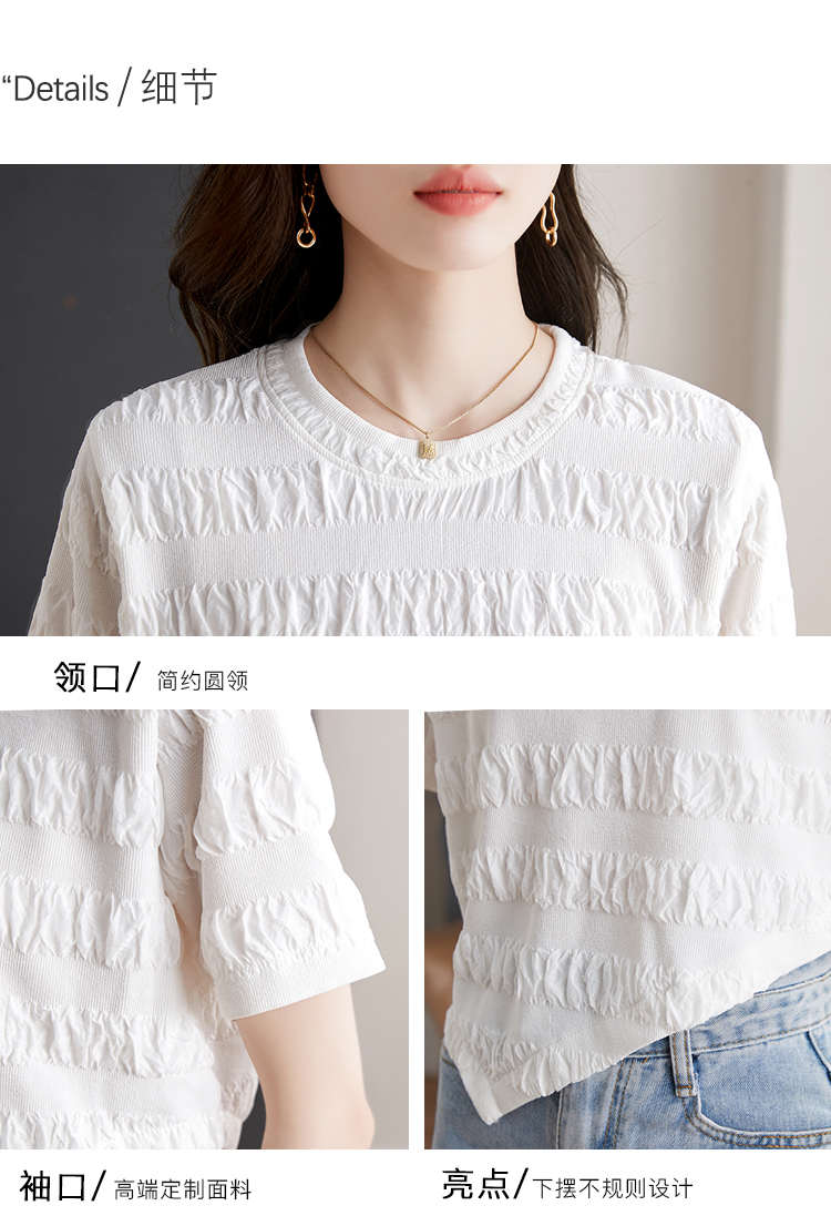 实拍◆◆2023不规则短袖t恤女2夏季新款设计感小众褶皱上衣
