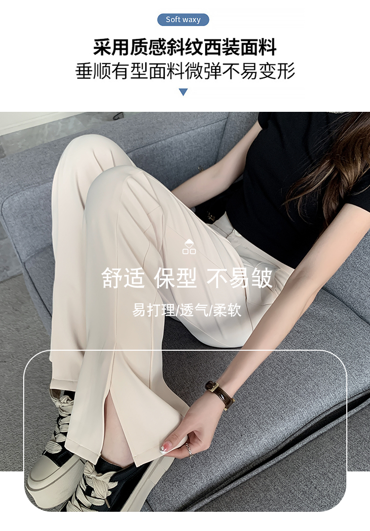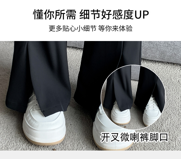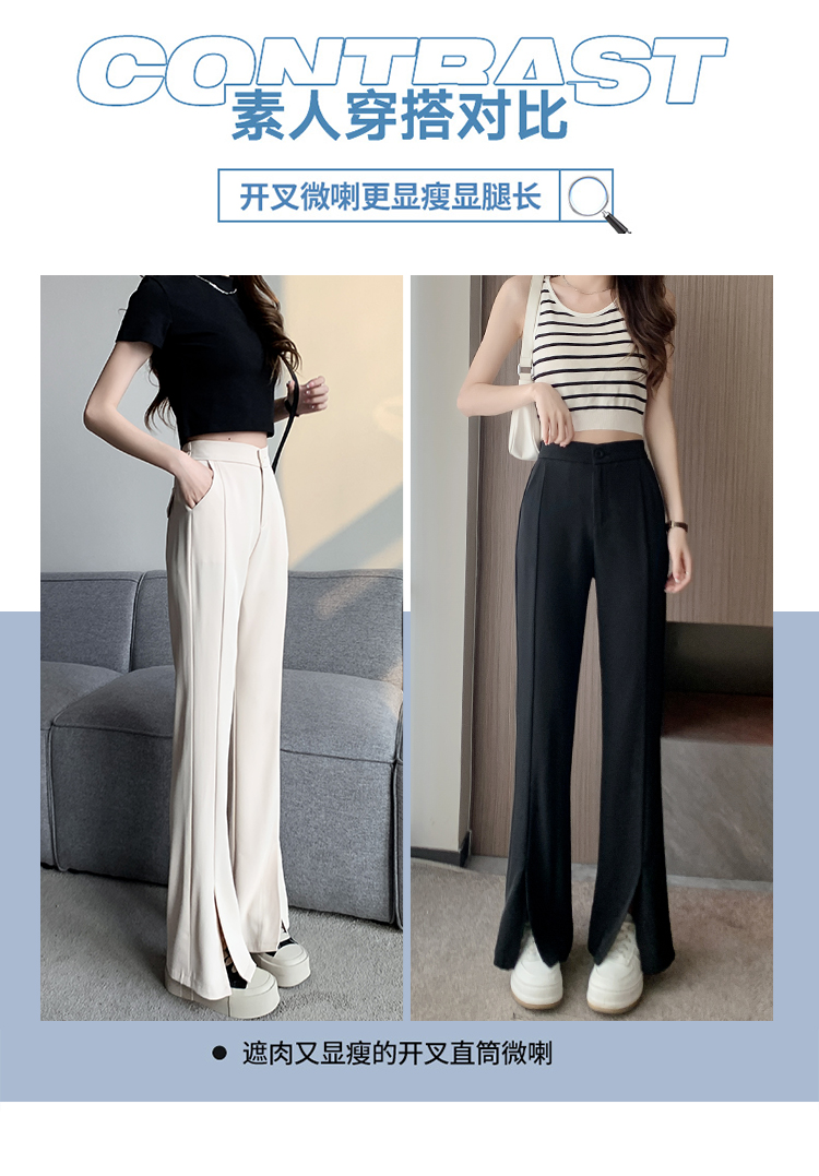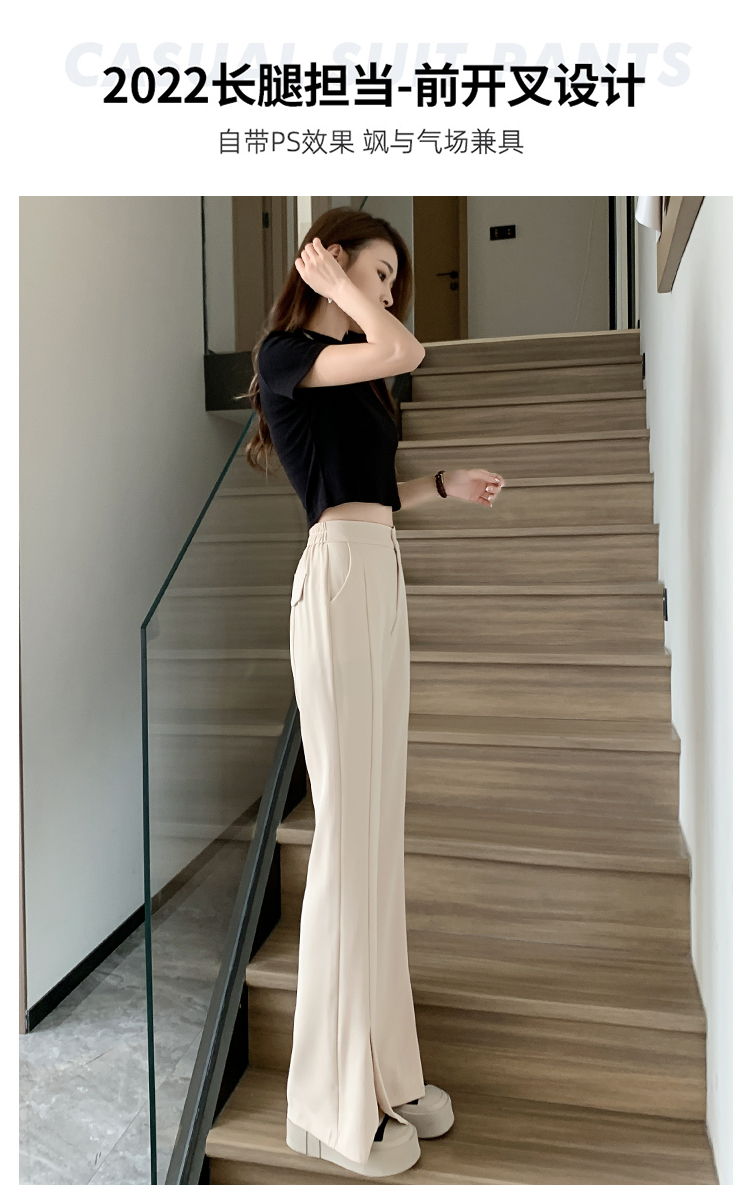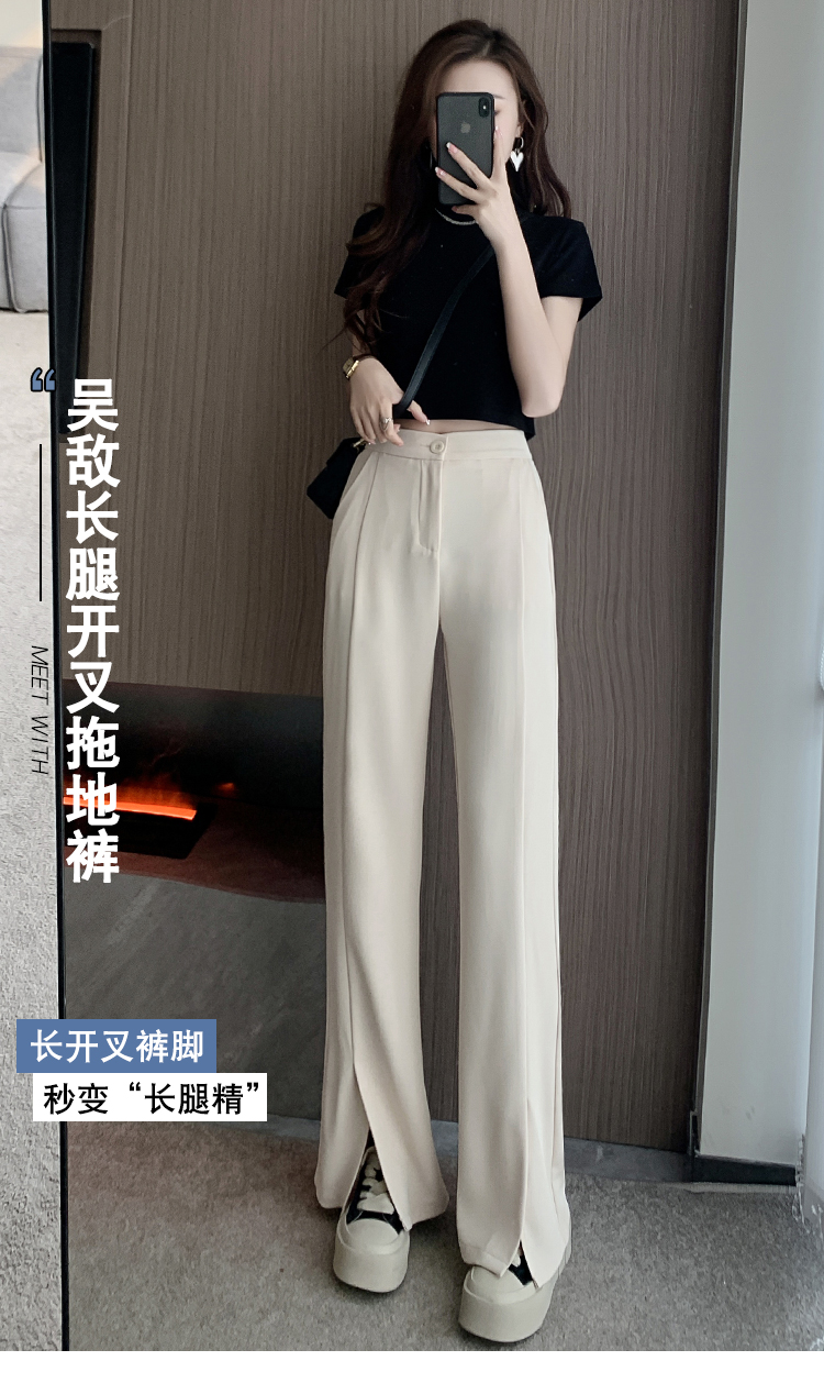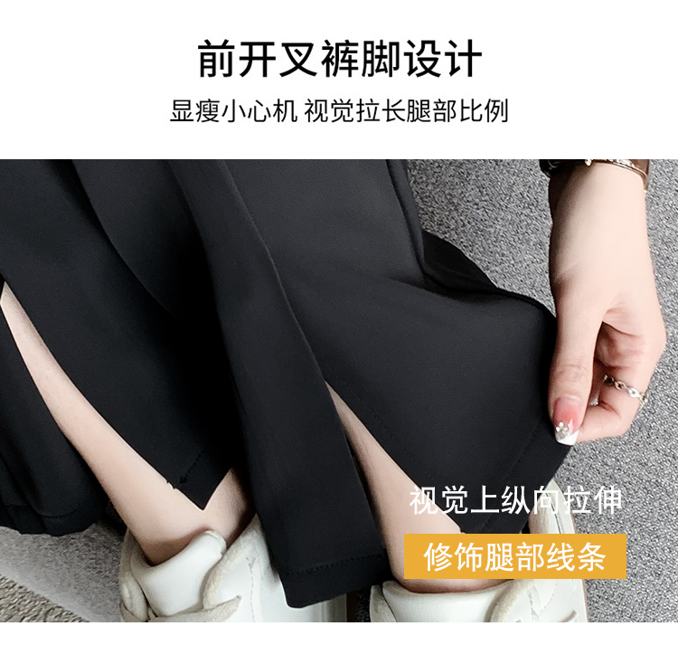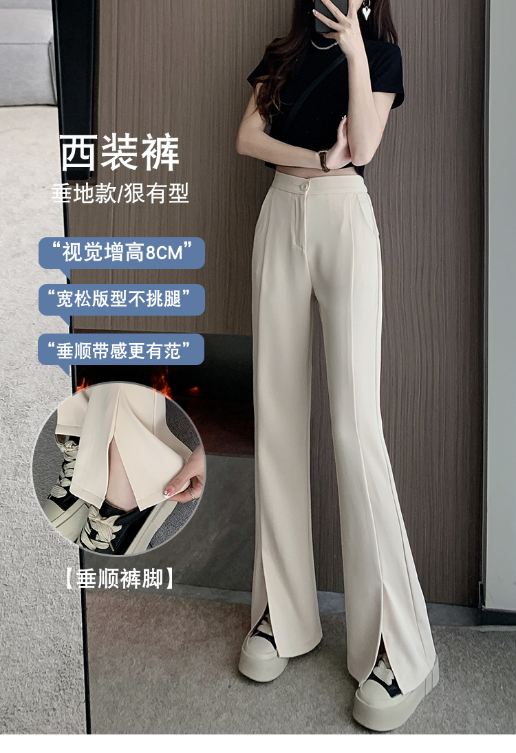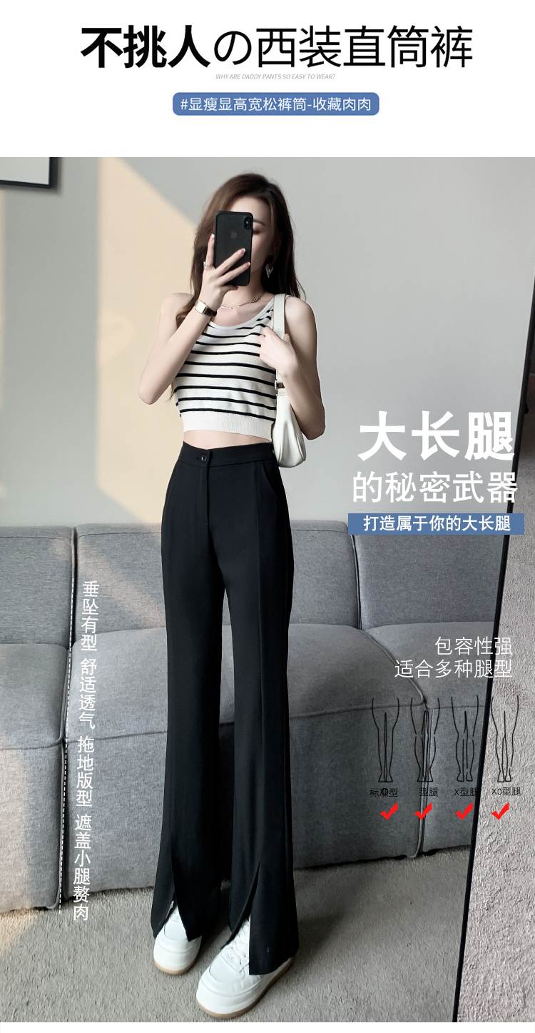实拍2023开叉阔腿裤女春夏直筒高腰垂感九分小个子西装喇叭长裤子