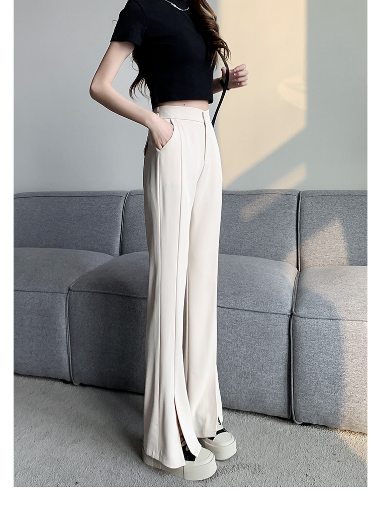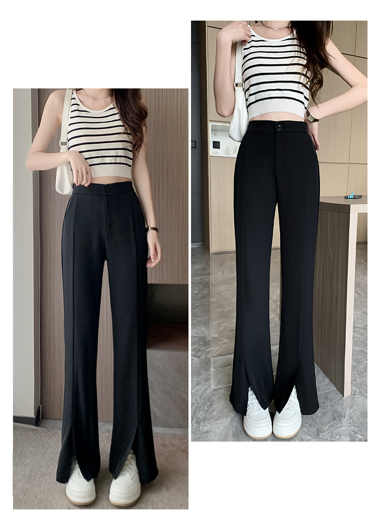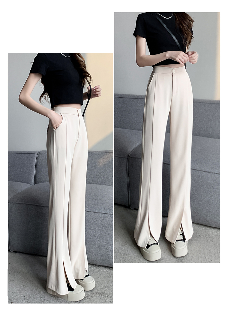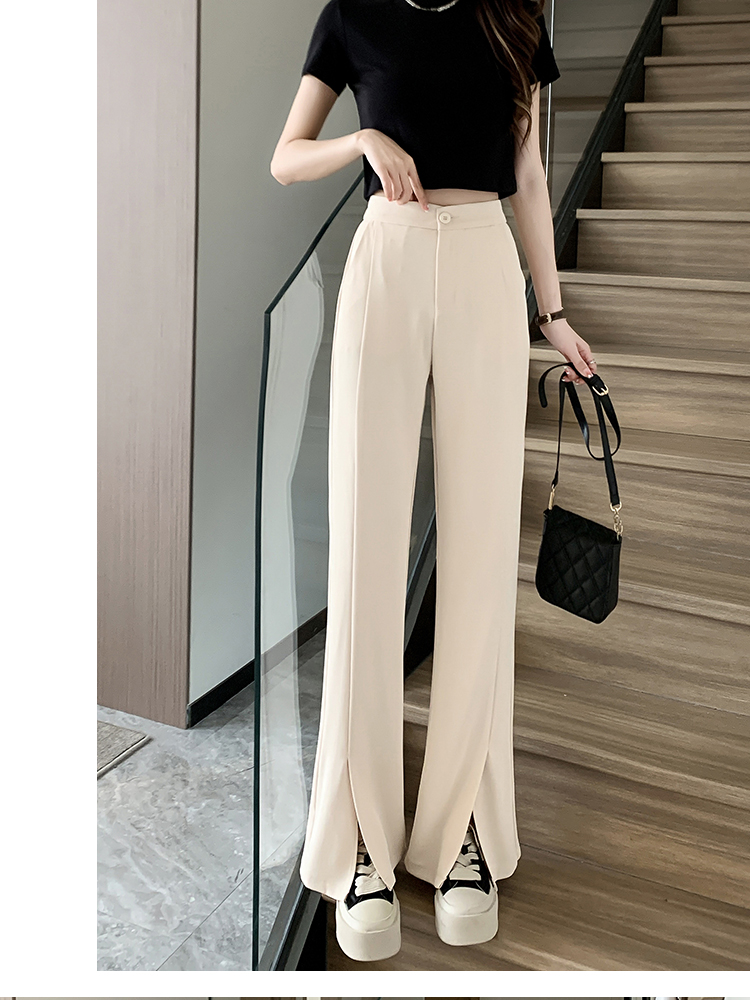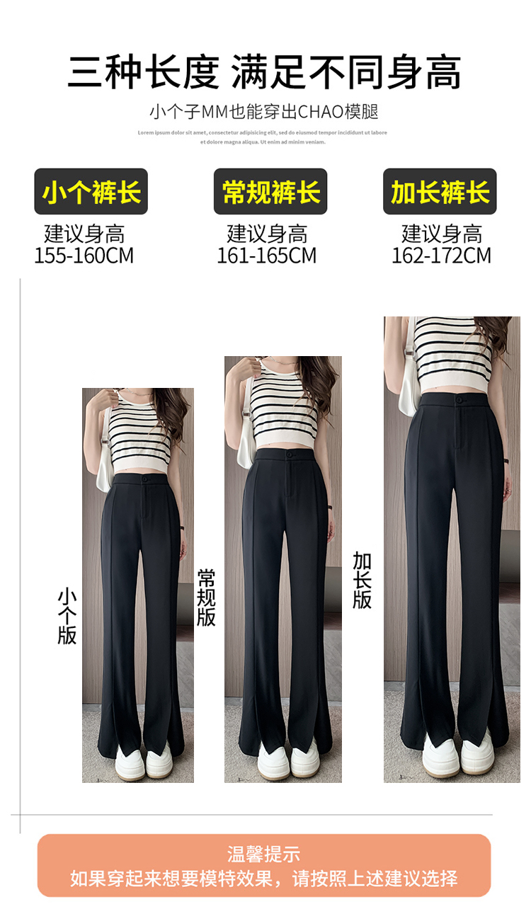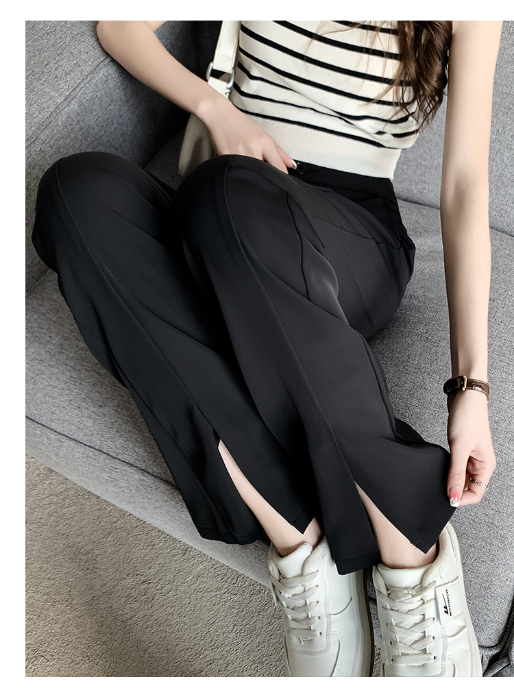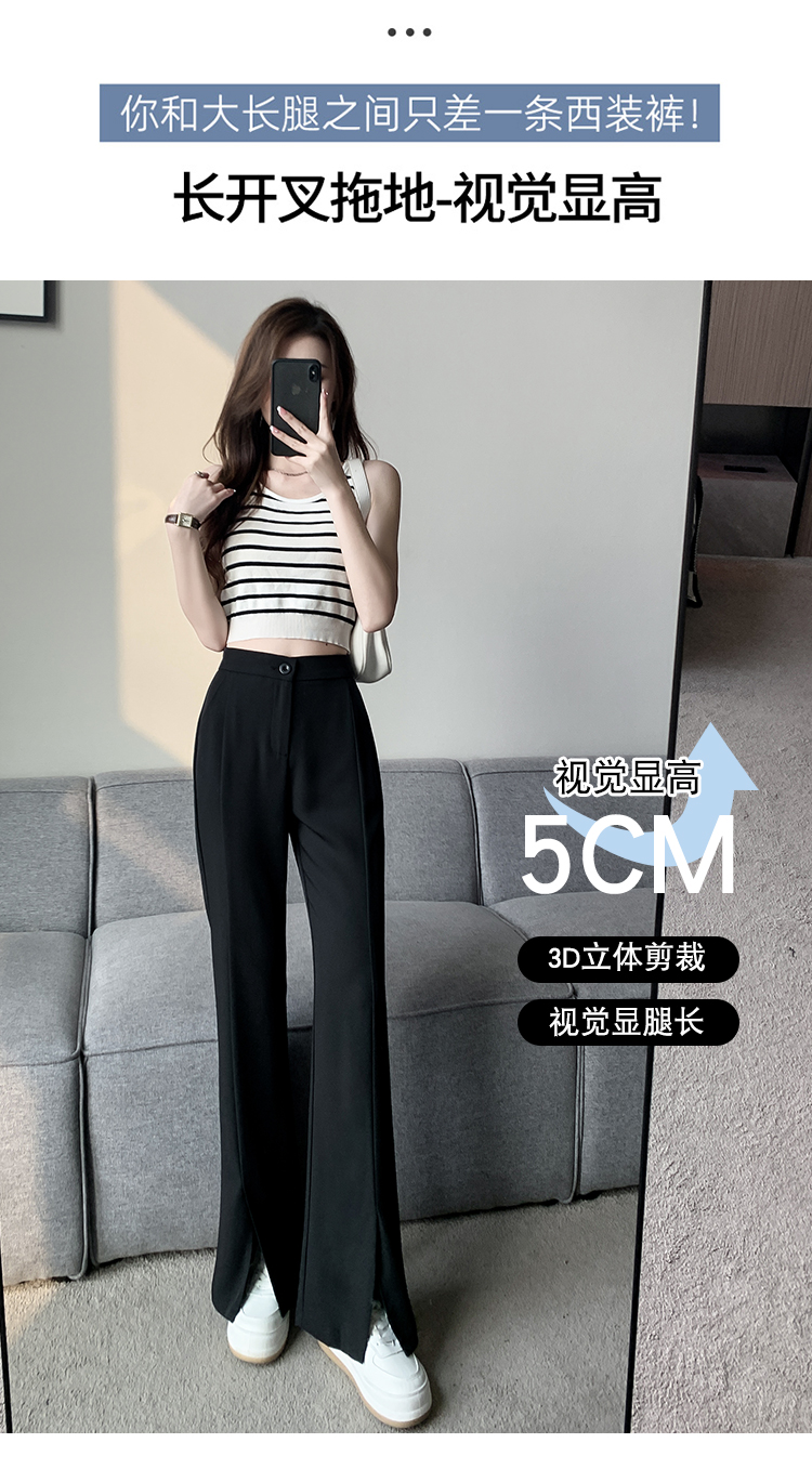 实拍2023开叉阔腿裤女春夏直筒高腰垂感九分小个子西装喇叭长裤子