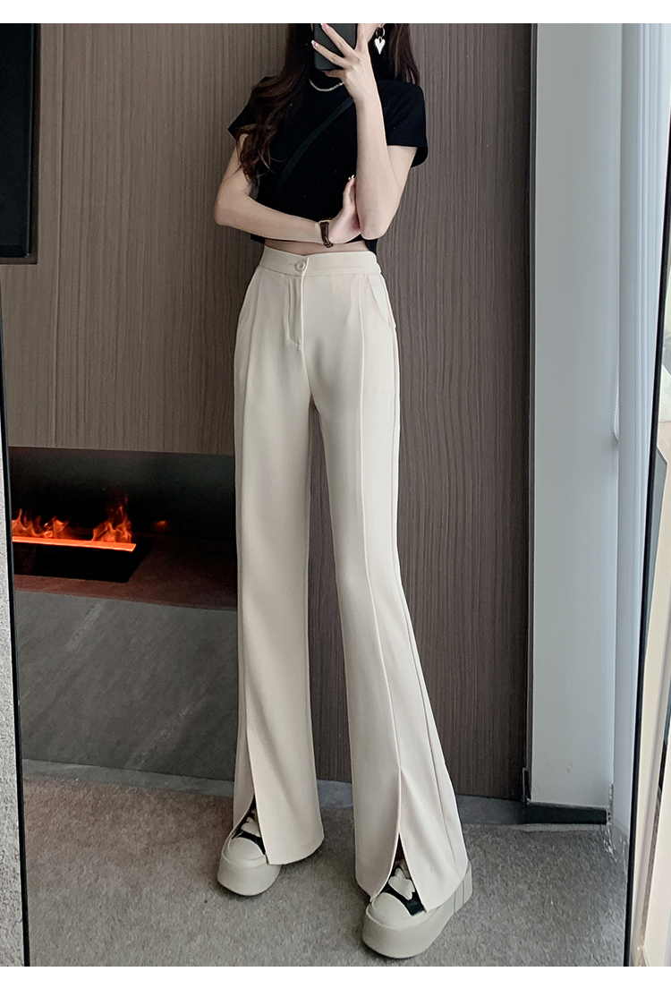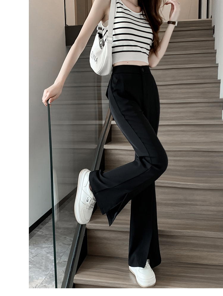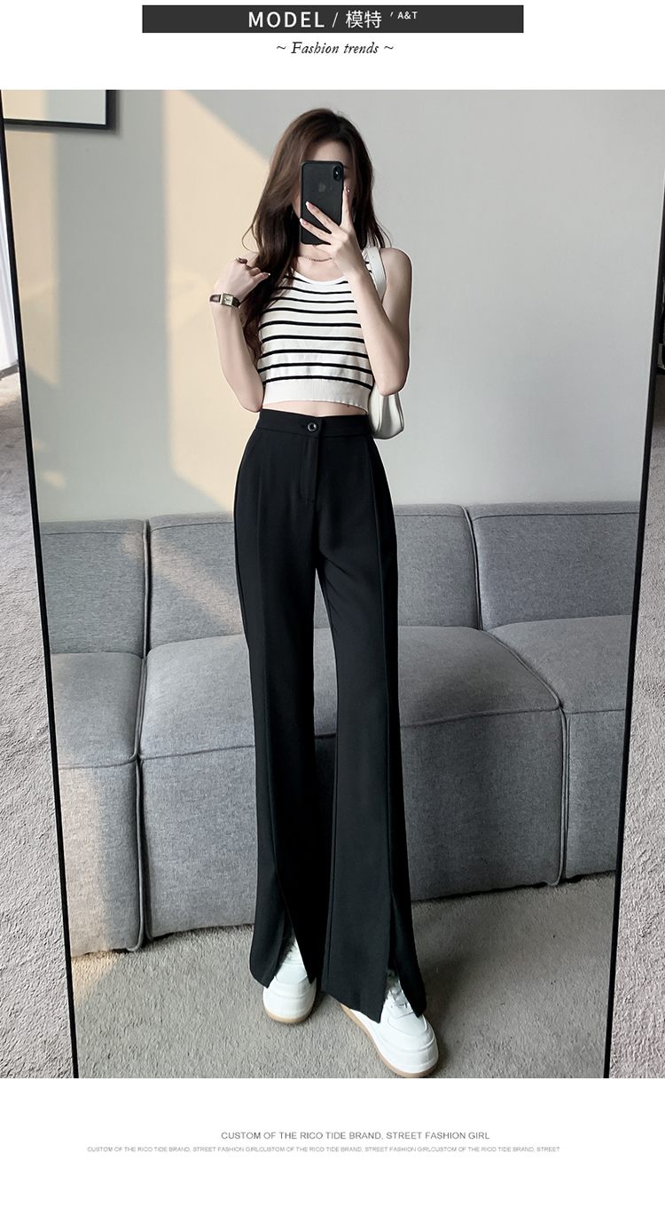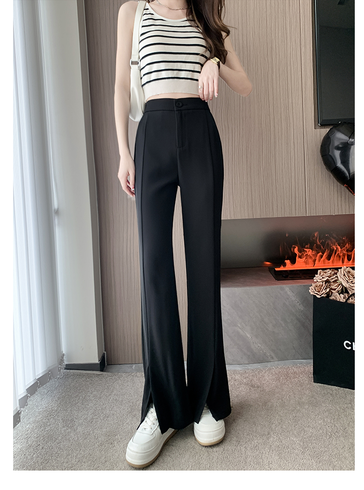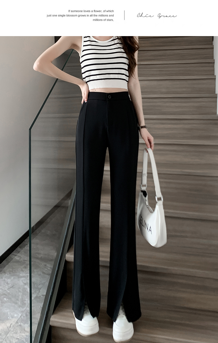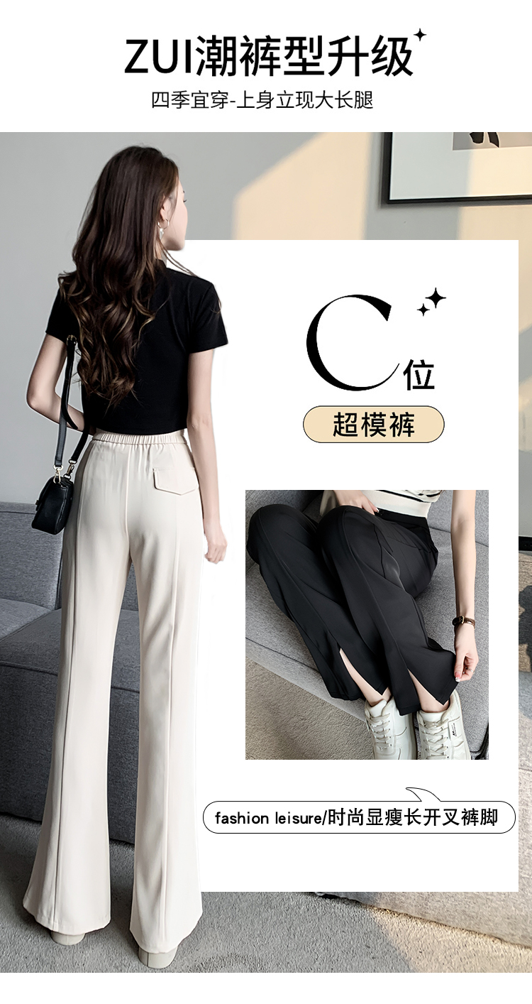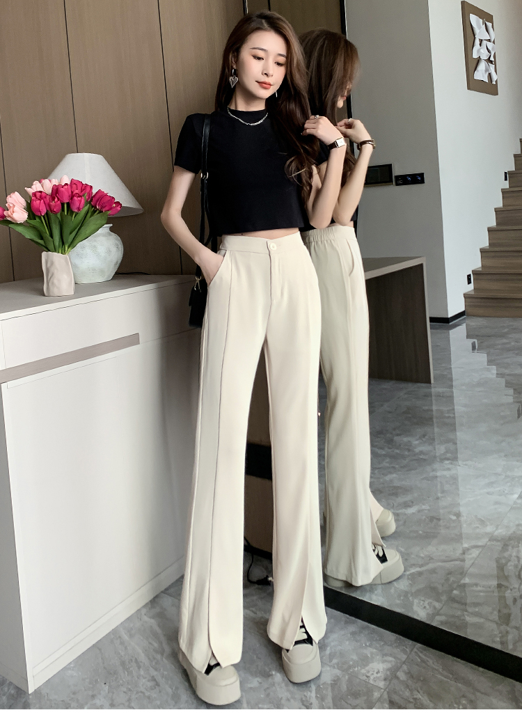 实拍2023开叉阔腿裤女春夏直筒高腰垂感九分小个子西装喇叭长裤子