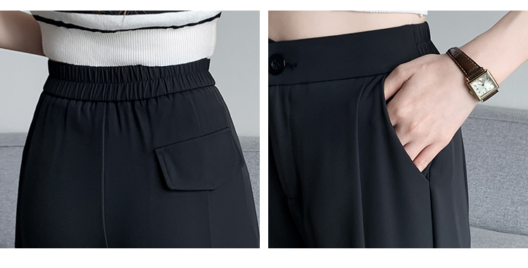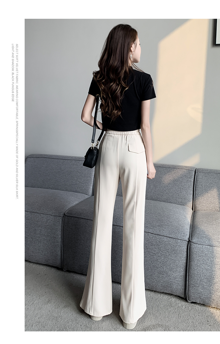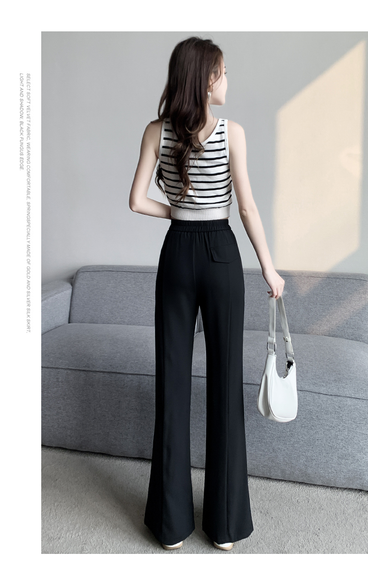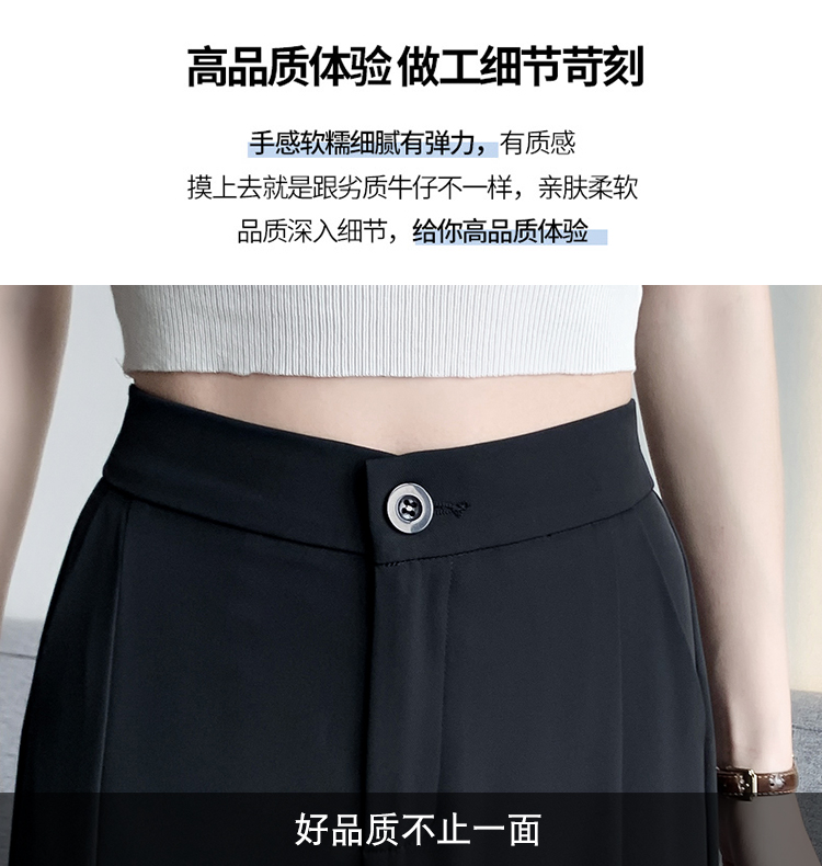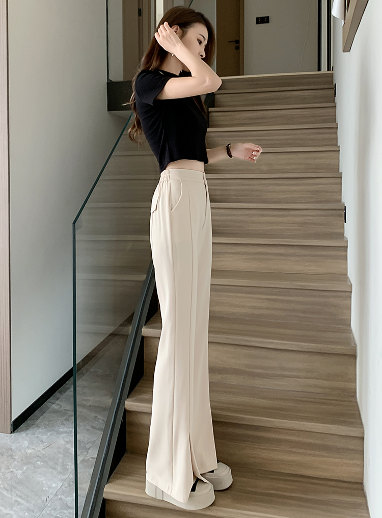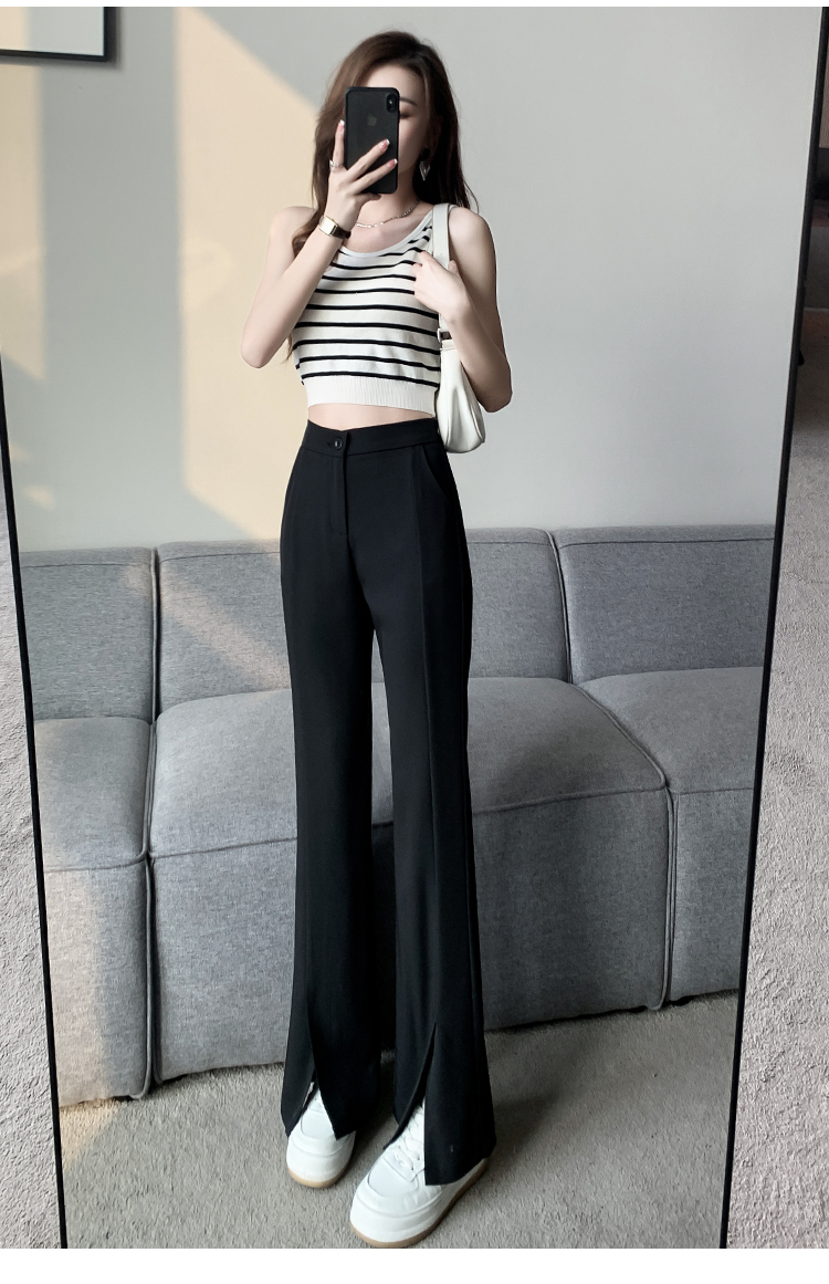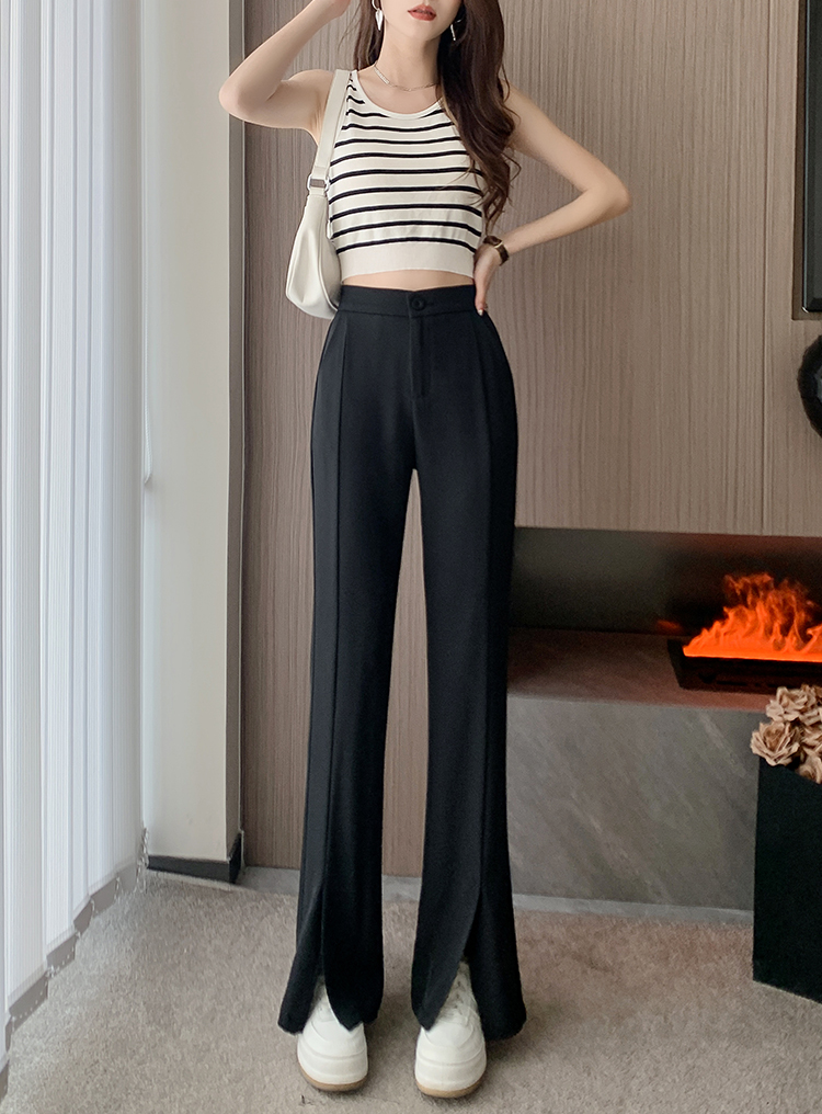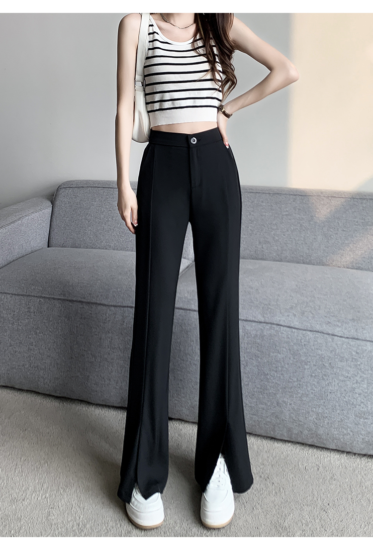 实拍2023开叉阔腿裤女春夏直筒高腰垂感九分小个子西装喇叭长裤子
