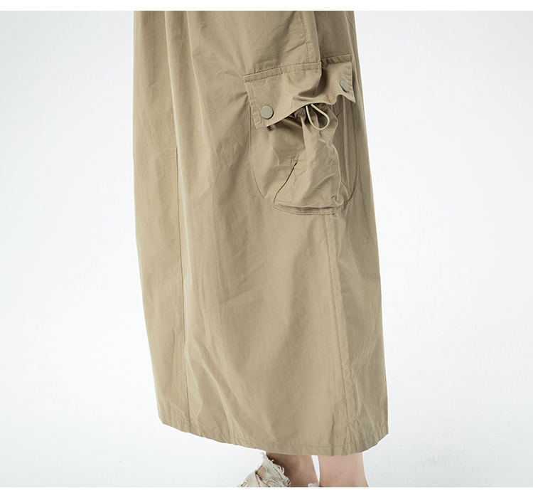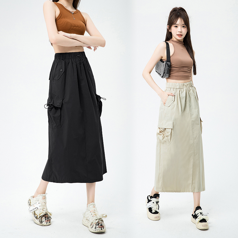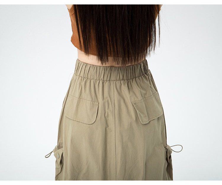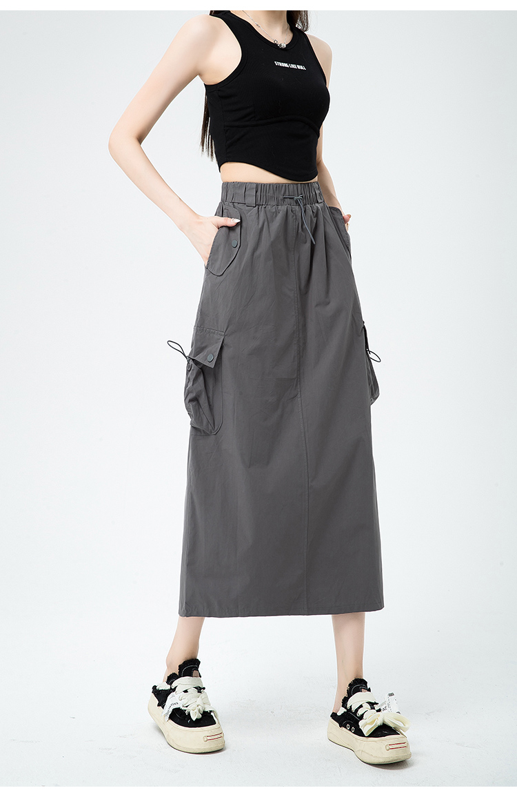 2023년 신상 속건성 플리츠 워크웨어 스커트, 뒷트임이 있는 루즈핏 캐주얼 스트레이트 스커트의 실제 사진입니다.