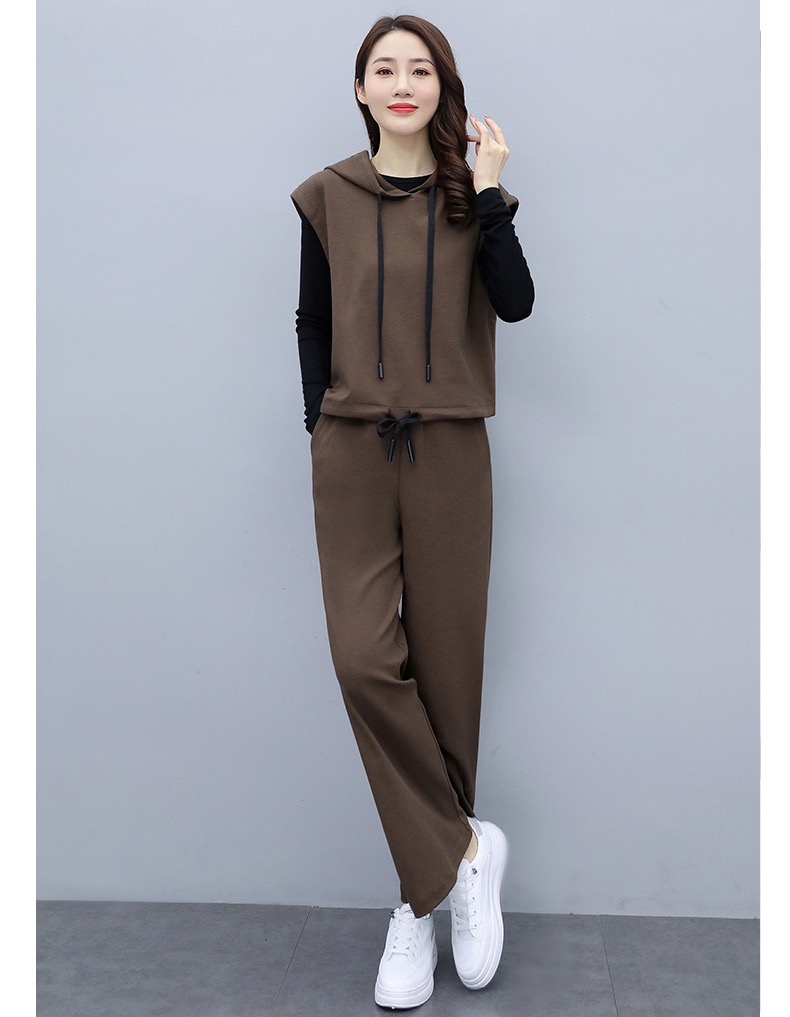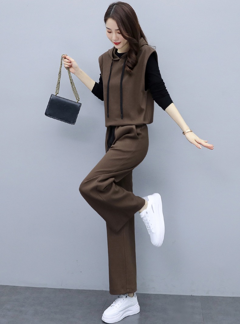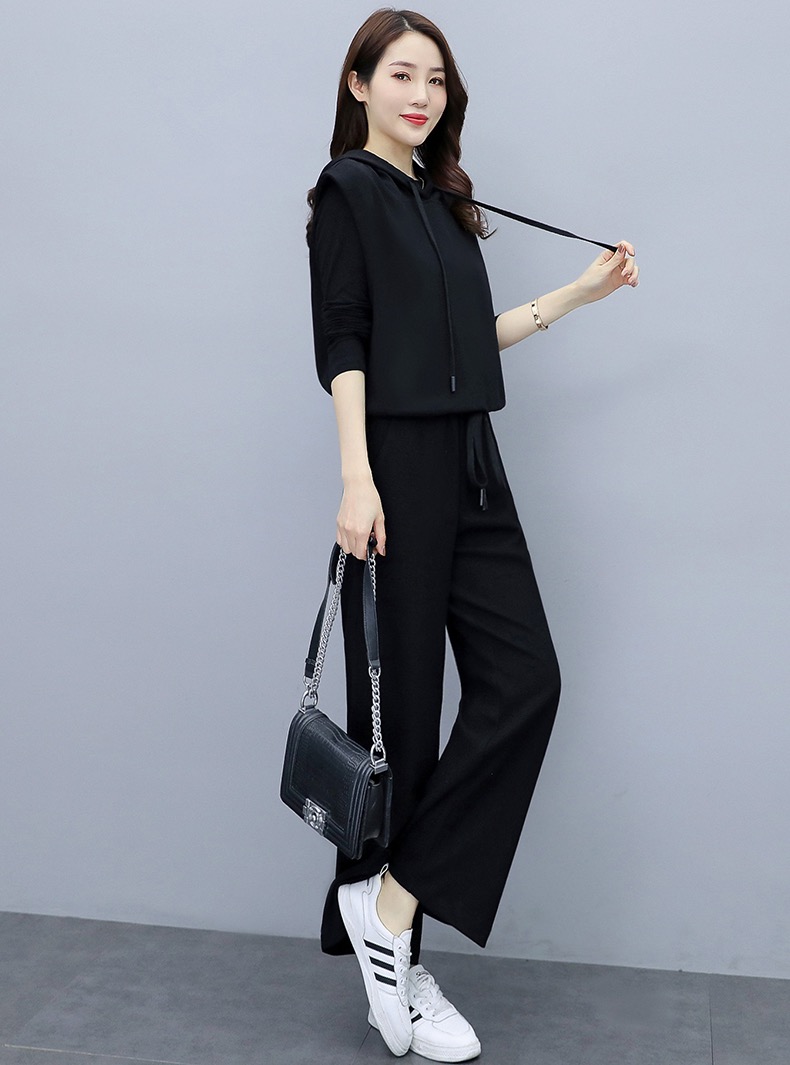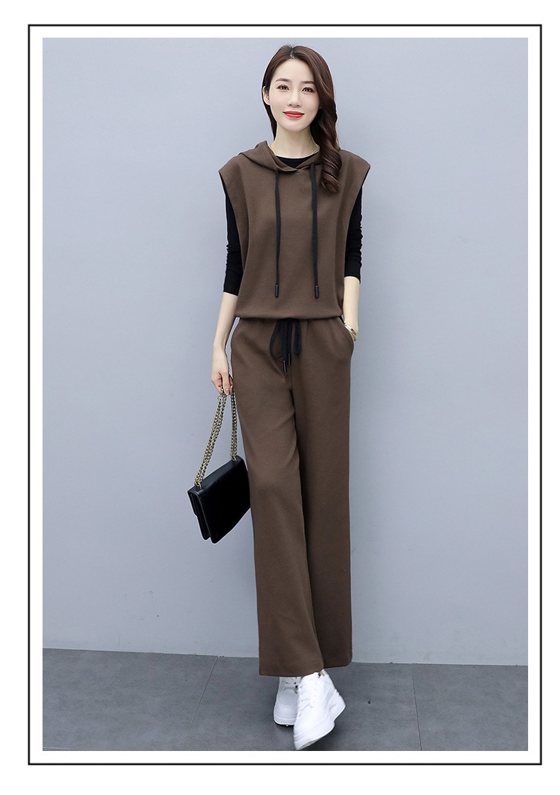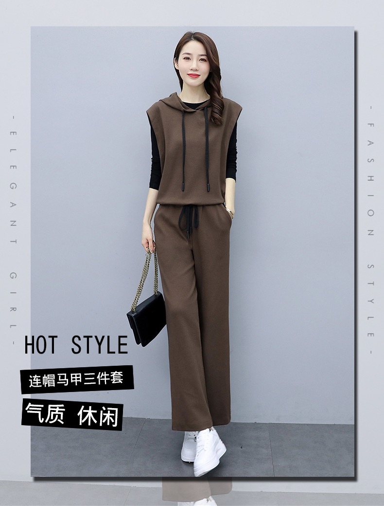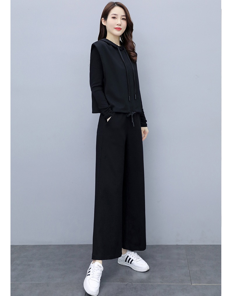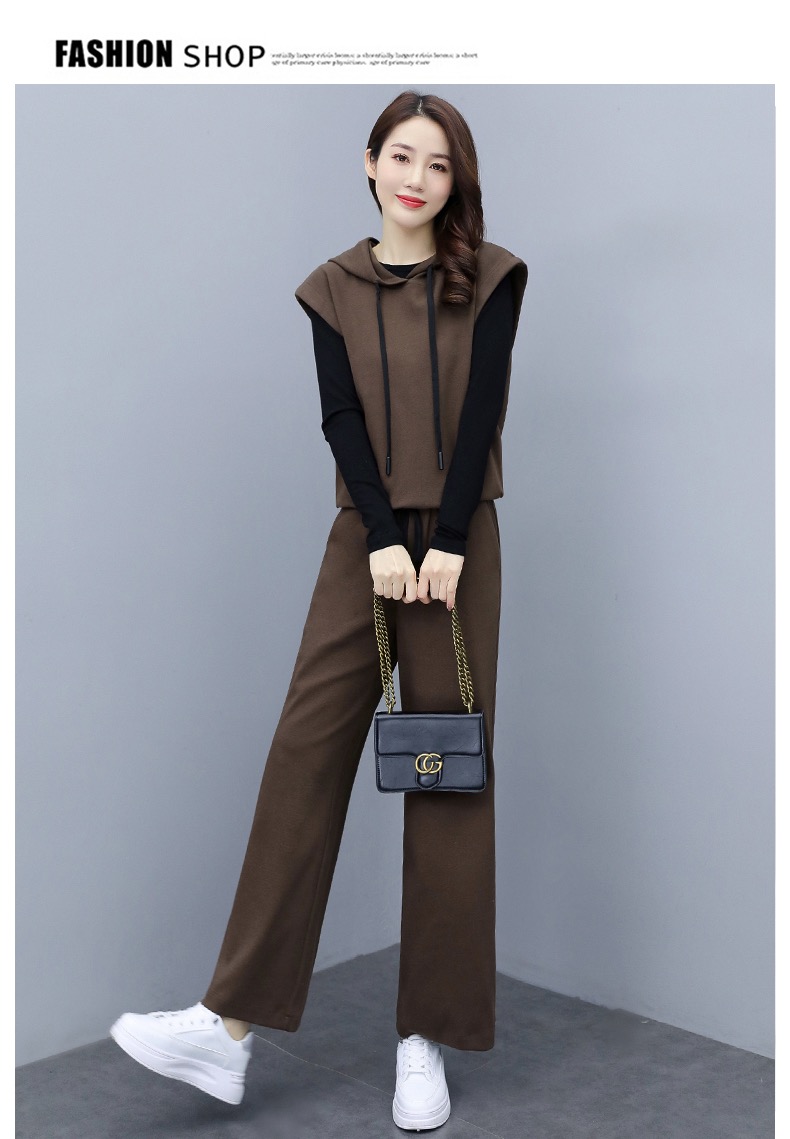 秋装减龄洋气时尚套装2023秋季新款女装遮肉显瘦休闲阔腿裤两件套