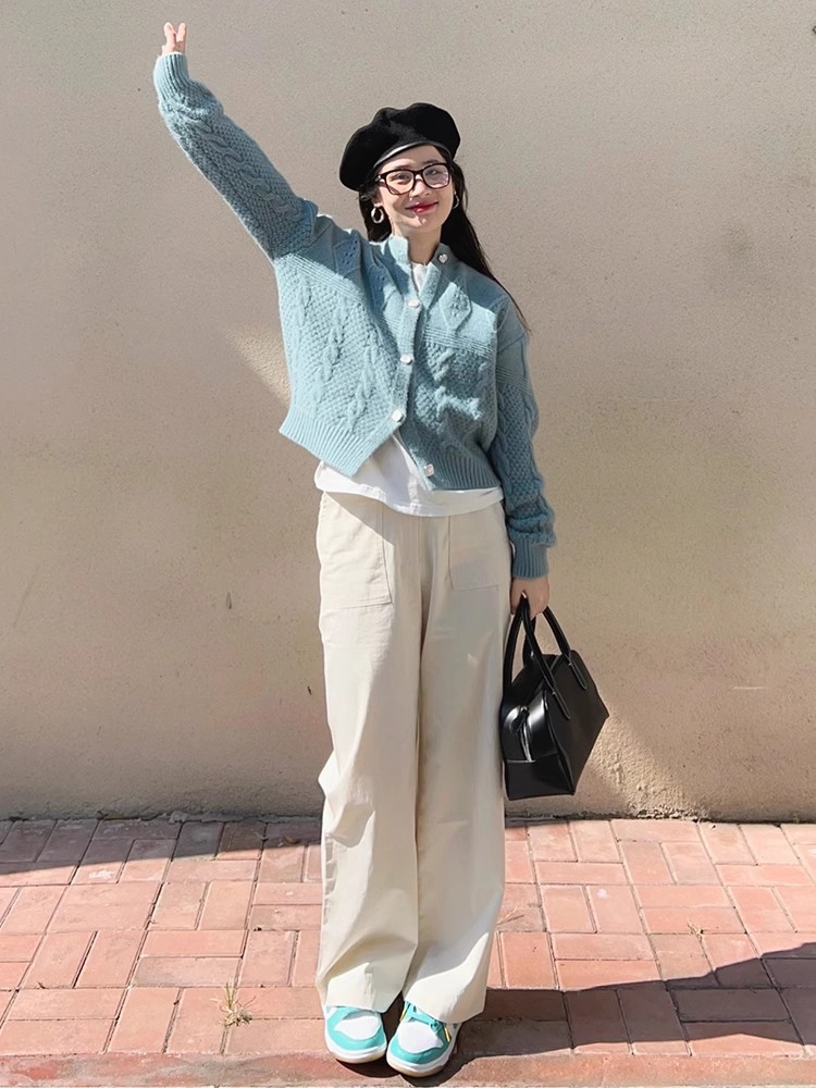 TYST 블루 컬러의 짧은 니트 가디건 스웨터, 가을 스타일, 개성 있는 디자인, 우아하고 세련된, 활용도 높은 상의