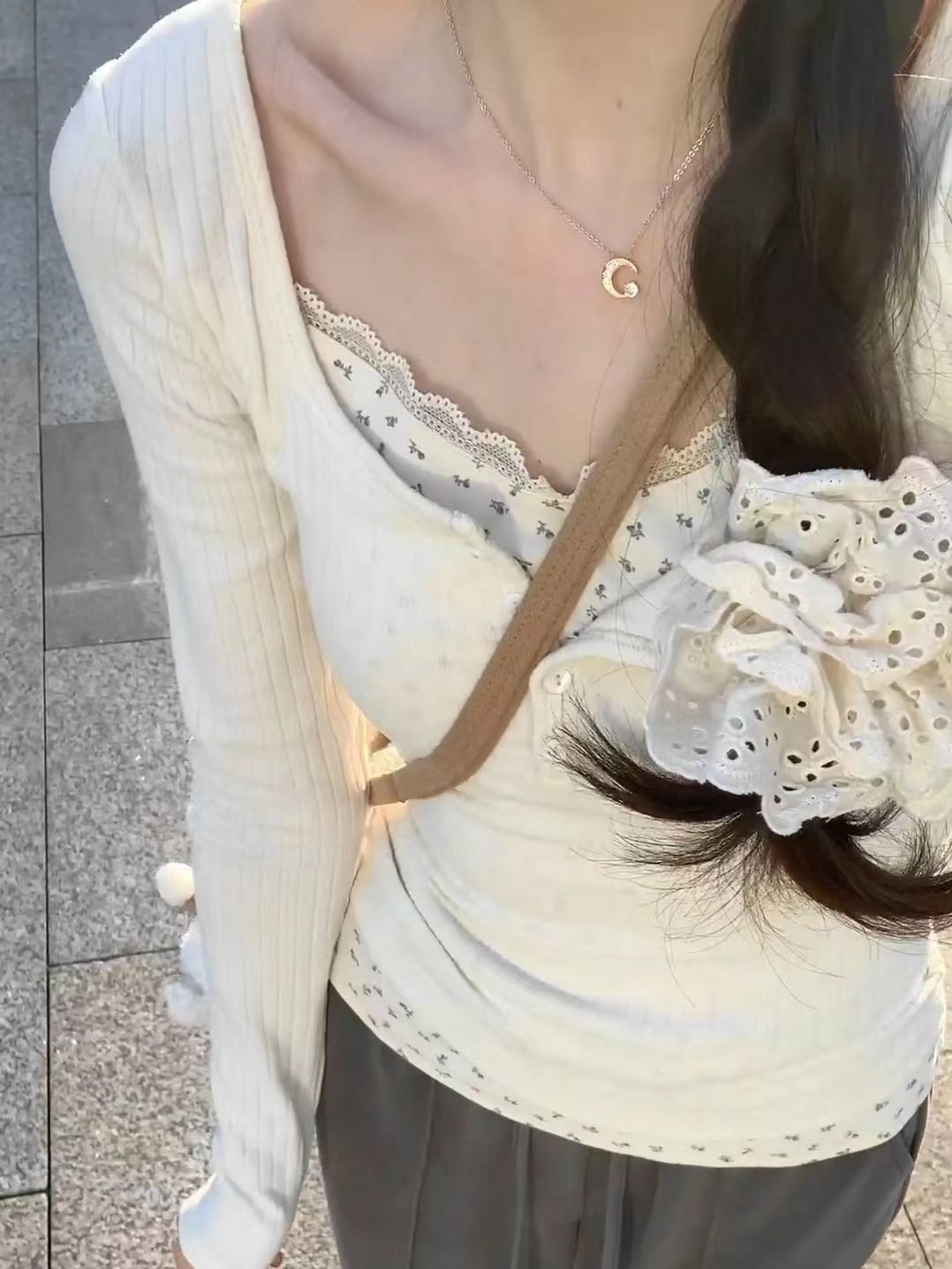 纯欲bm风蕾丝假两件打底衫女春秋季法式高级感舒适内搭甜辣妹上衣