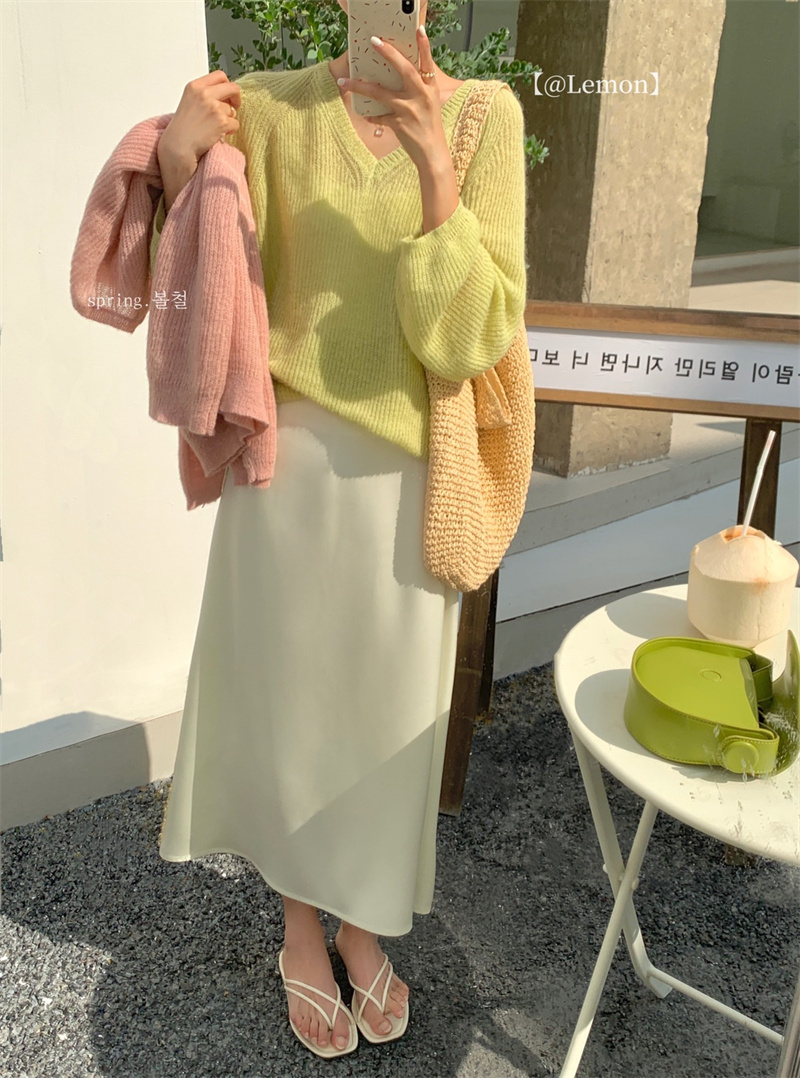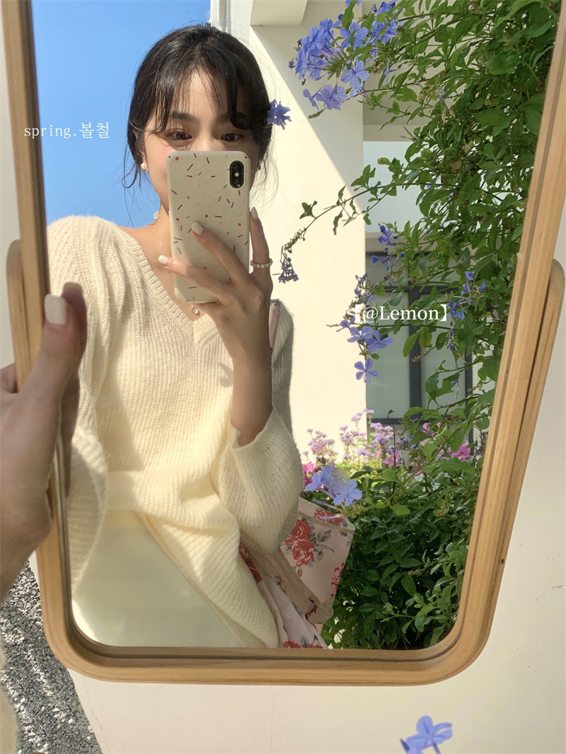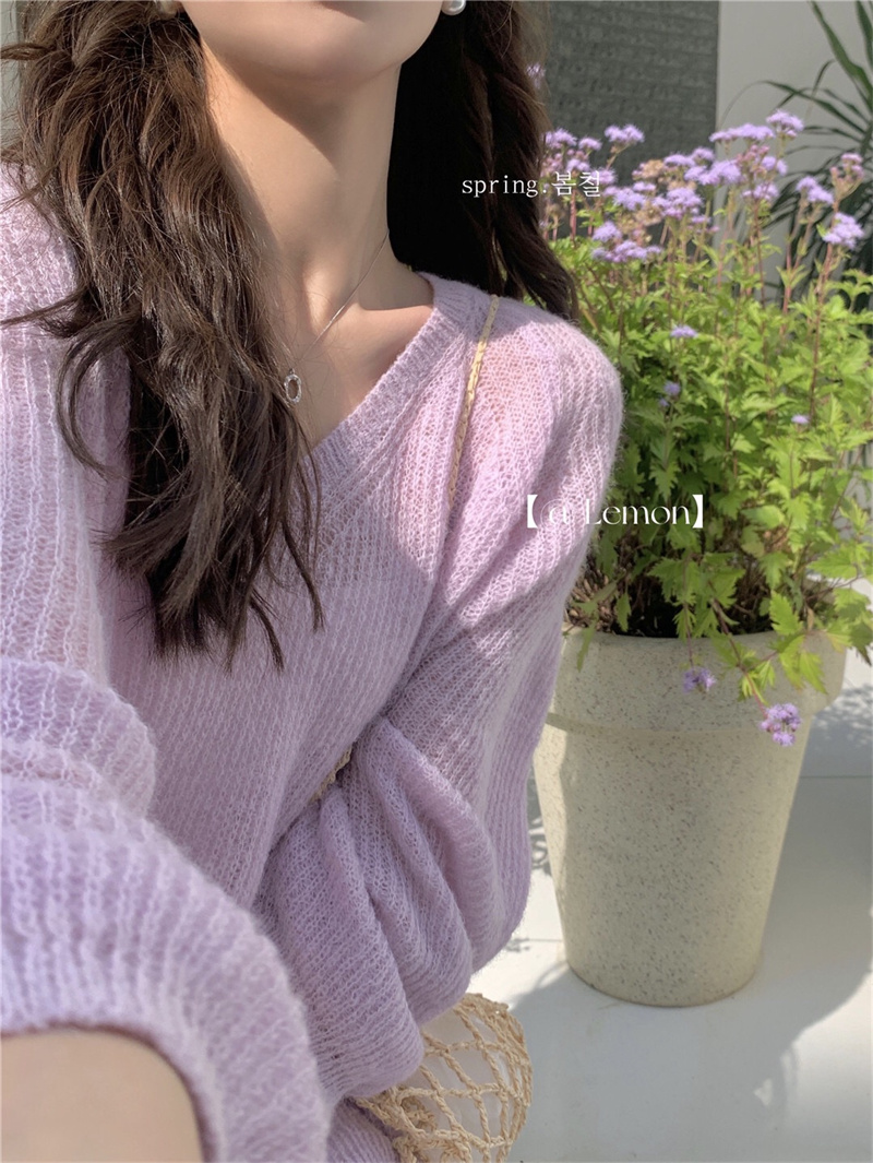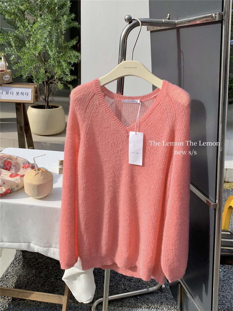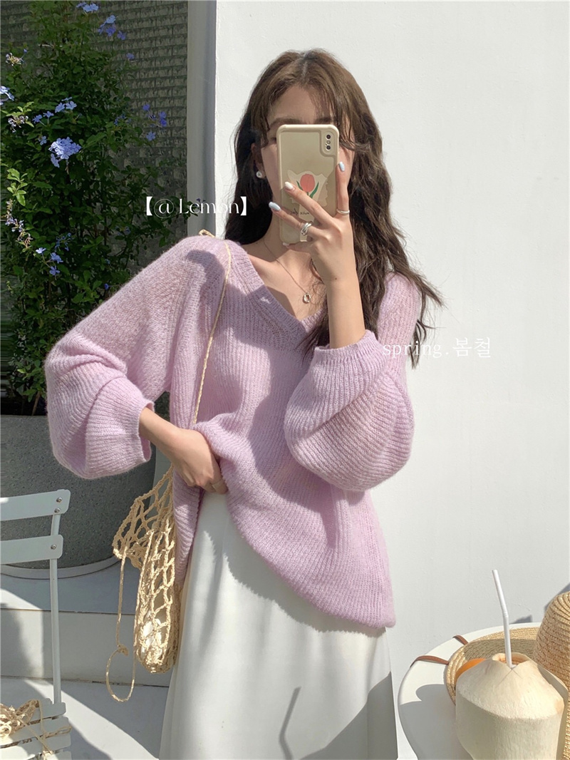 여성용 한국 스타일의 루즈하고 편안한 브이넥 스웨터, 봄철 루즈핏 상의