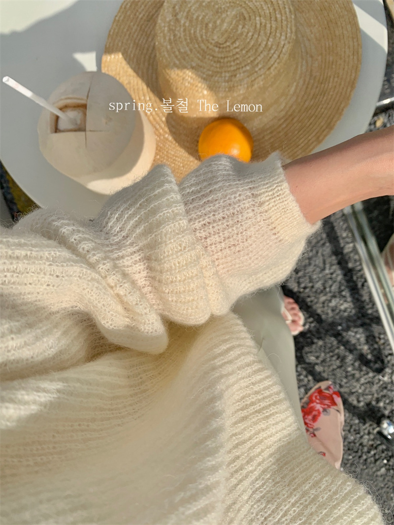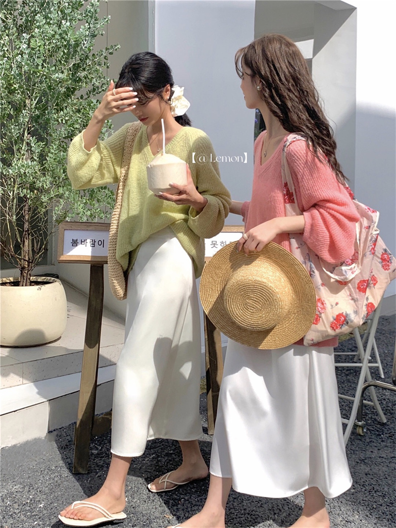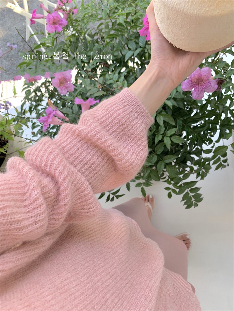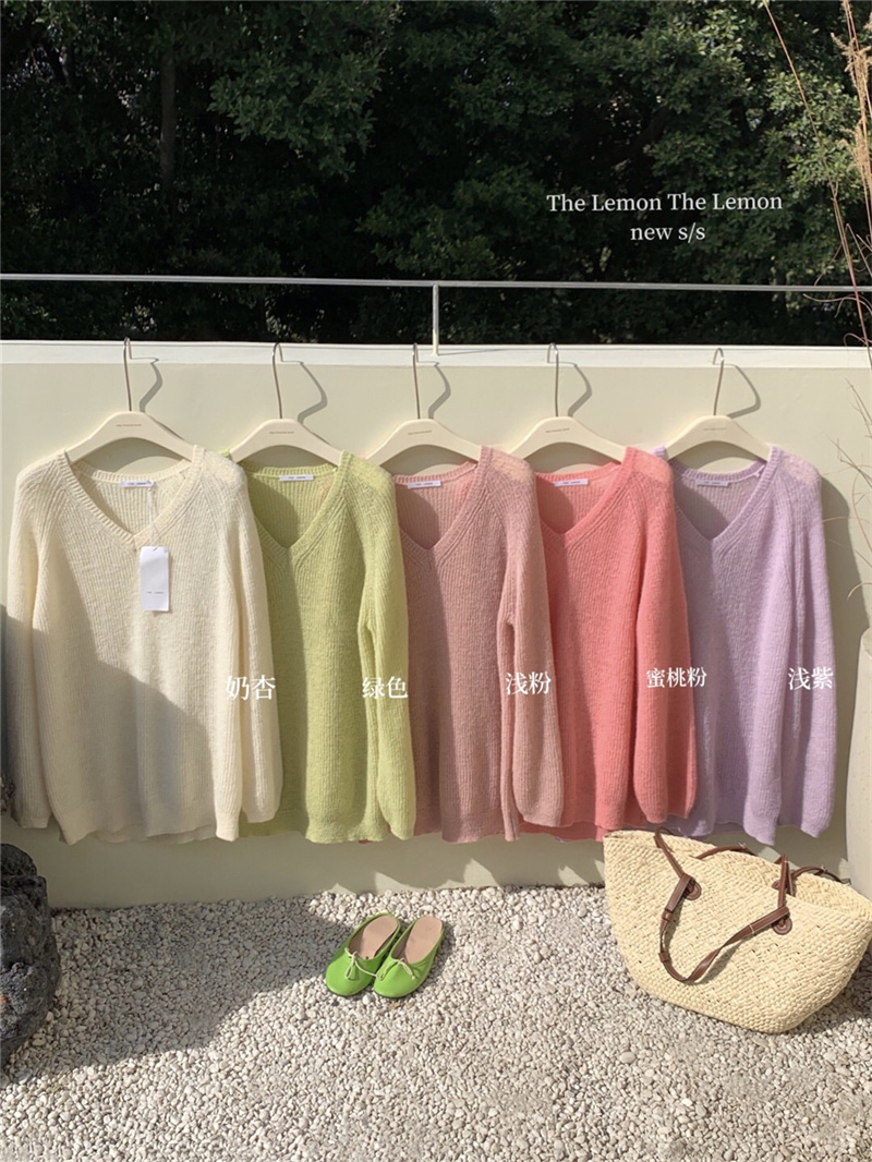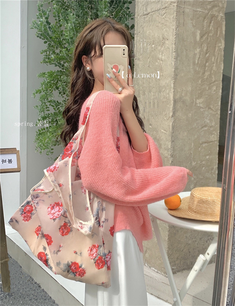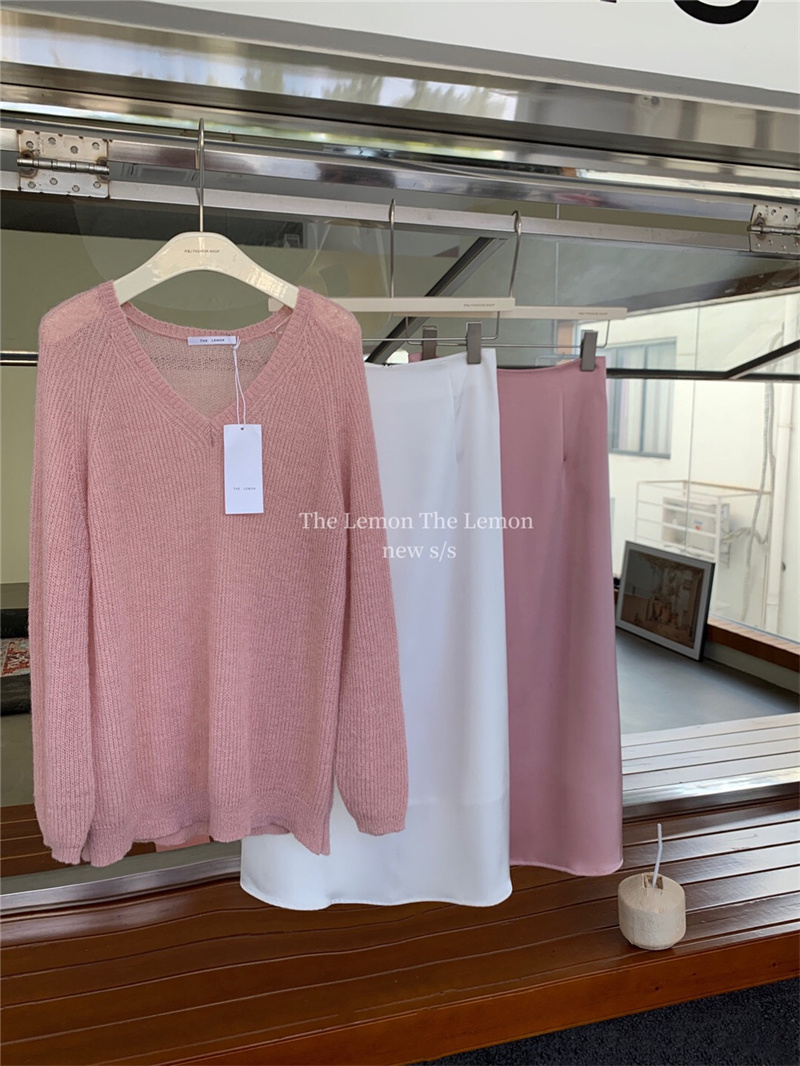 여성용 한국 스타일의 루즈하고 편안한 브이넥 스웨터, 봄철 루즈핏 상의
