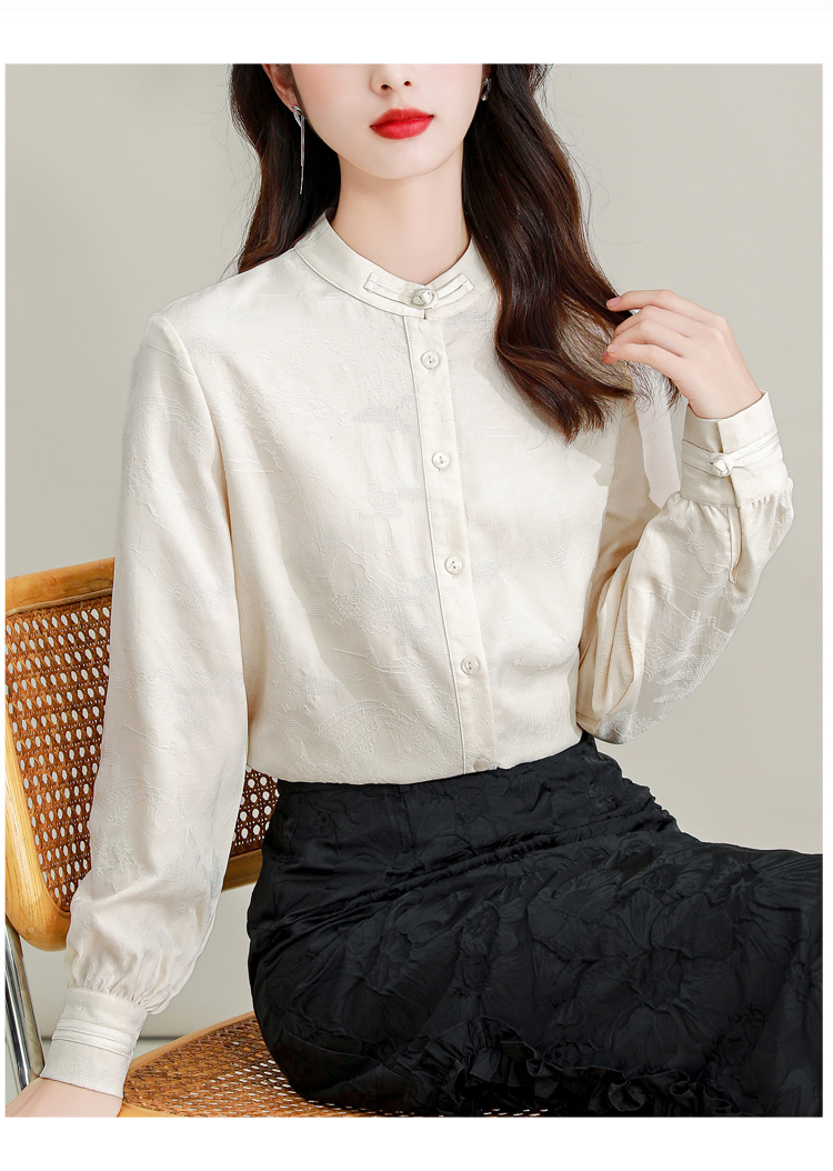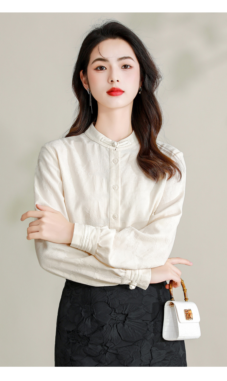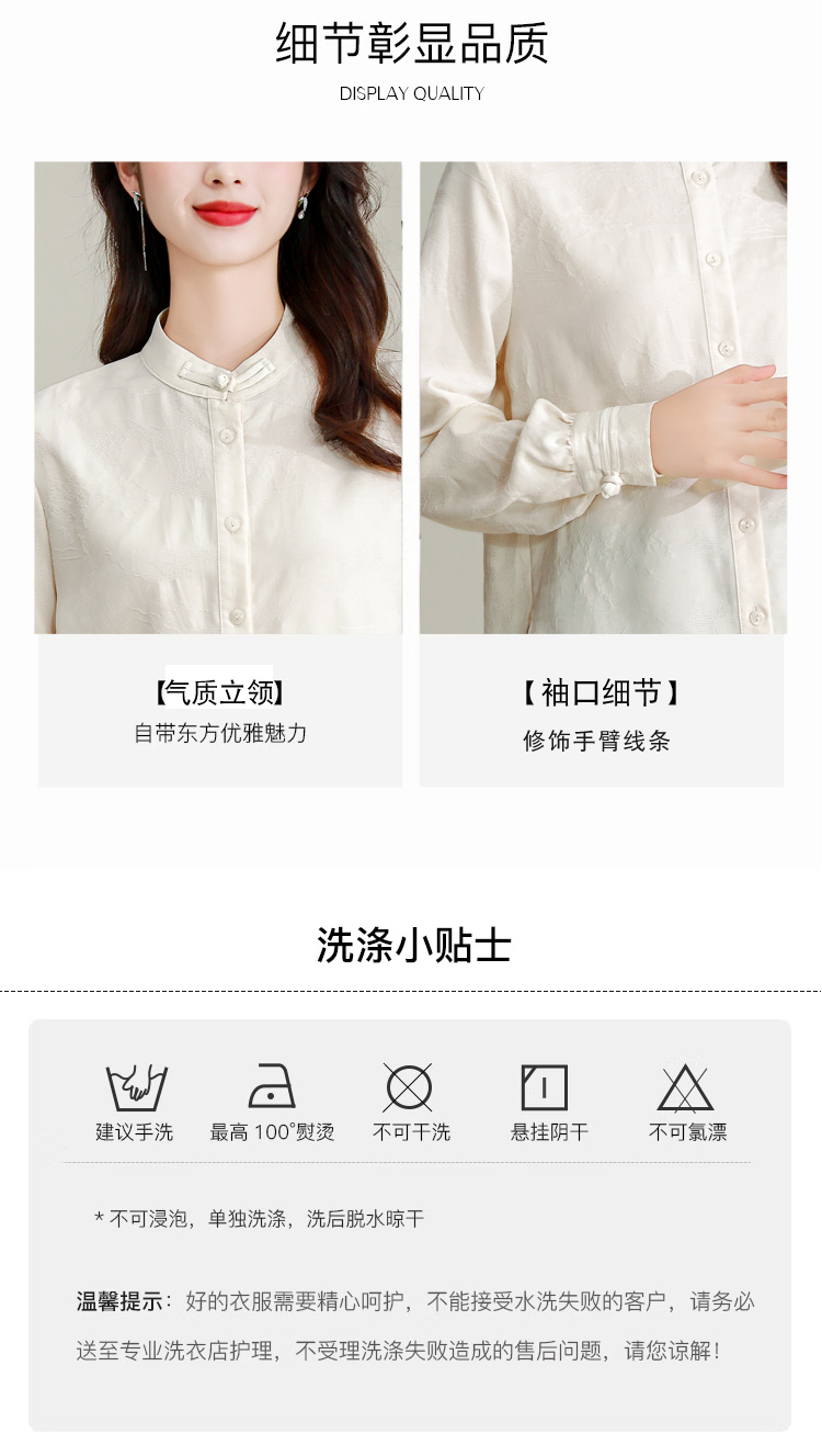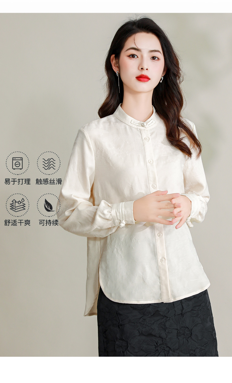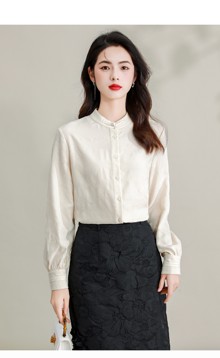 实拍雾漫白茶新中式立领提花衬衫早春高级感国风长袖上衣