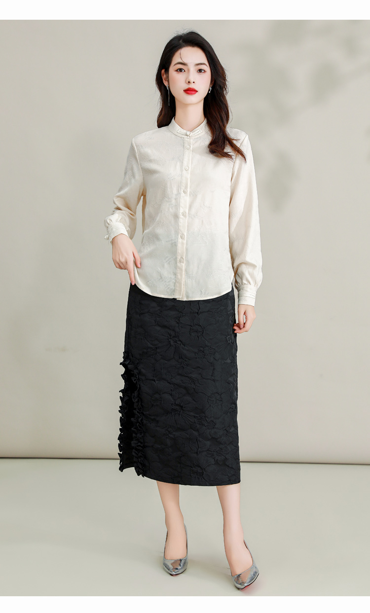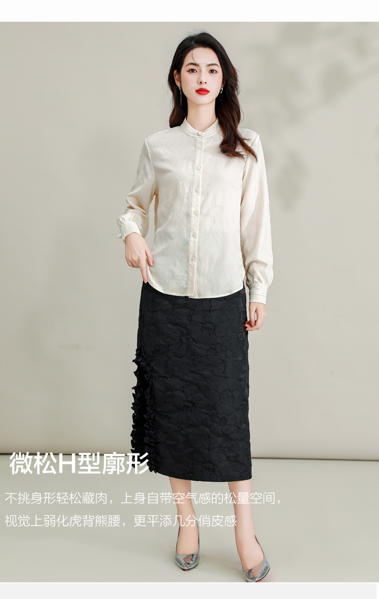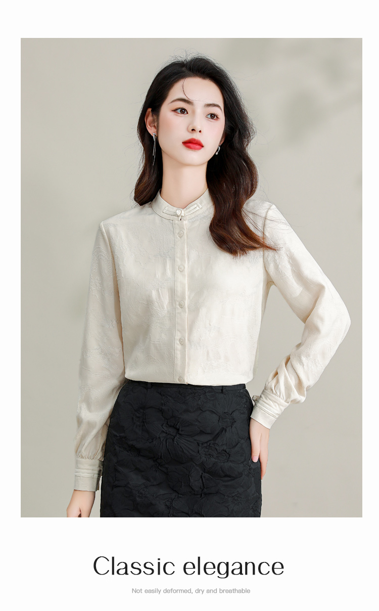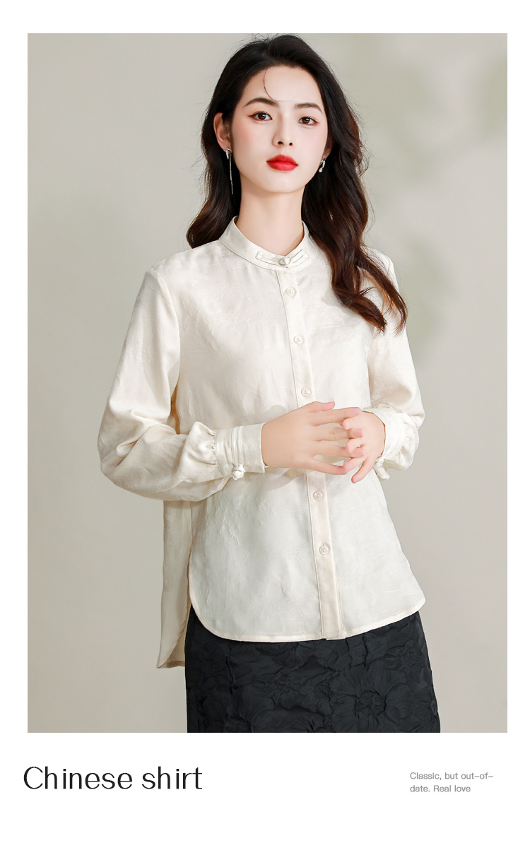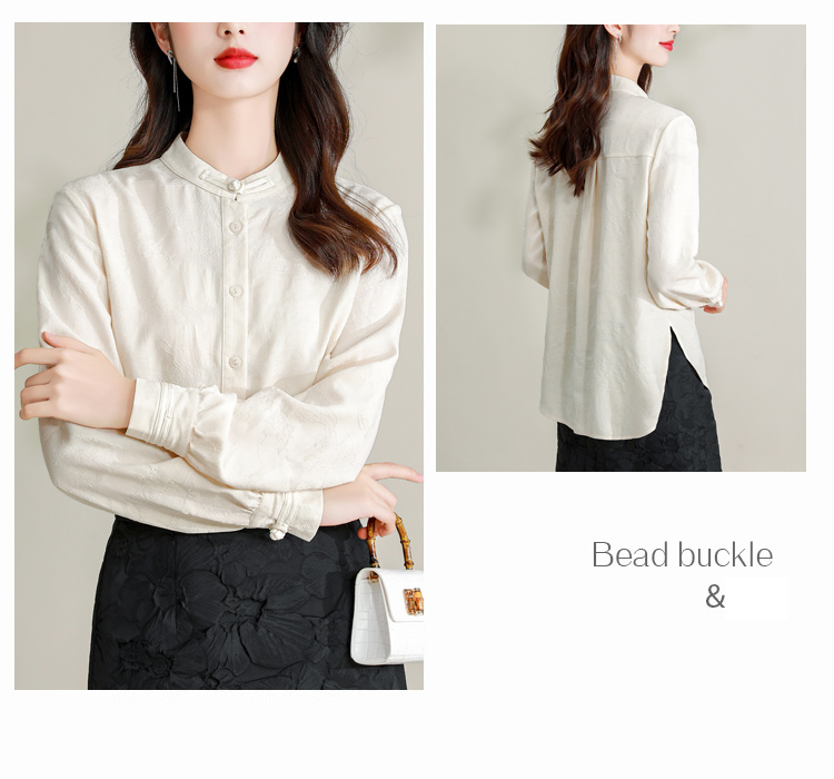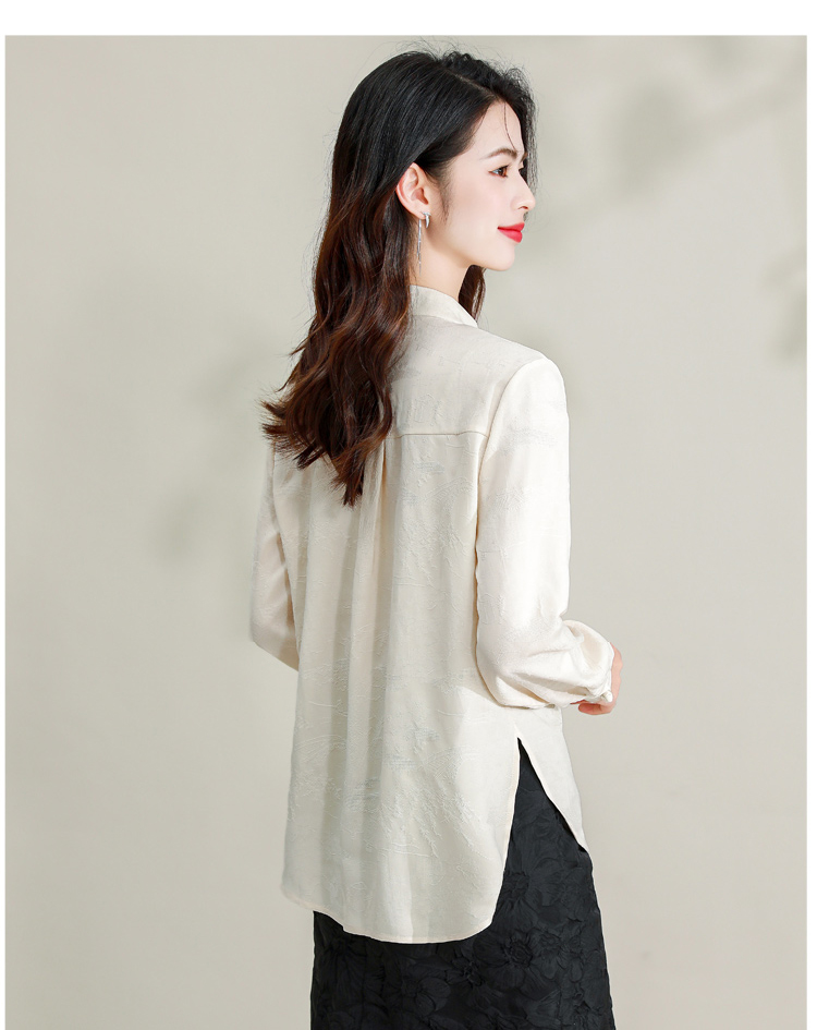 实拍雾漫白茶新中式立领提花衬衫早春高级感国风长袖上衣