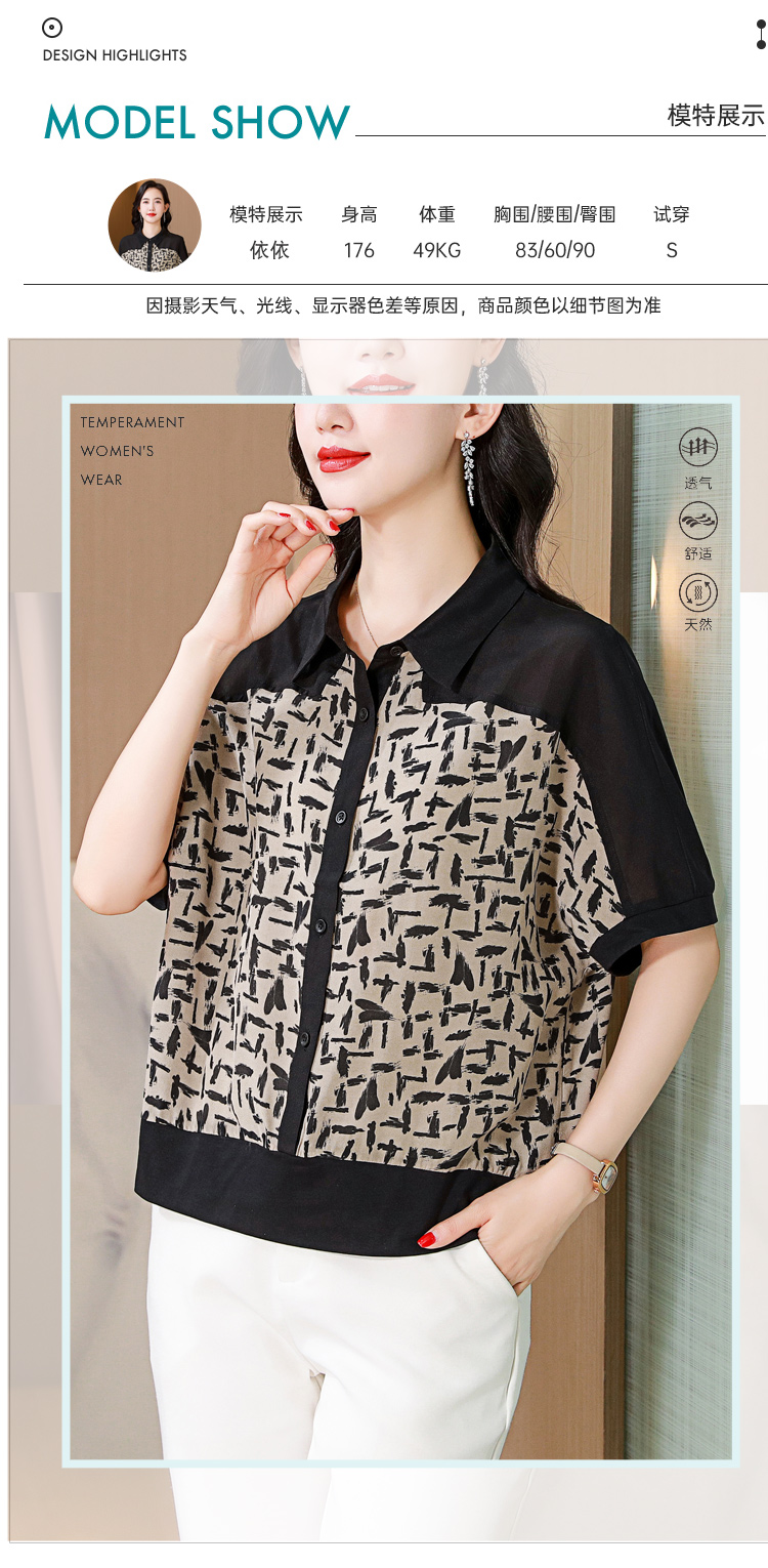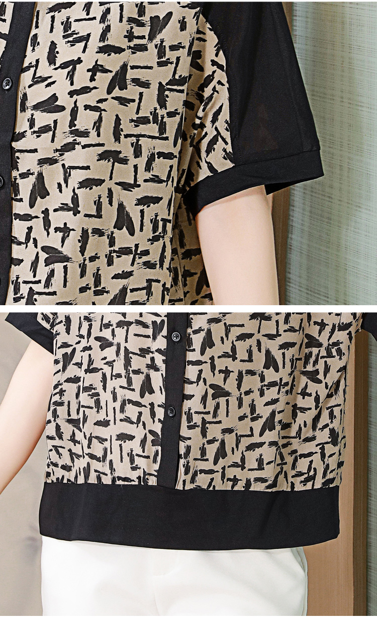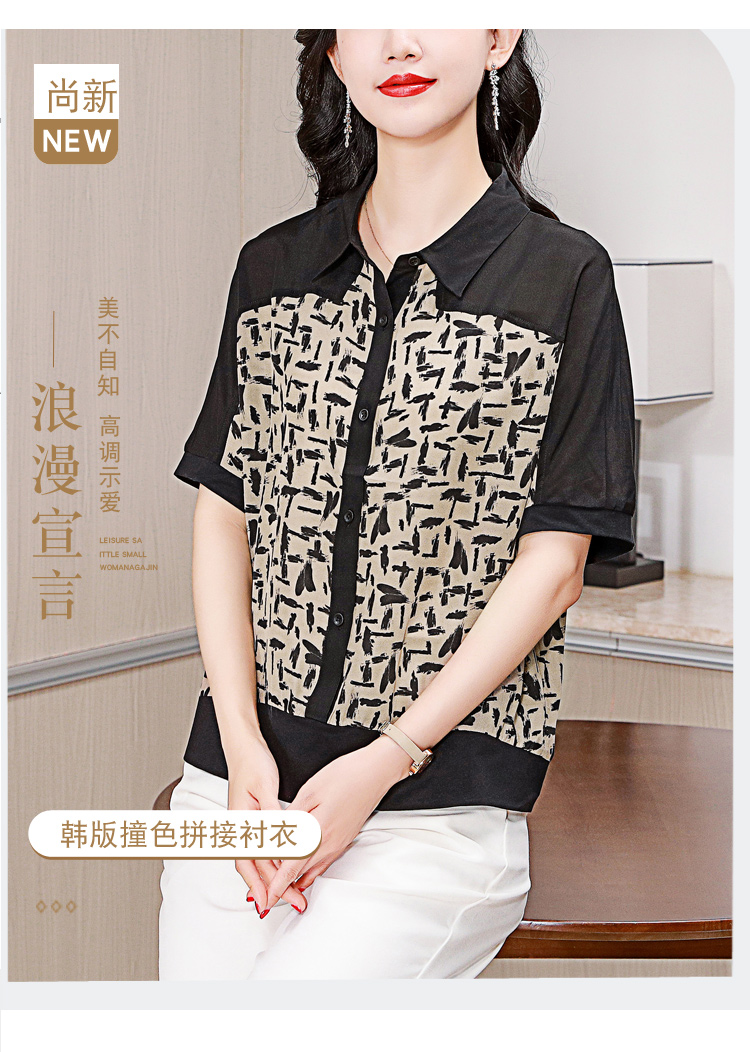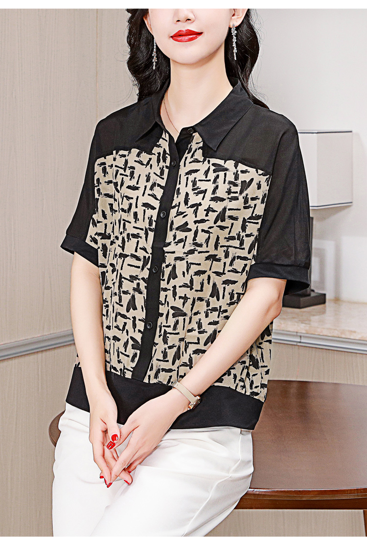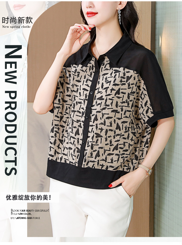 유럽 버전 배트 슬리브 여성 실크 셔츠 2024년 여름 신스타일 작은 셔츠 대비 색상 접합 멀버리 실크 셔츠의 실제 샷