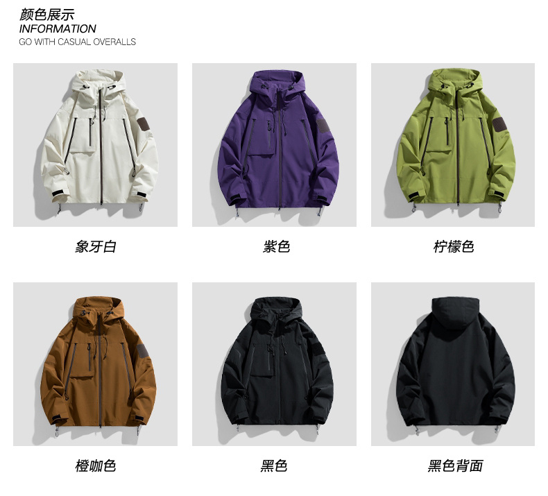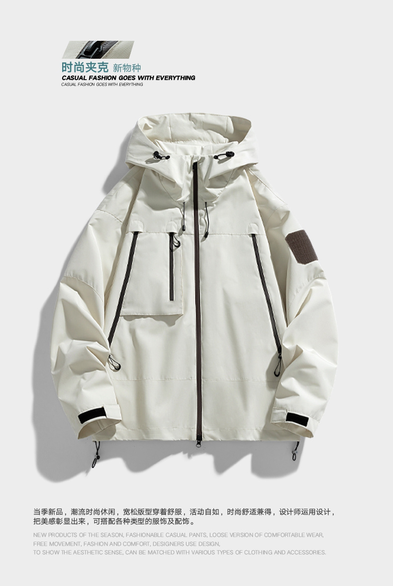 高品质新款潮牌百搭休闲宽松防水防风冲锋衣可脱卸帽外套情侣装