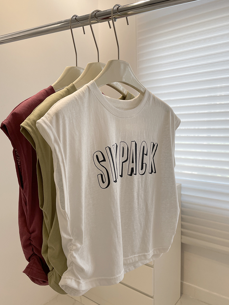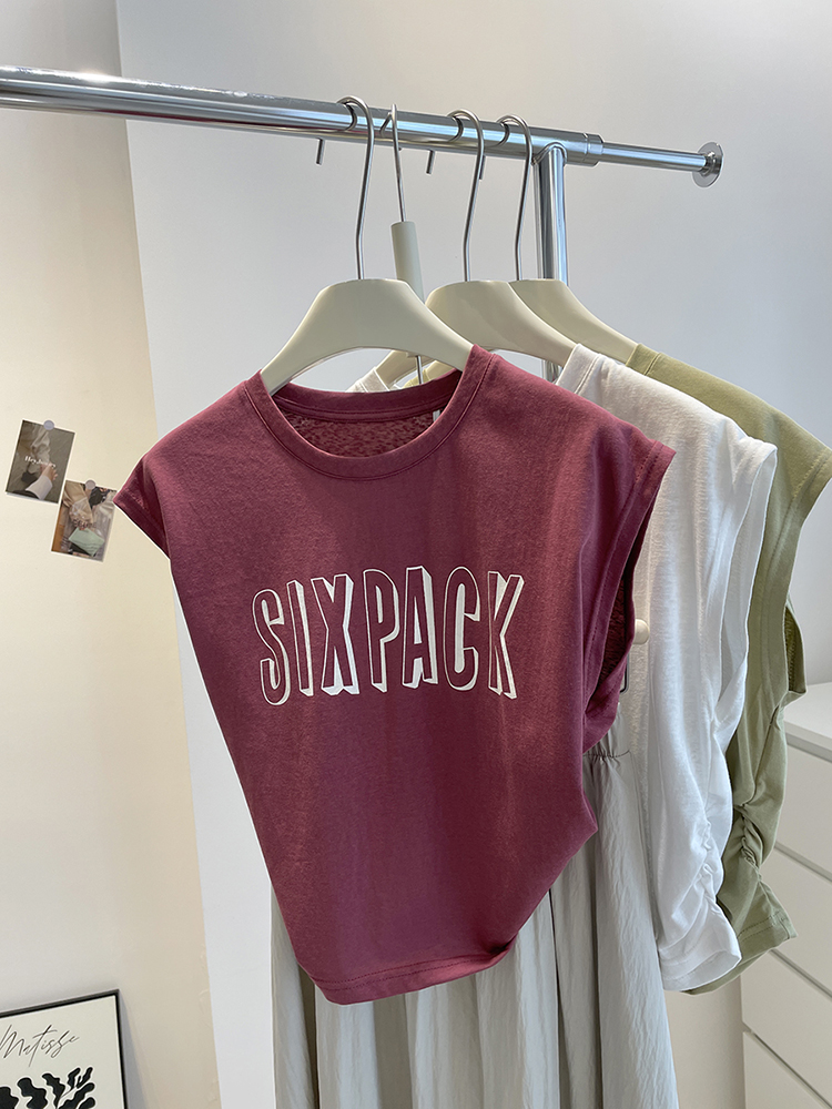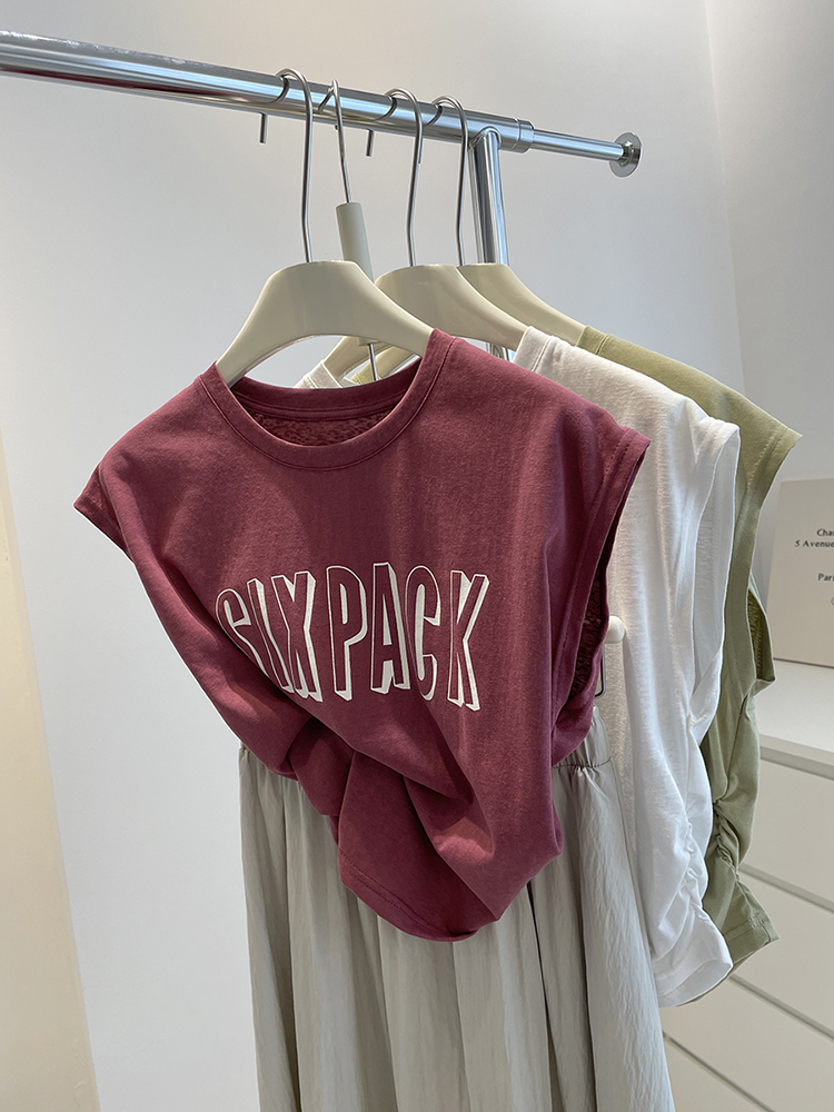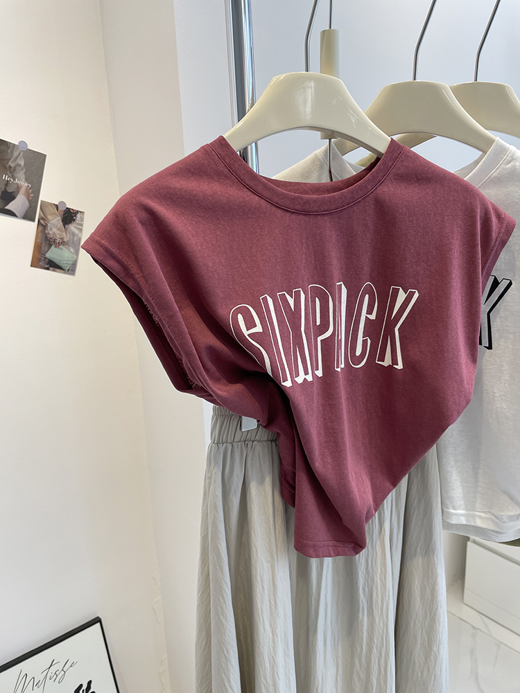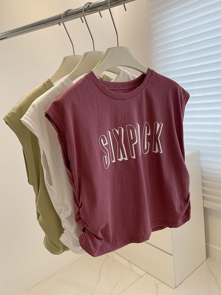 고품질 눈송이 무늬 면 소재 레트로 레터 프린트 주름 장식 숏 베스트 여성용 여름 슬림핏 활용도 높은 탑