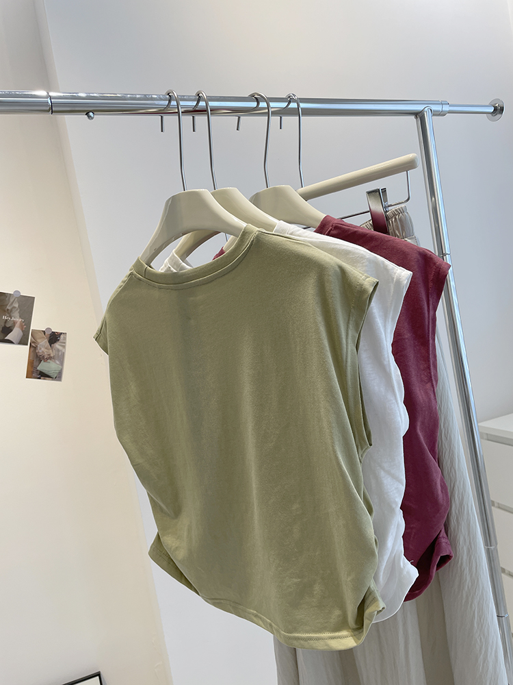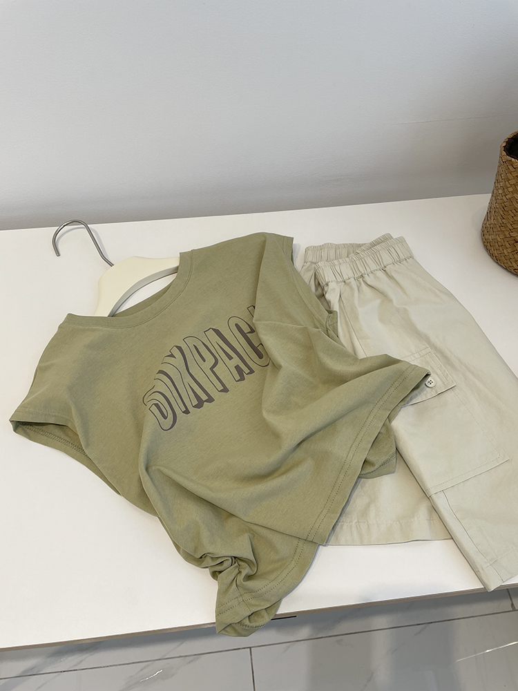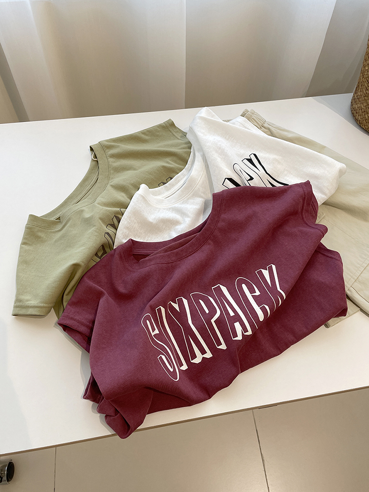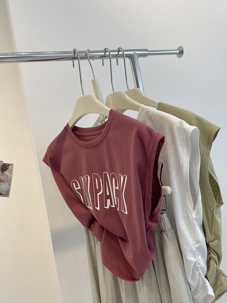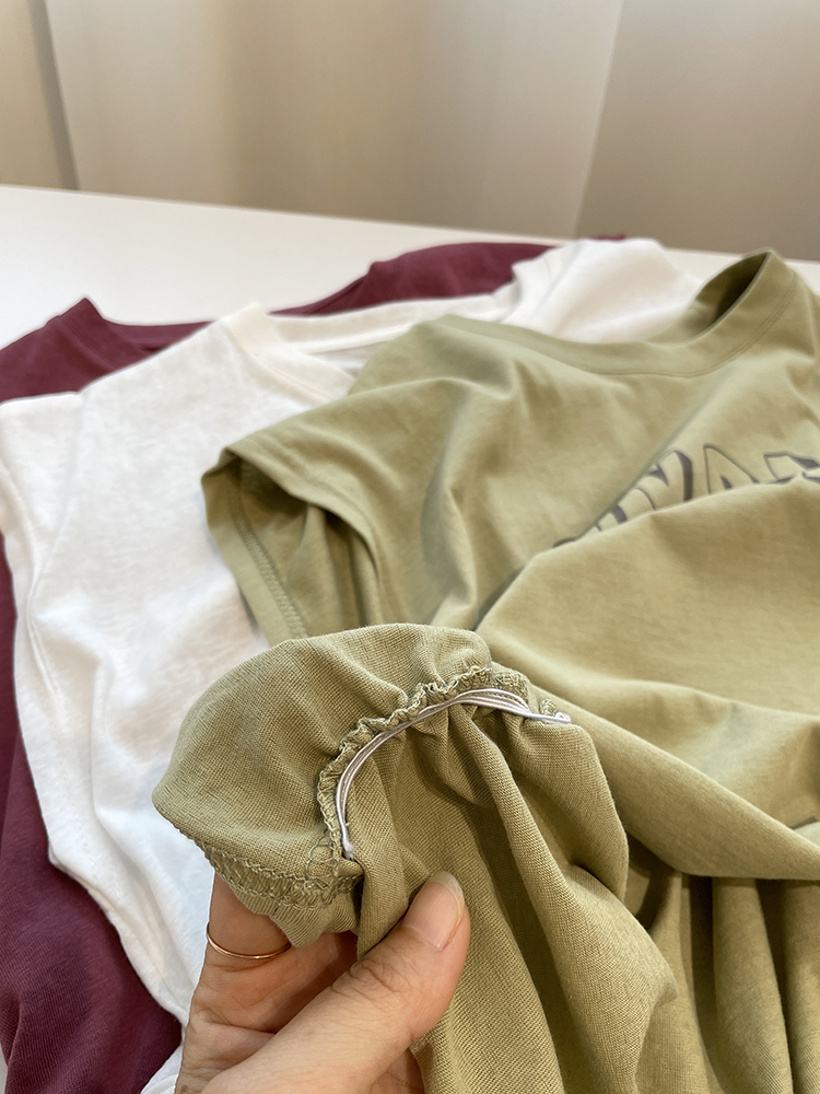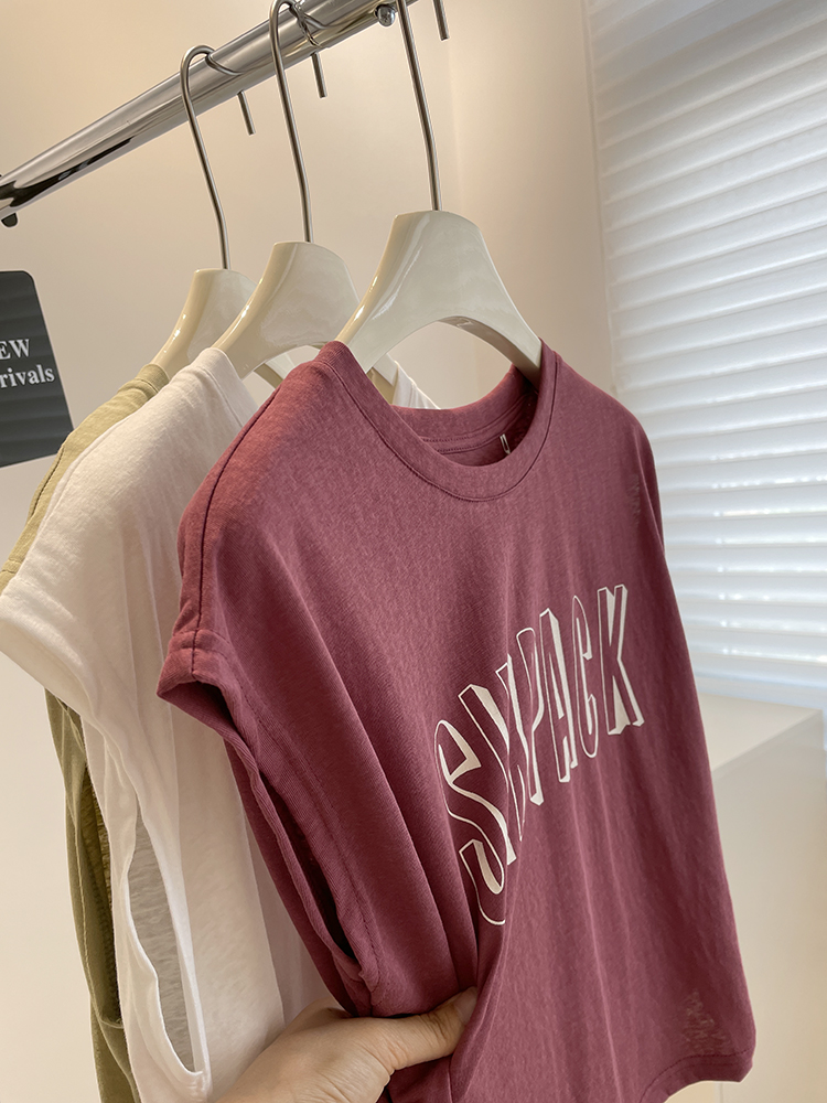 고품질 눈송이 무늬 면 소재 레트로 레터 프린트 주름 장식 숏 베스트 여성용 여름 슬림핏 활용도 높은 탑