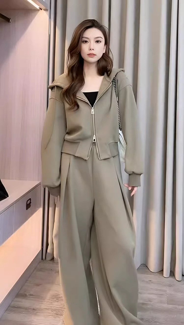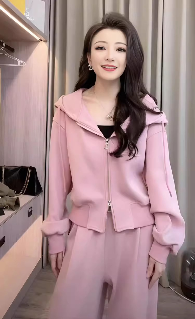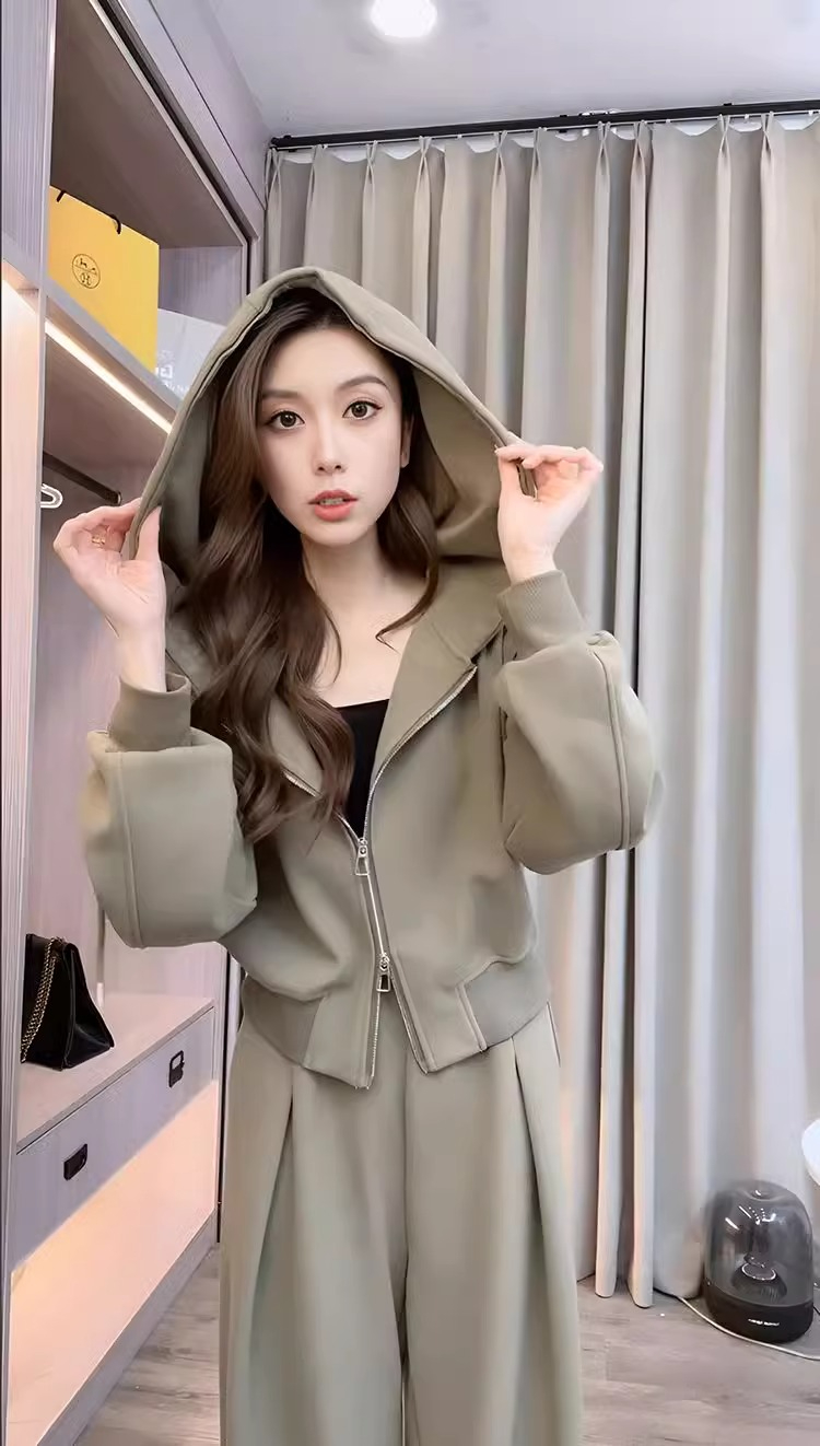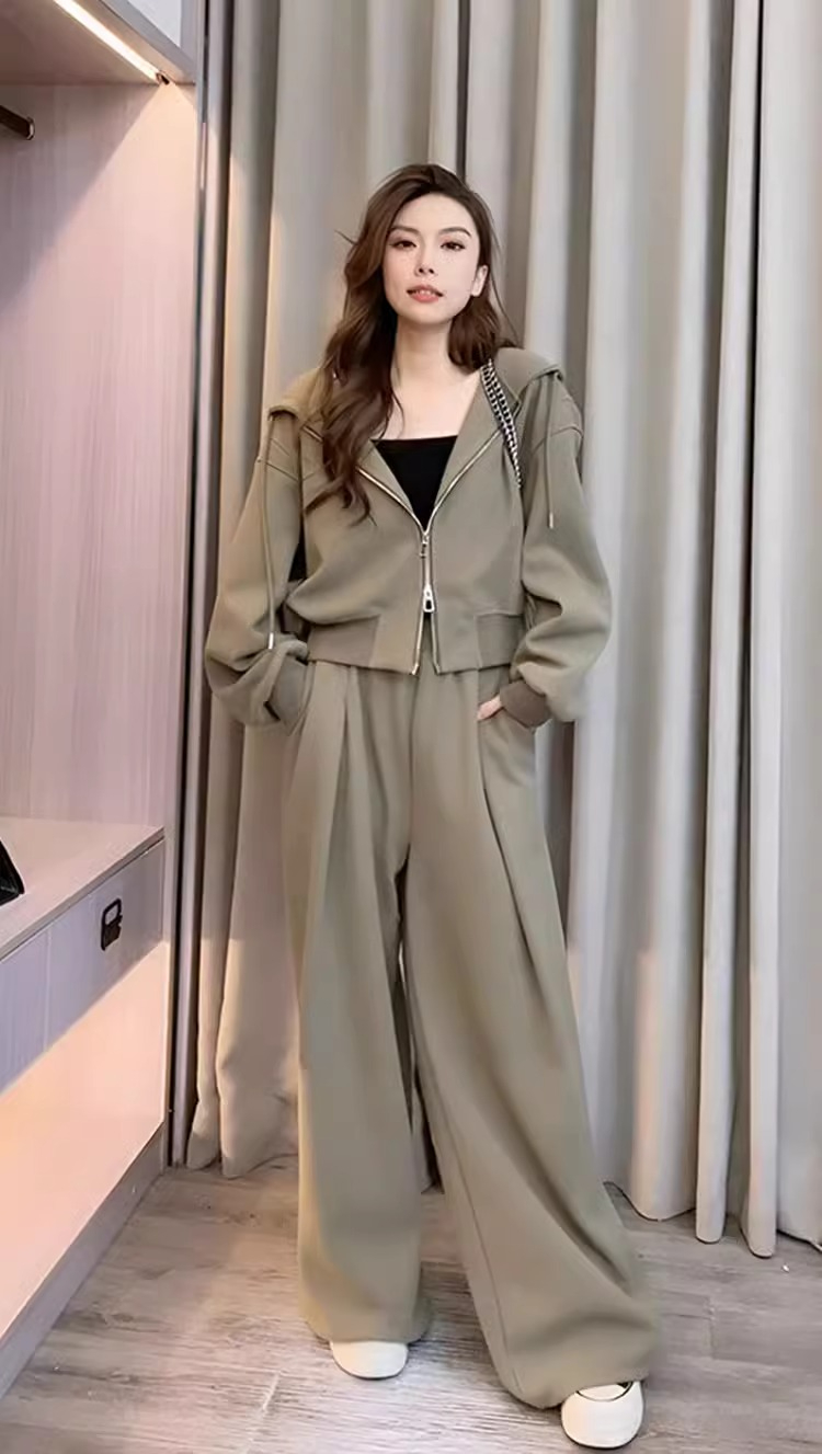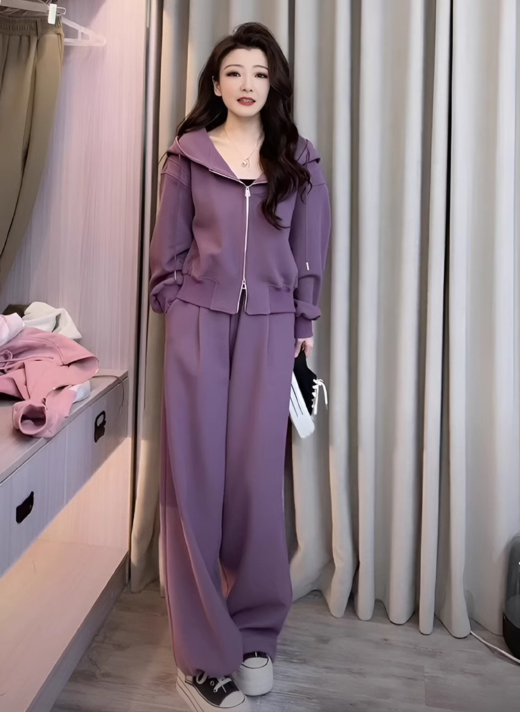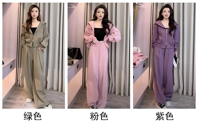 大码女装秋季时尚洋气两件套连帽遮肚显瘦运动套装女胖mm2-300斤