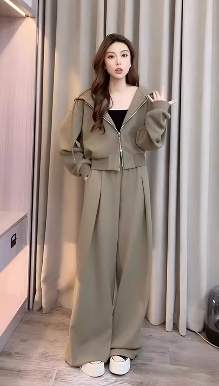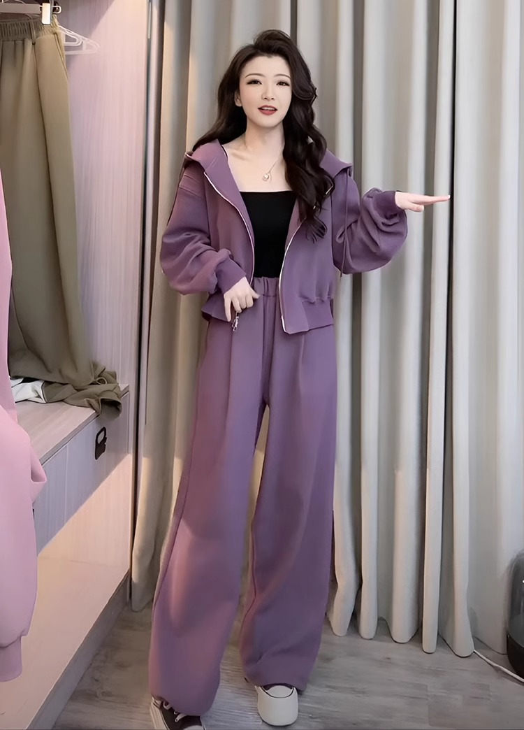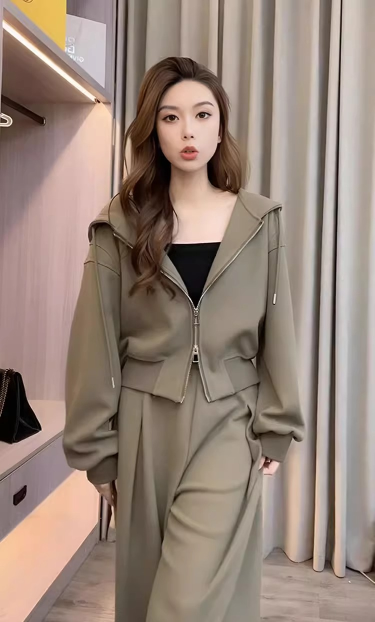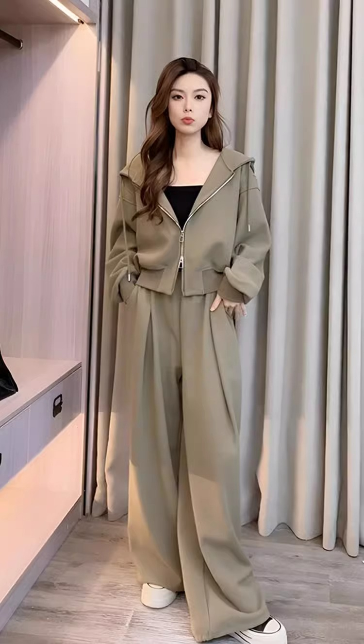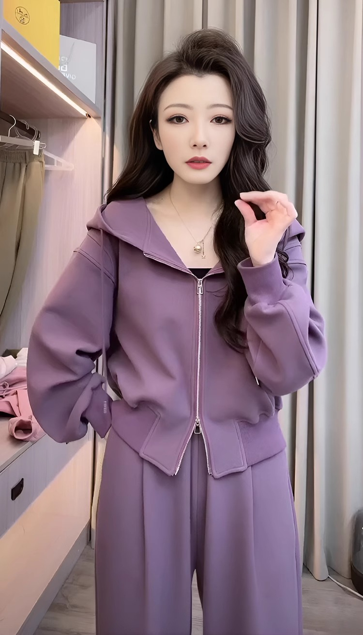 大码女装秋季时尚洋气两件套连帽遮肚显瘦运动套装女胖mm2-300斤